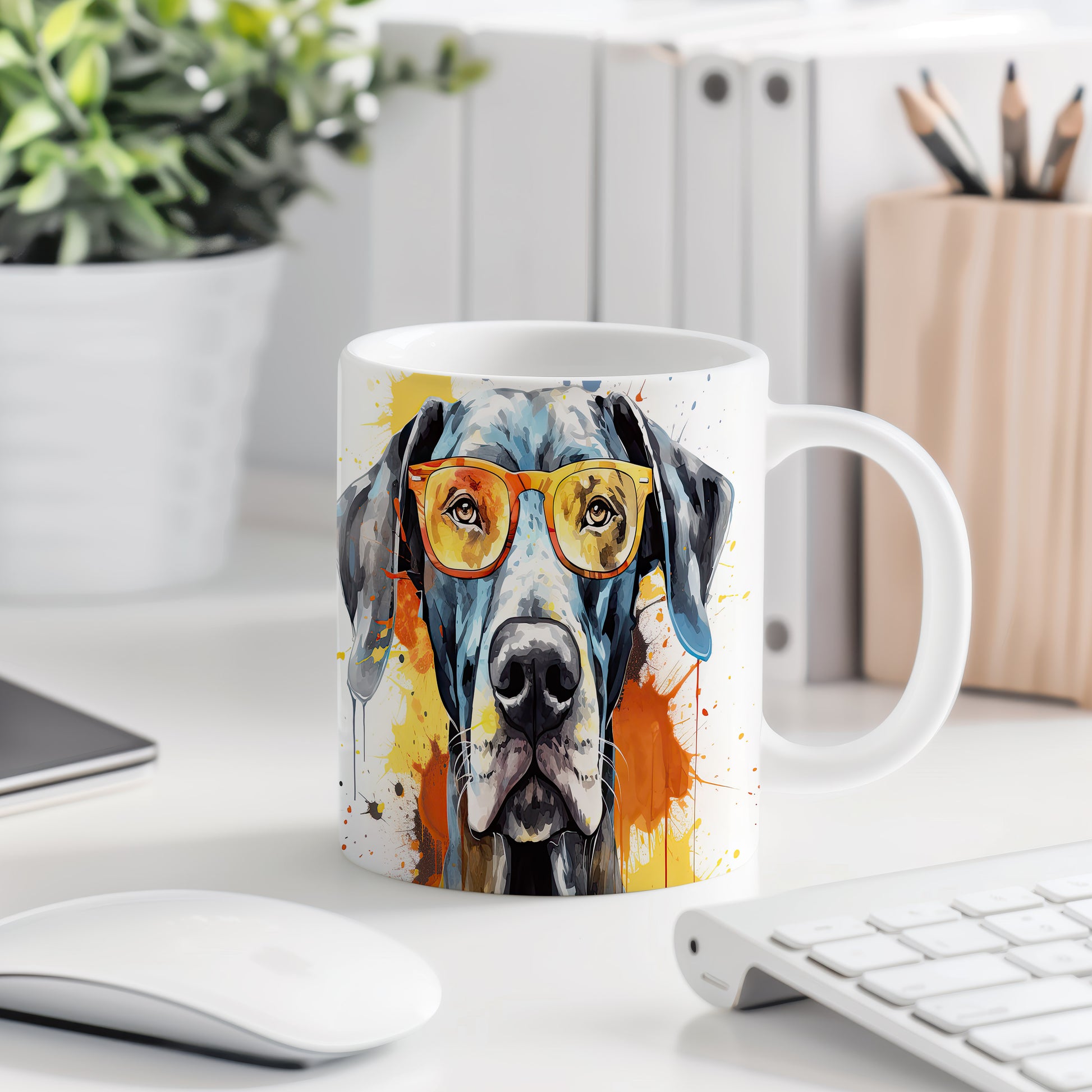 Hrnek s motivem velkého psa a brýlemi je skvělým kouskem pro milovníky zvířat a originálního designu. Tento hrnek potěší každého, kdo hledá vtipný dárek pro přátele nebo rodinu. Materiál: keramika. Objem: 330 ml. Vhodné do myčky i mikrovlnky. Používáním tohoto hrnku si užijete nejen skvělý vzhled, ale i pohodlné pití oblíbených nápojů.