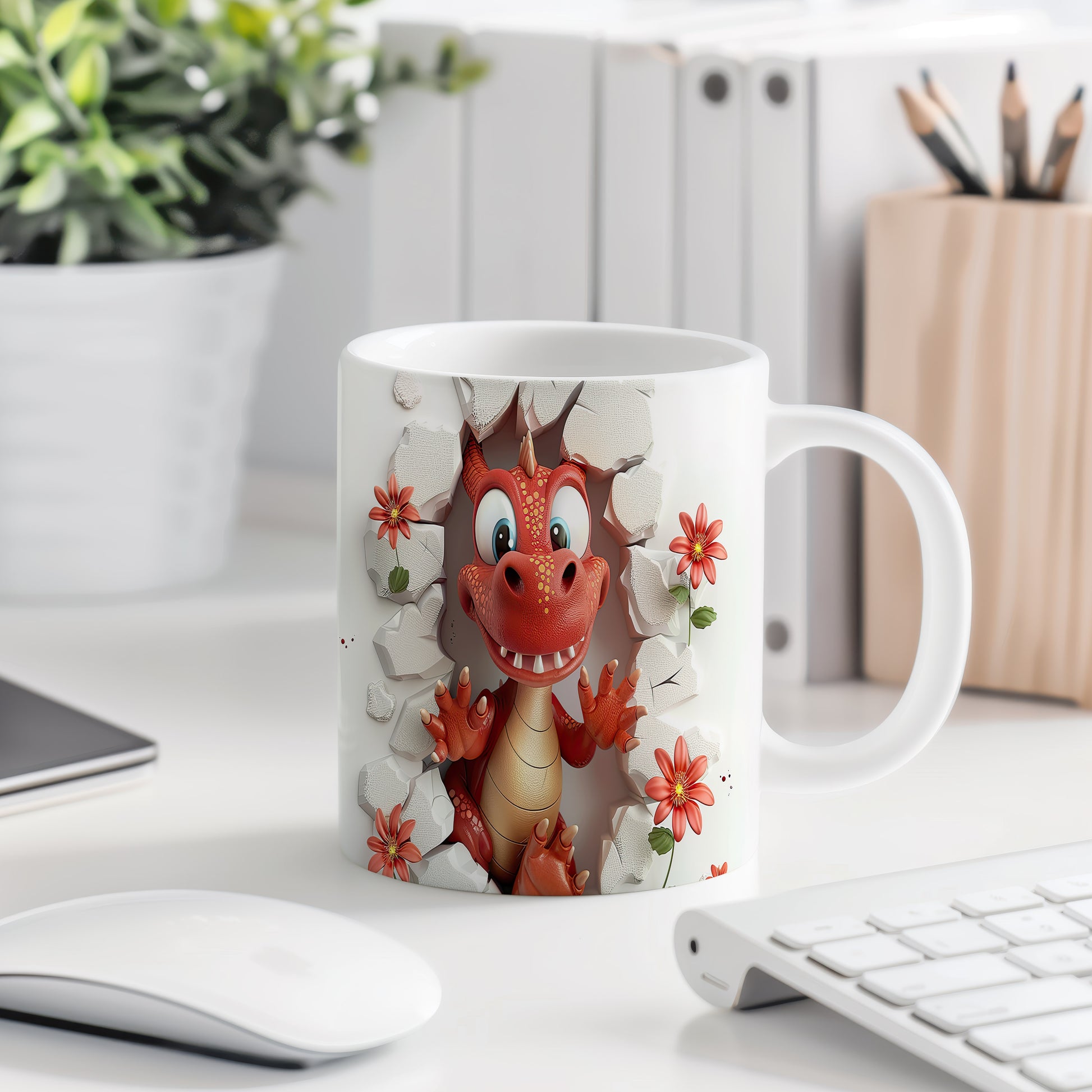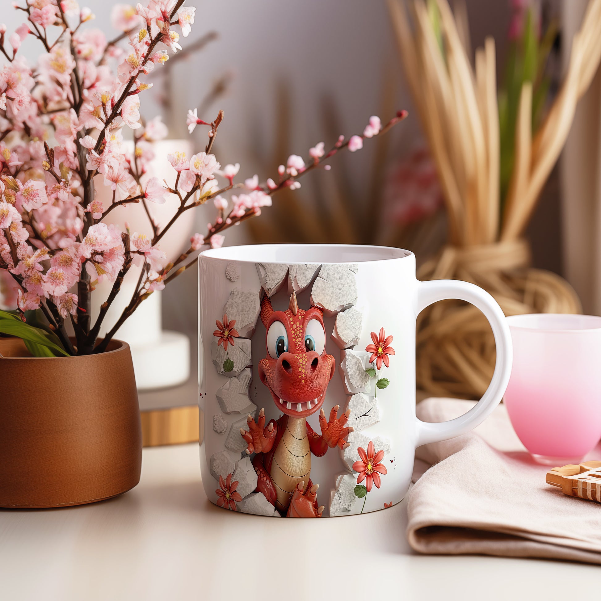 Tento keramický hrnek s motivem červeného draka a květin vyniká hravým designem. Je ideální pro milovníky fantasy a děti, skvělý tip na dárek k narozeninám nebo svátku. Materiál: keramika. Objem: 330 ml. Vhodné do myčky i mikrovlnky. Používáním tohoto hrnku si zpříjemníte každé pití.