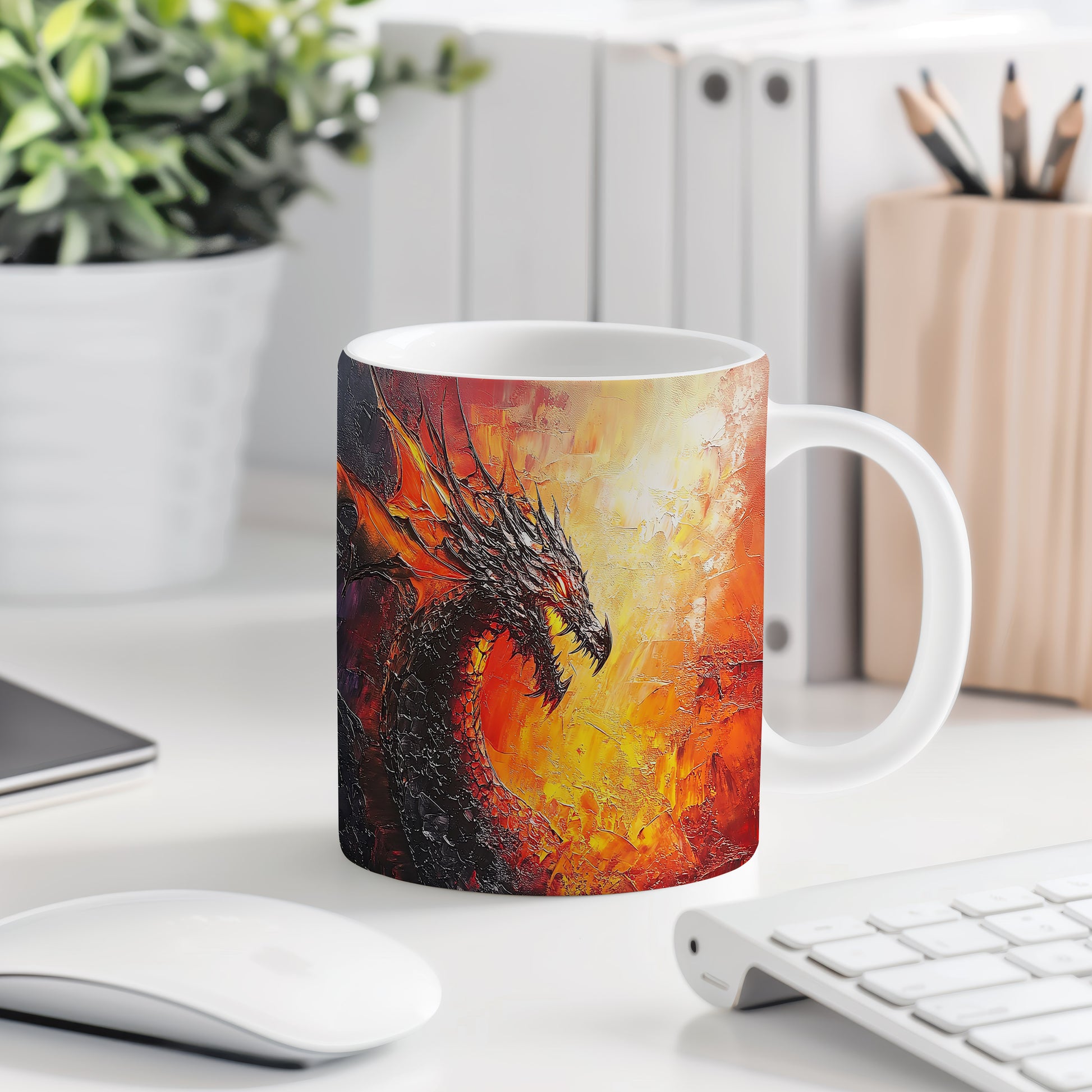 Hrnek s motivem draka v plamenech přináší dramatický nádech do každého doušku. Je ideální pro milovníky fantasy a skvělým dárkem pro fanoušky draků. Materiál: keramika. Objem: 330 ml. Vhodné do myčky i mikrovlnky. Tento hrnek vám zpříjemní každé pití a dodá mu jedinečný styl.