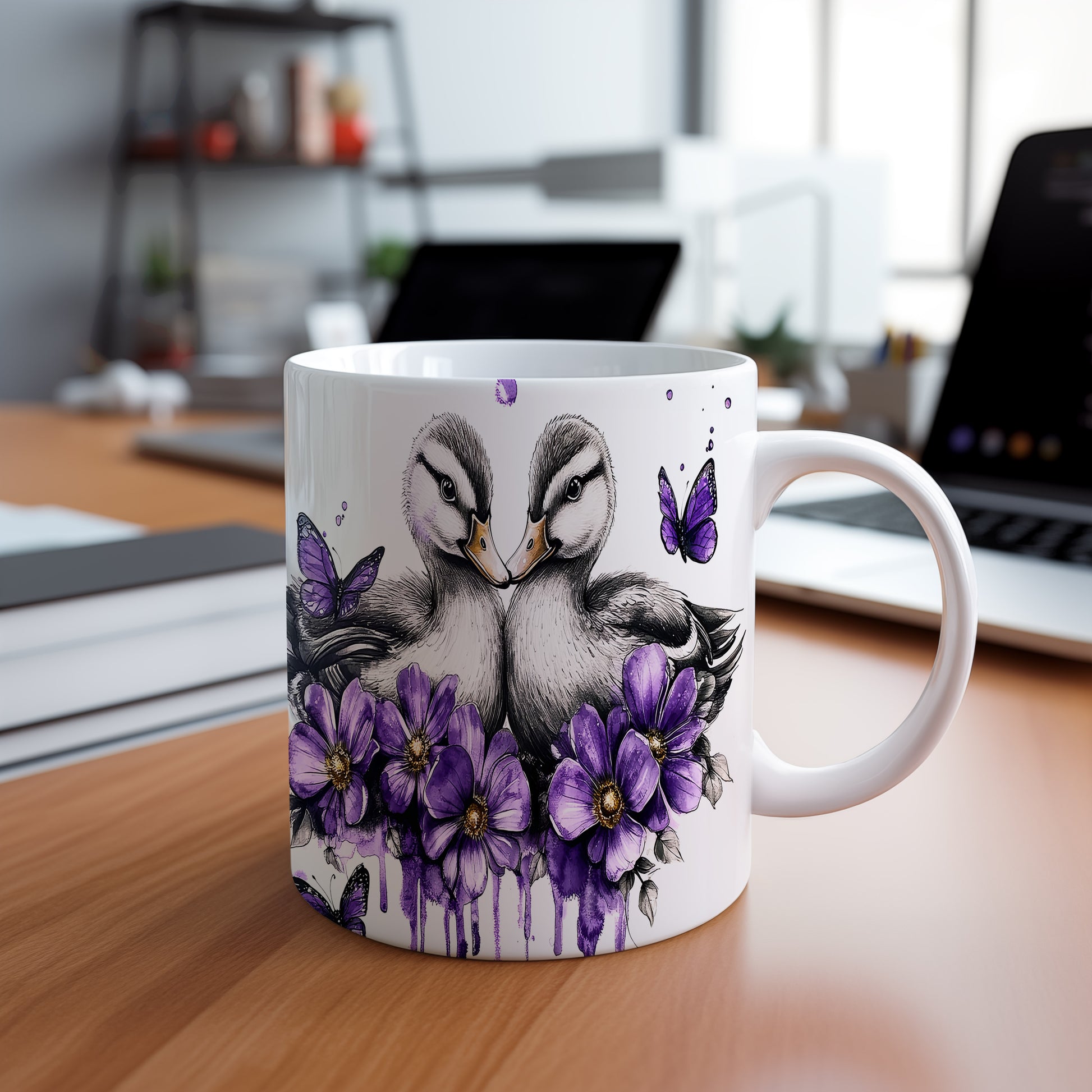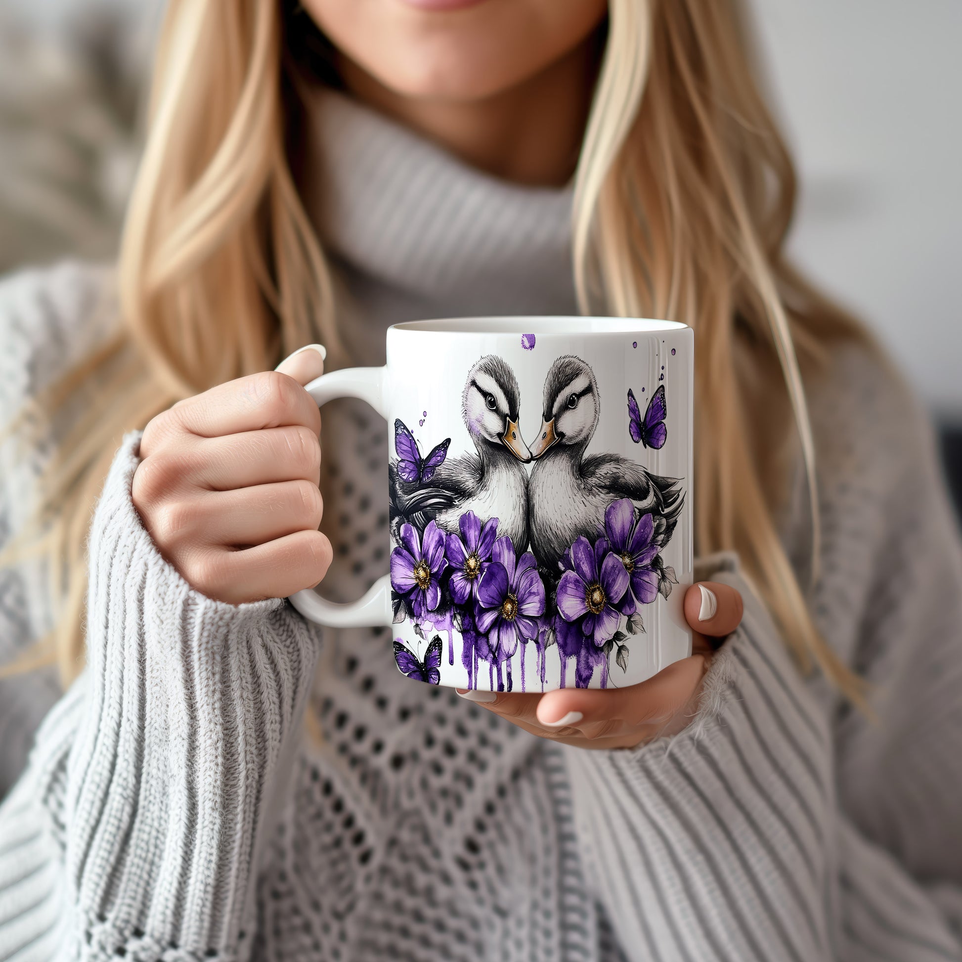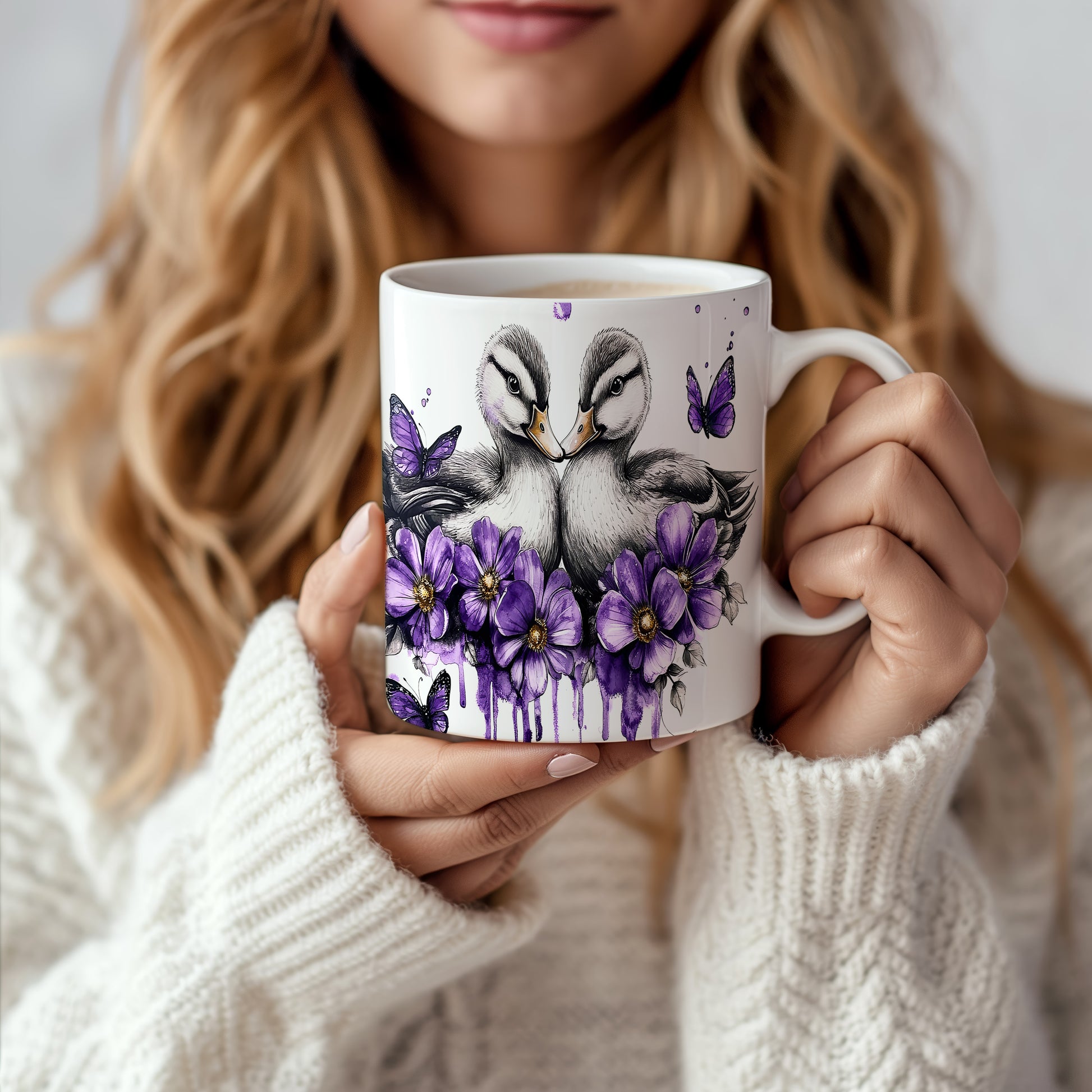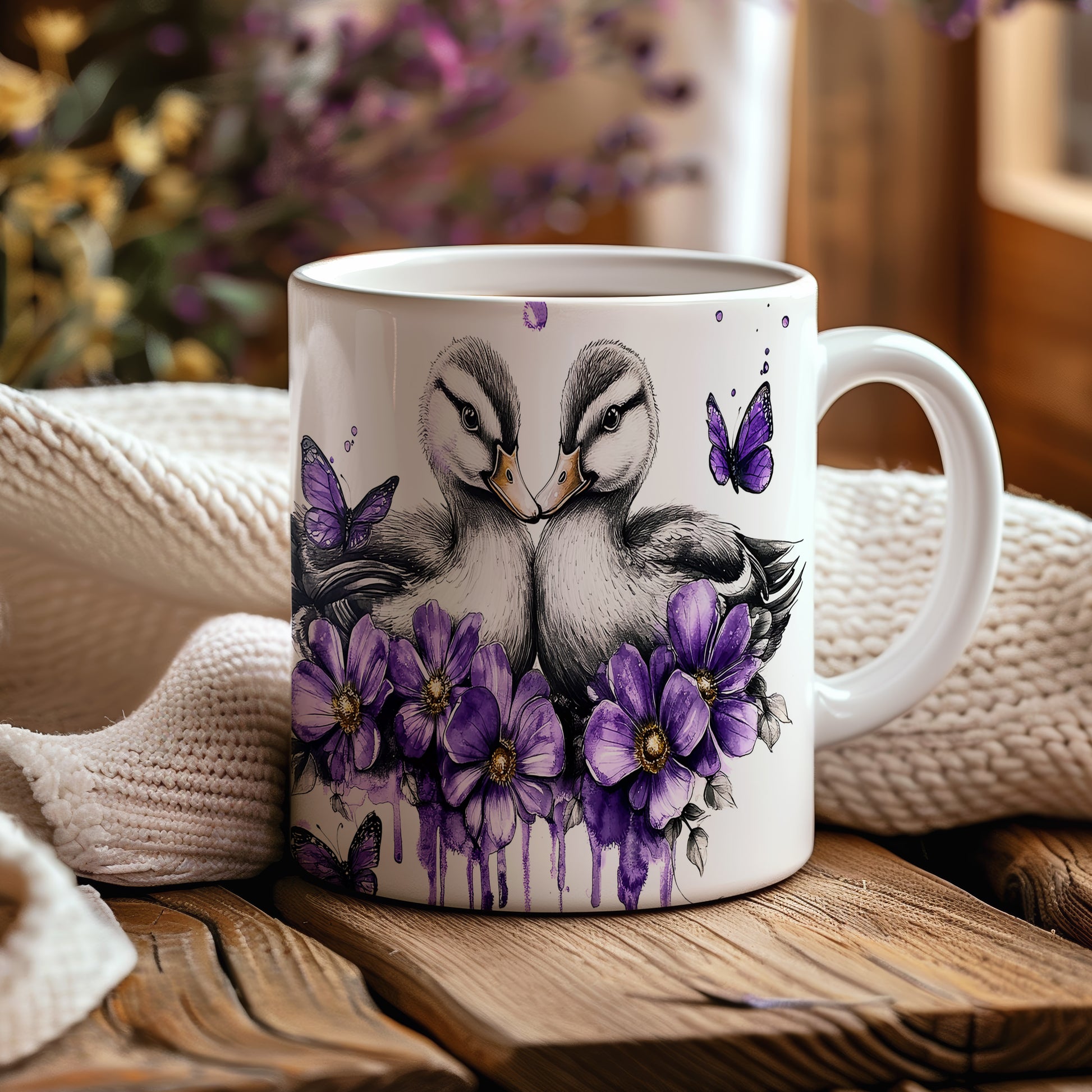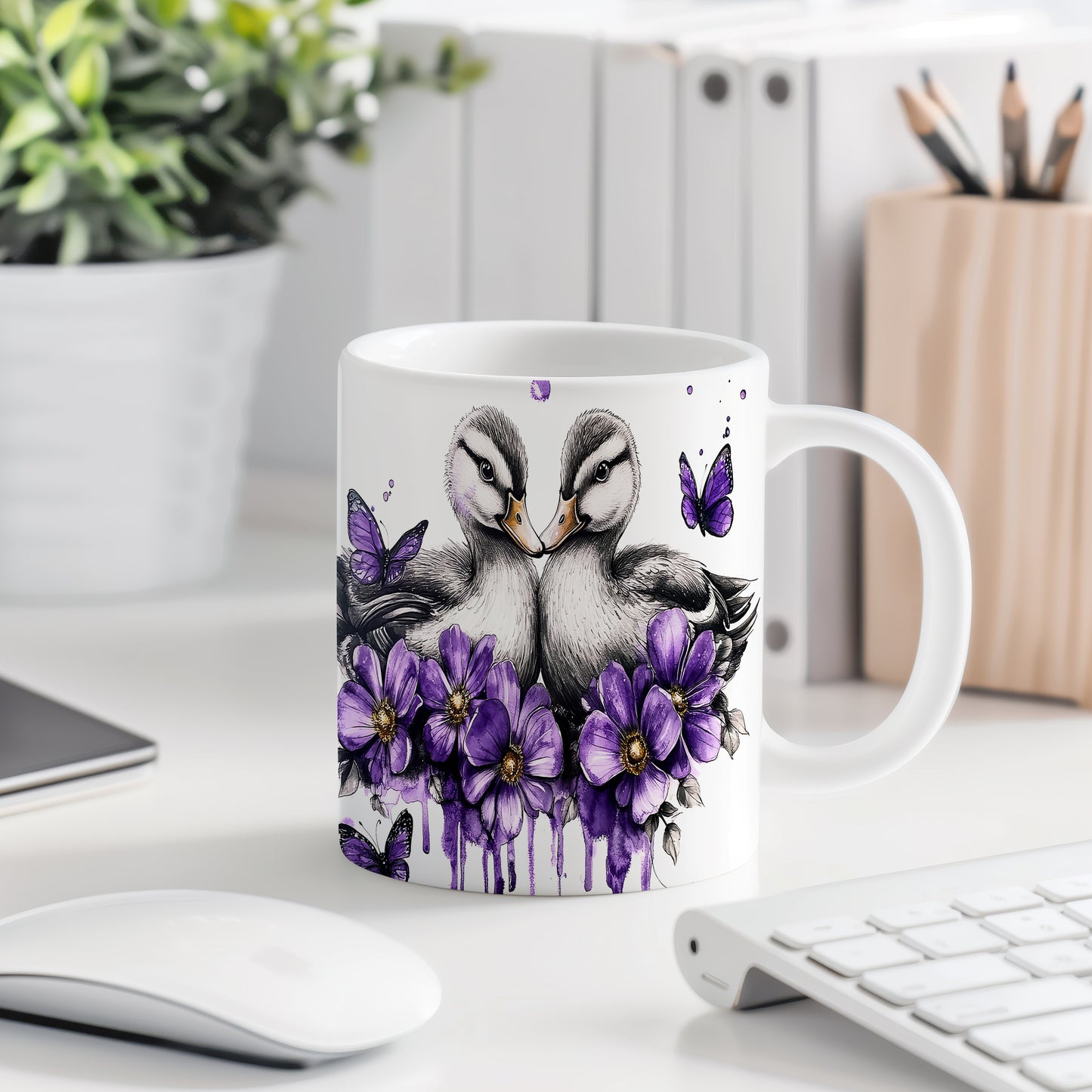 Elegantní hrnek s motivem dvou kachen, které se navzájem pozorují. Tento hrnek je ideální pro milovníky přírody a skvělým dárkem pro každého, kdo ocení krásu přírody. Materiál: keramika. Objem: 330 ml. Vhodné do myčky i mikrovlnky. Používání tohoto hrnku přináší radost z každého doušku.
