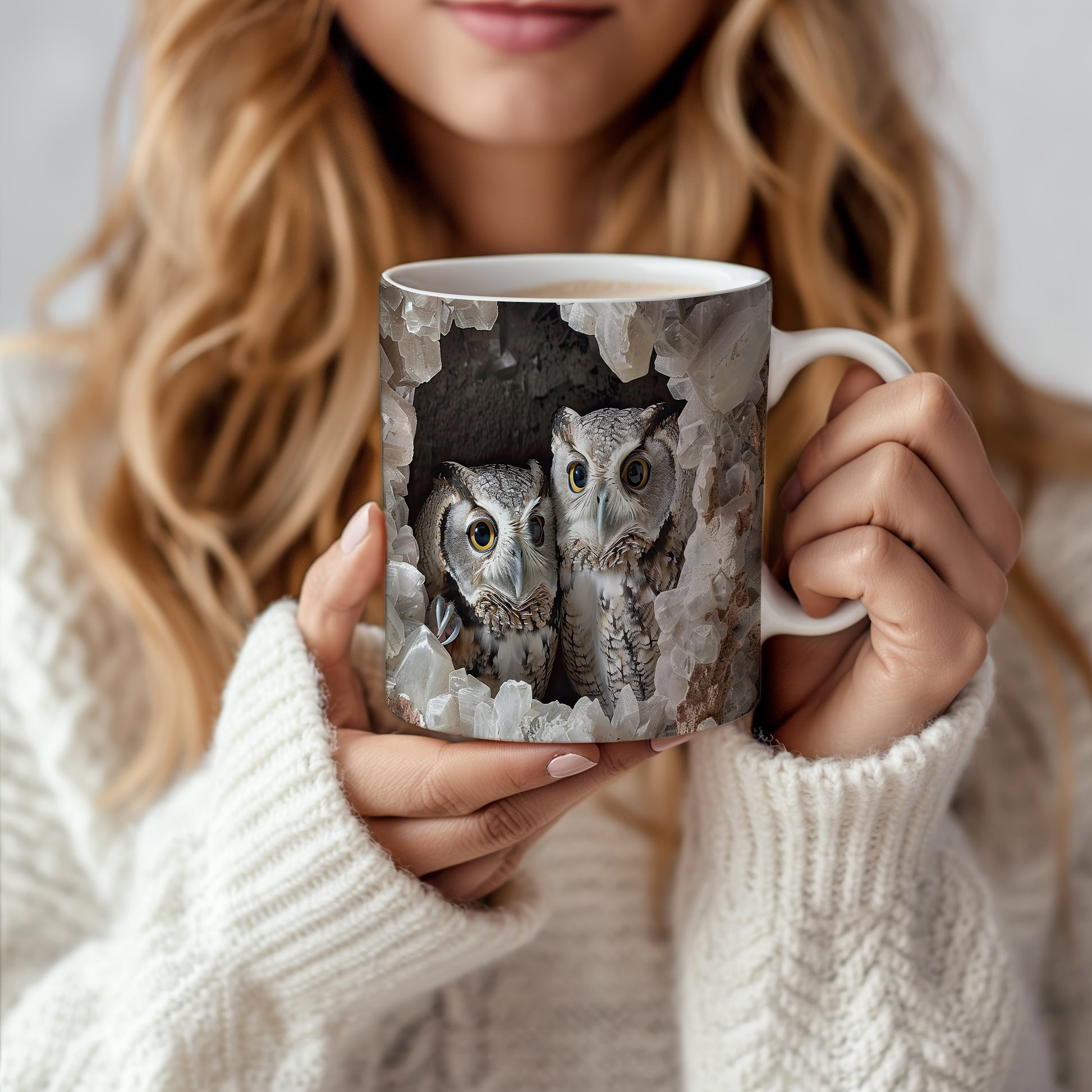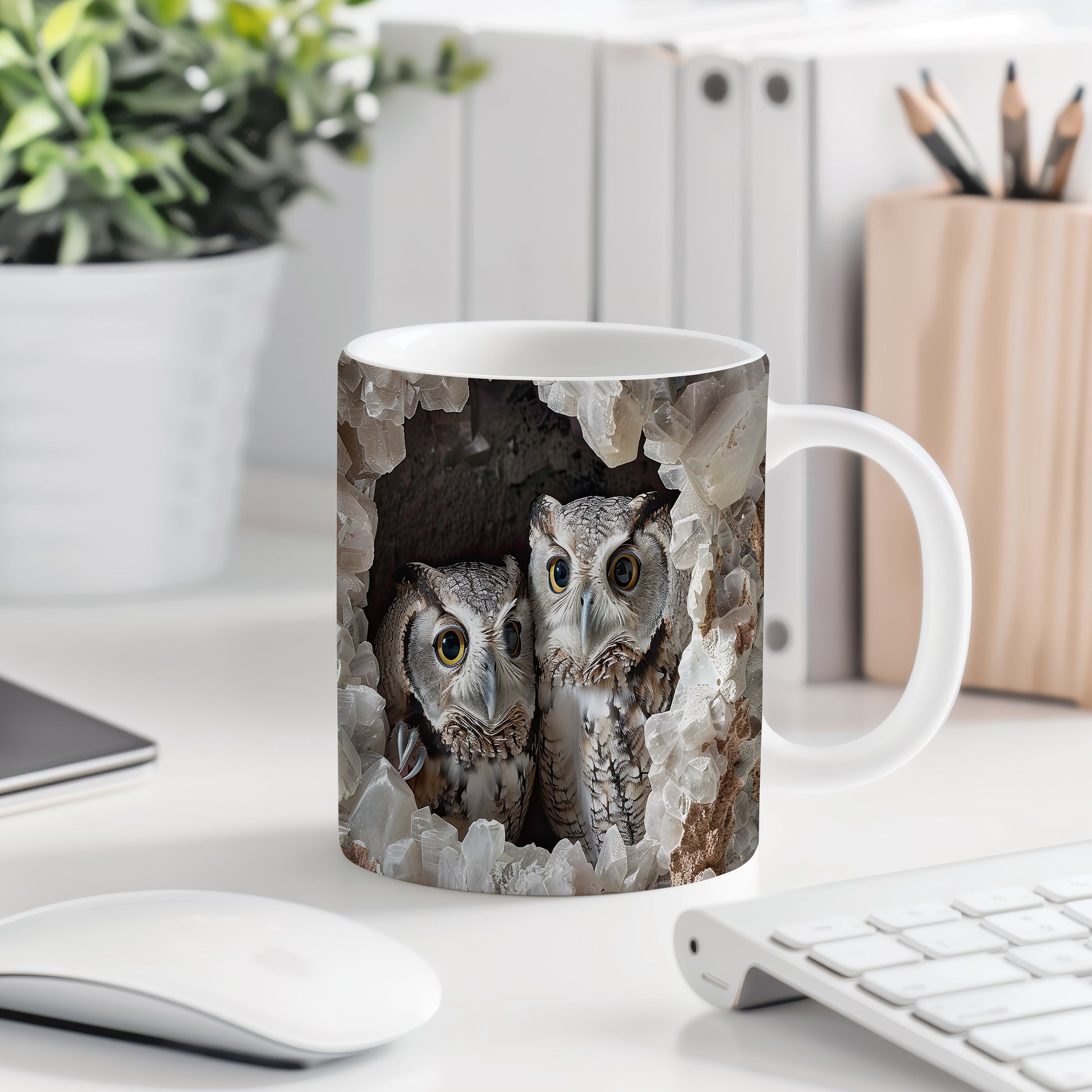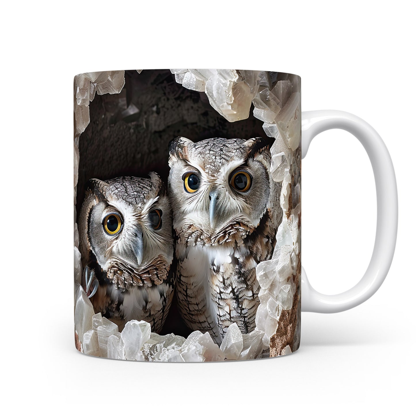 Hrnek s motivem dvou sov v krystalové jeskyni je skvělou volbou pro milovníky přírody a zvířat. Tento hrnek je ideální jako dárek pro přátele nebo rodinu, kteří ocení jedinečný design. Materiál: keramika. Objem: 330 ml. Vhodné do myčky i mikrovlnky. Díky svému stylovému vzhledu přinese do každodenního pití radost a pohodu.