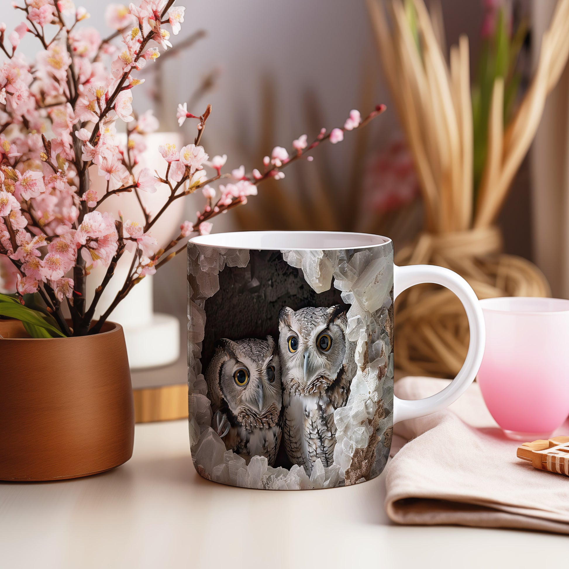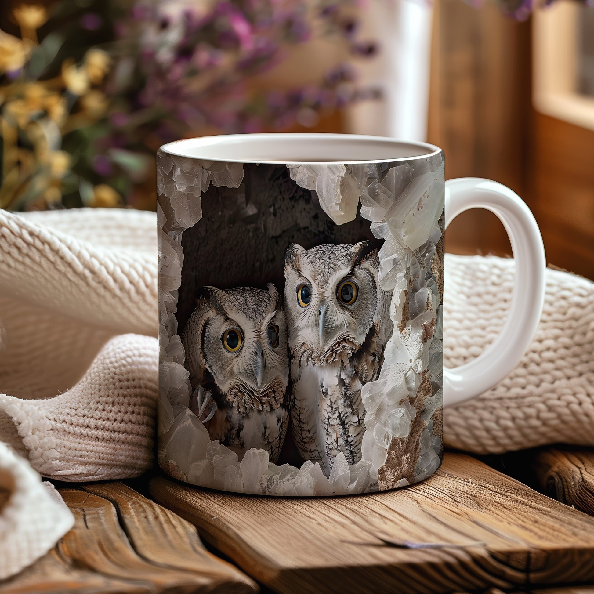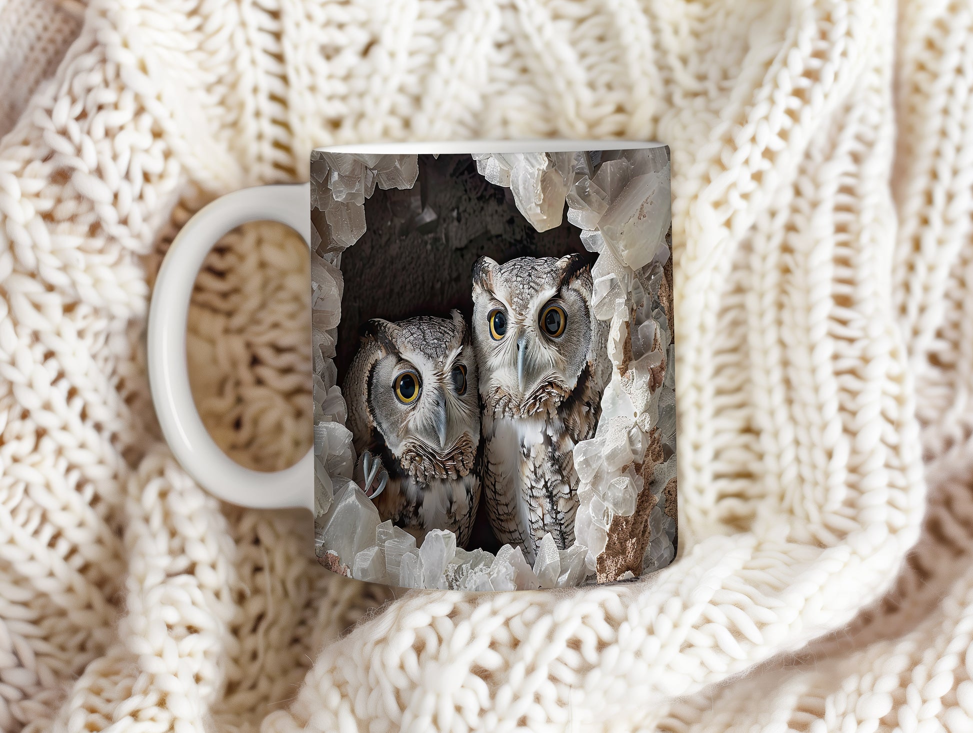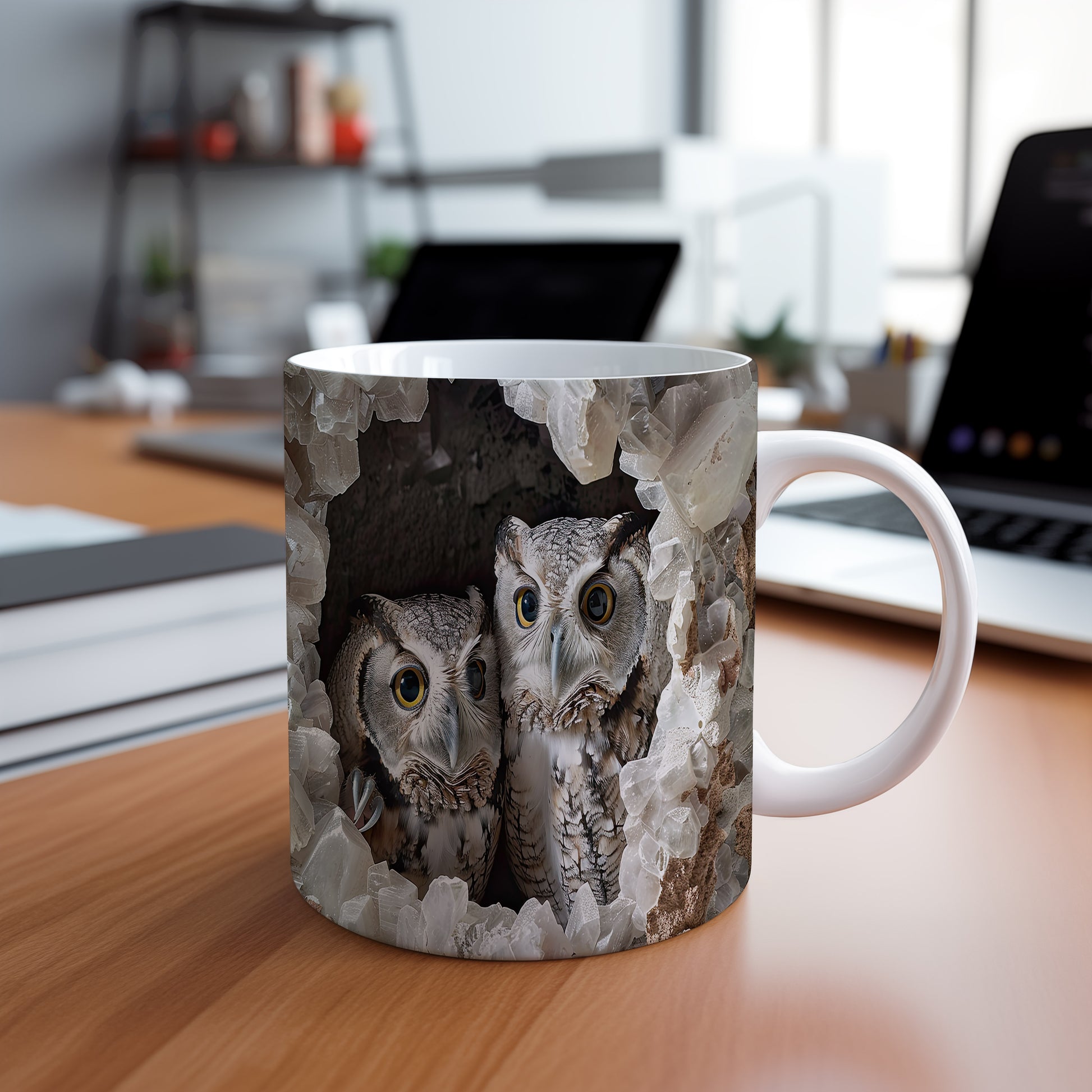 Hrnek s motivem dvou sov v krystalové jeskyni je skvělou volbou pro milovníky přírody a zvířat. Tento hrnek je ideální jako dárek pro přátele nebo rodinu, kteří ocení jedinečný design. Materiál: keramika. Objem: 330 ml. Vhodné do myčky i mikrovlnky. Díky svému stylovému vzhledu přinese do každodenního pití radost a pohodu.