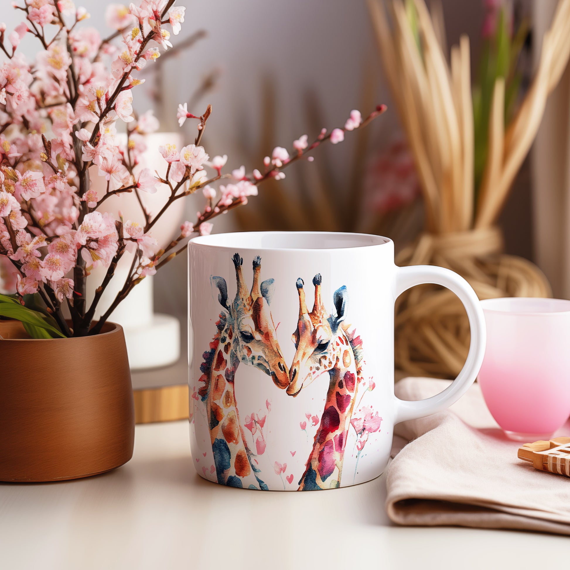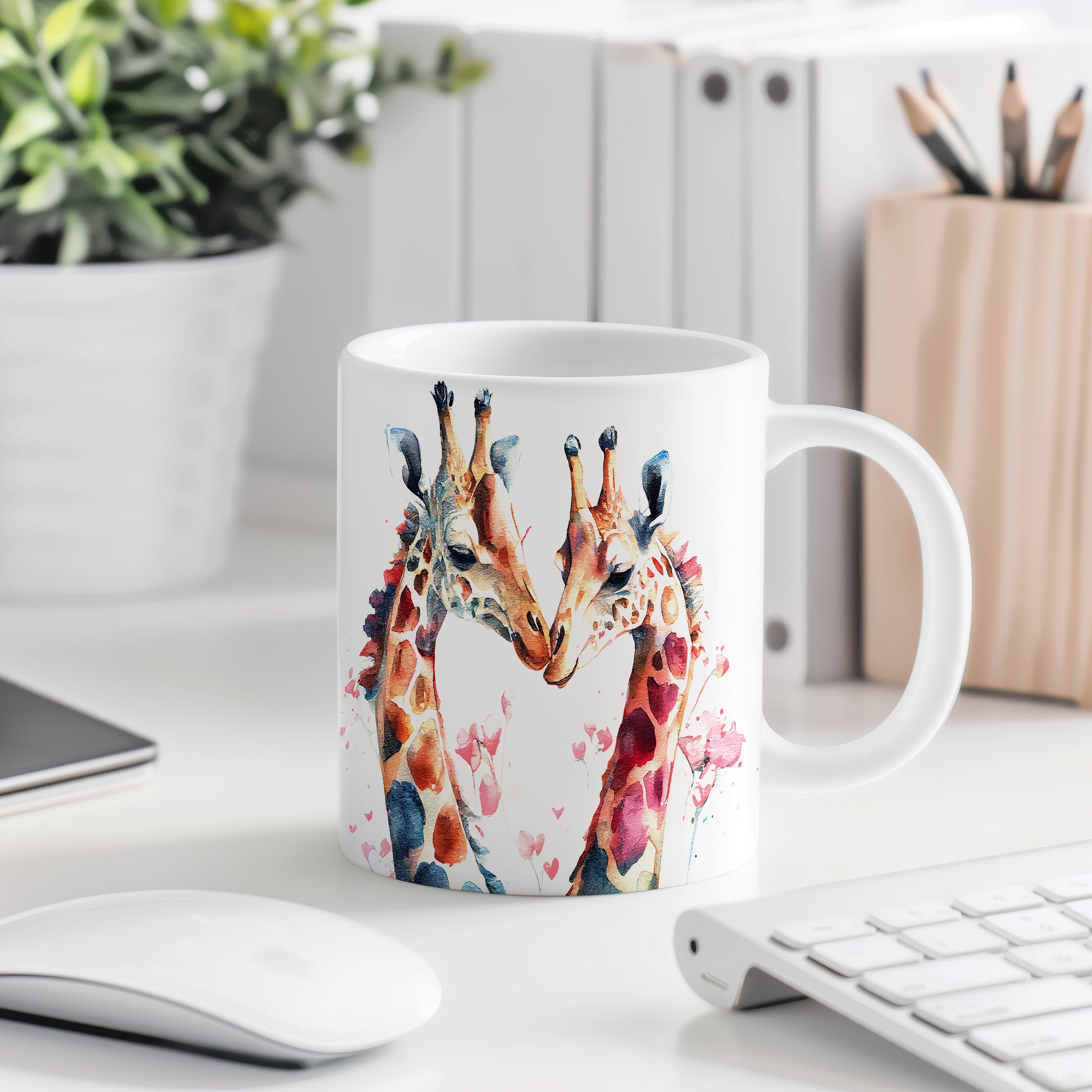 Hrnek s motivem dvou žiraf, které se k sobě naklánějí a vytvářejí tvar srdce, je ideální pro romantiky a milovníky přírody. Tento hrnek potěší jako originální dárek pro vaše blízké. Materiál: keramika. Objem: 330 ml. Vhodné do myčky i mikrovlnky. Užijte si každé sousto s tímto jedinečným kouskem, který přináší radost do každého dne.