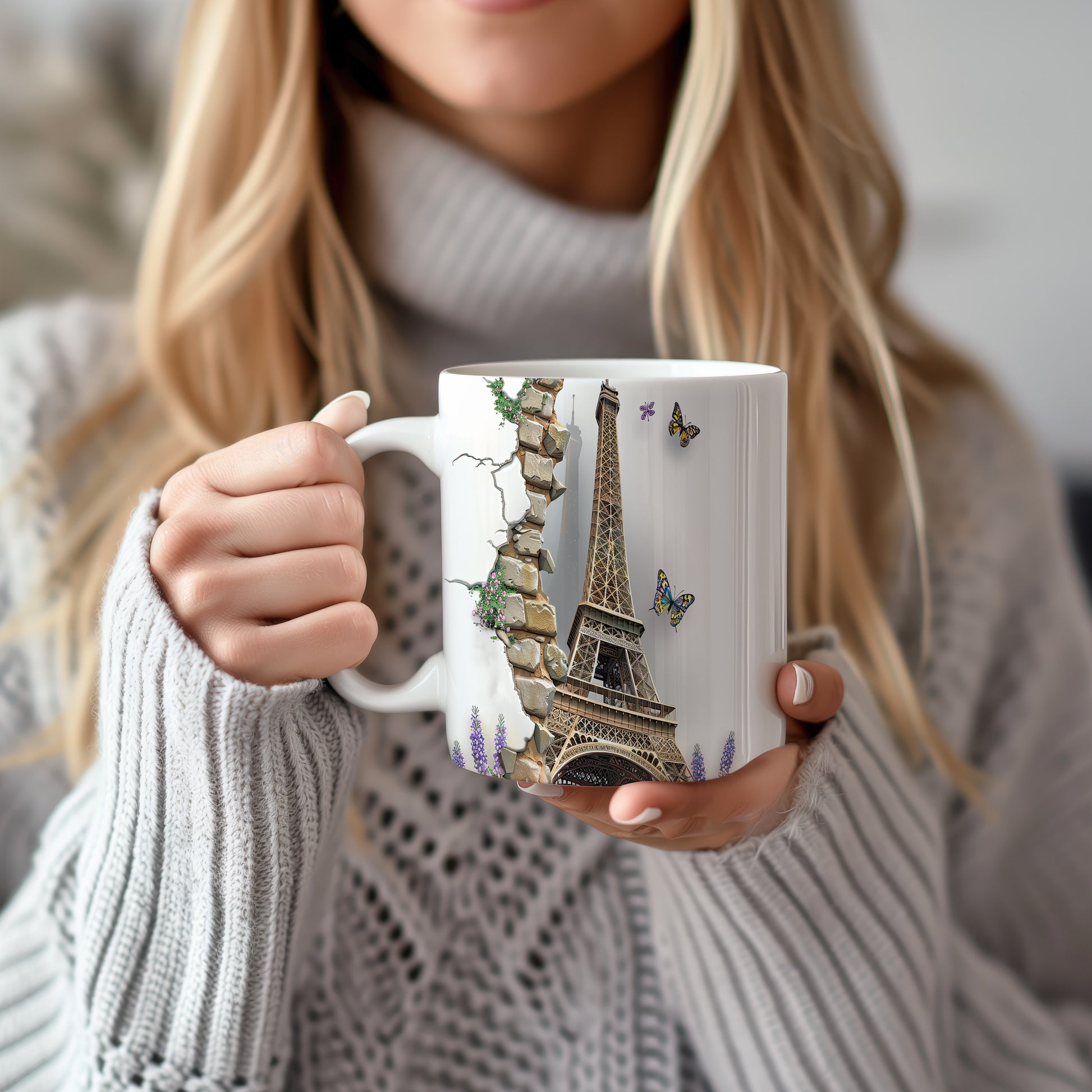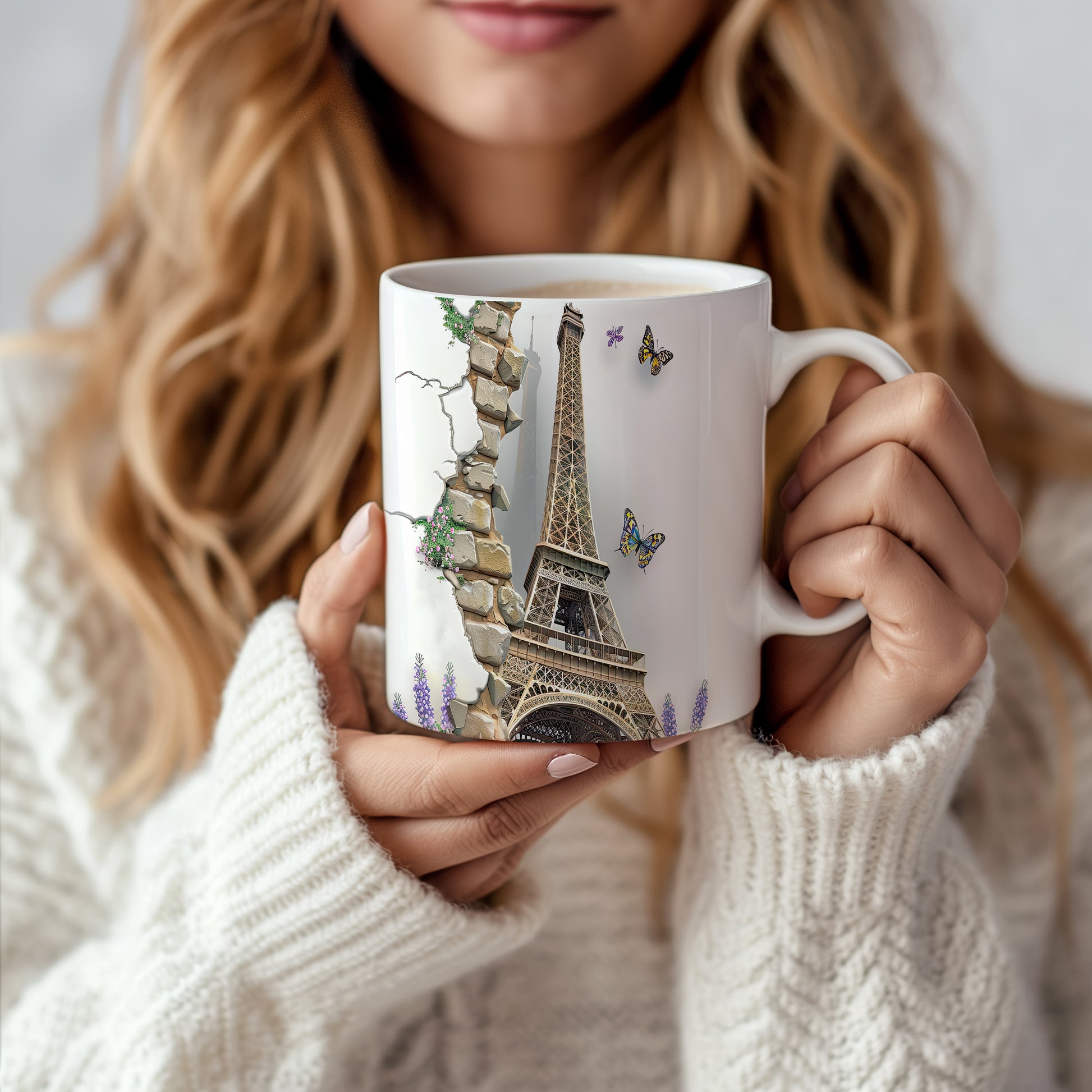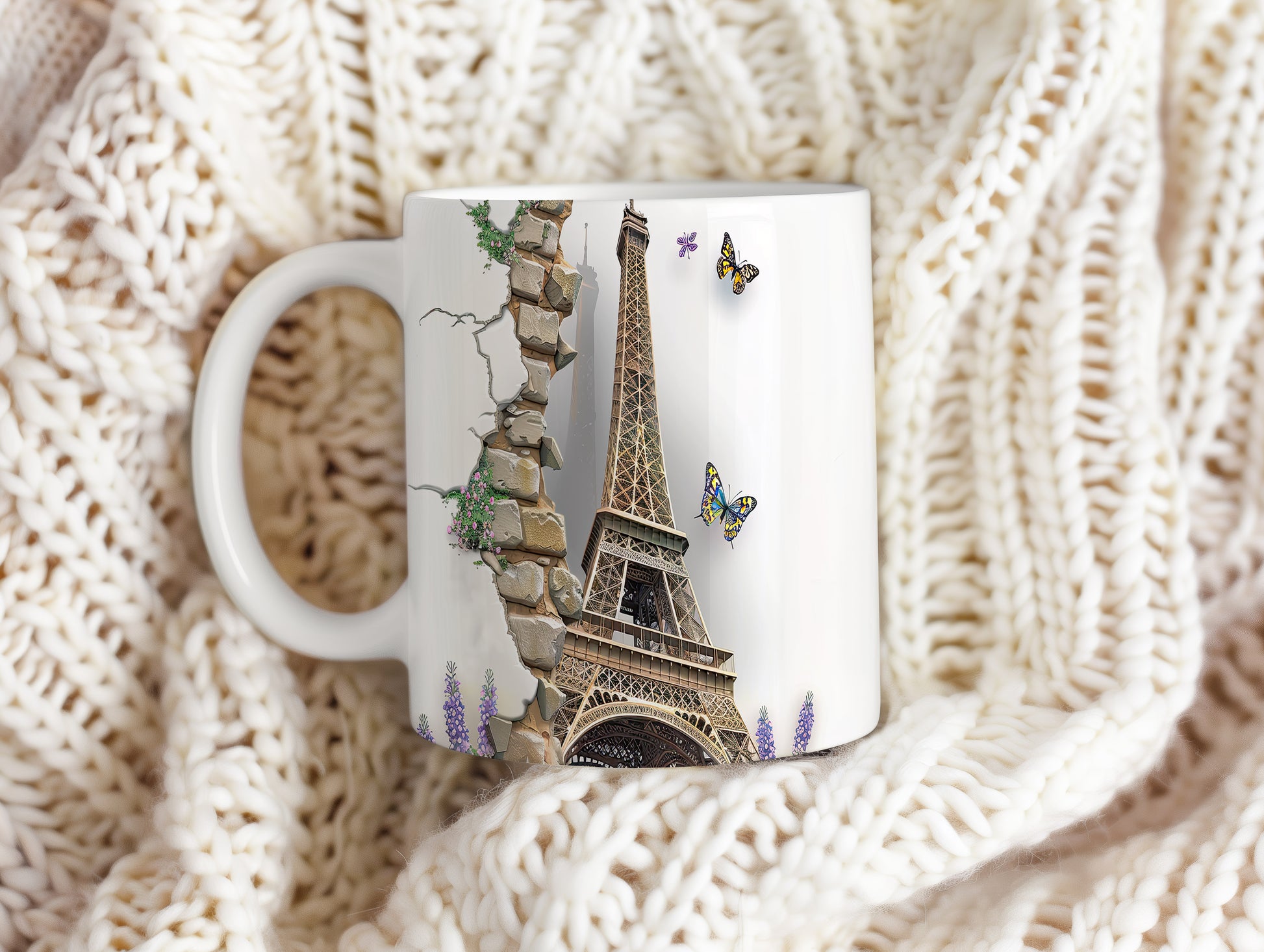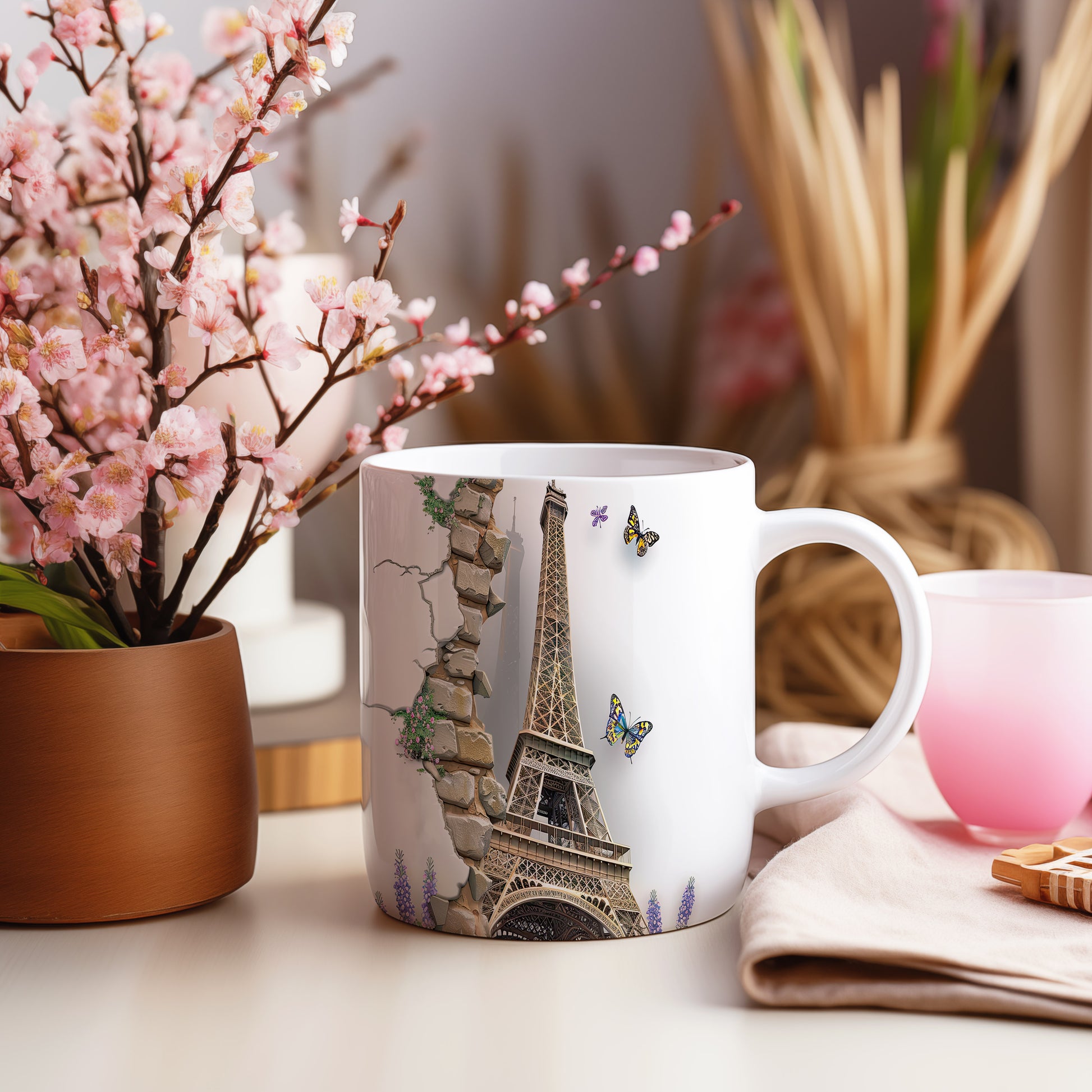 Elegantní hrnek s motivem Eiffelovy věže a barevnými motýly. Tento hrnek je ideální pro milovníky Paříže a přírody, skvělý tip na dárek pro každého, kdo ocení krásu. Materiál: keramika. Objem: 330 ml. Vhodné do myčky i mikrovlnky. Používáním tohoto hrnku si můžete vychutnat svůj oblíbený nápoj s nádechem elegance.