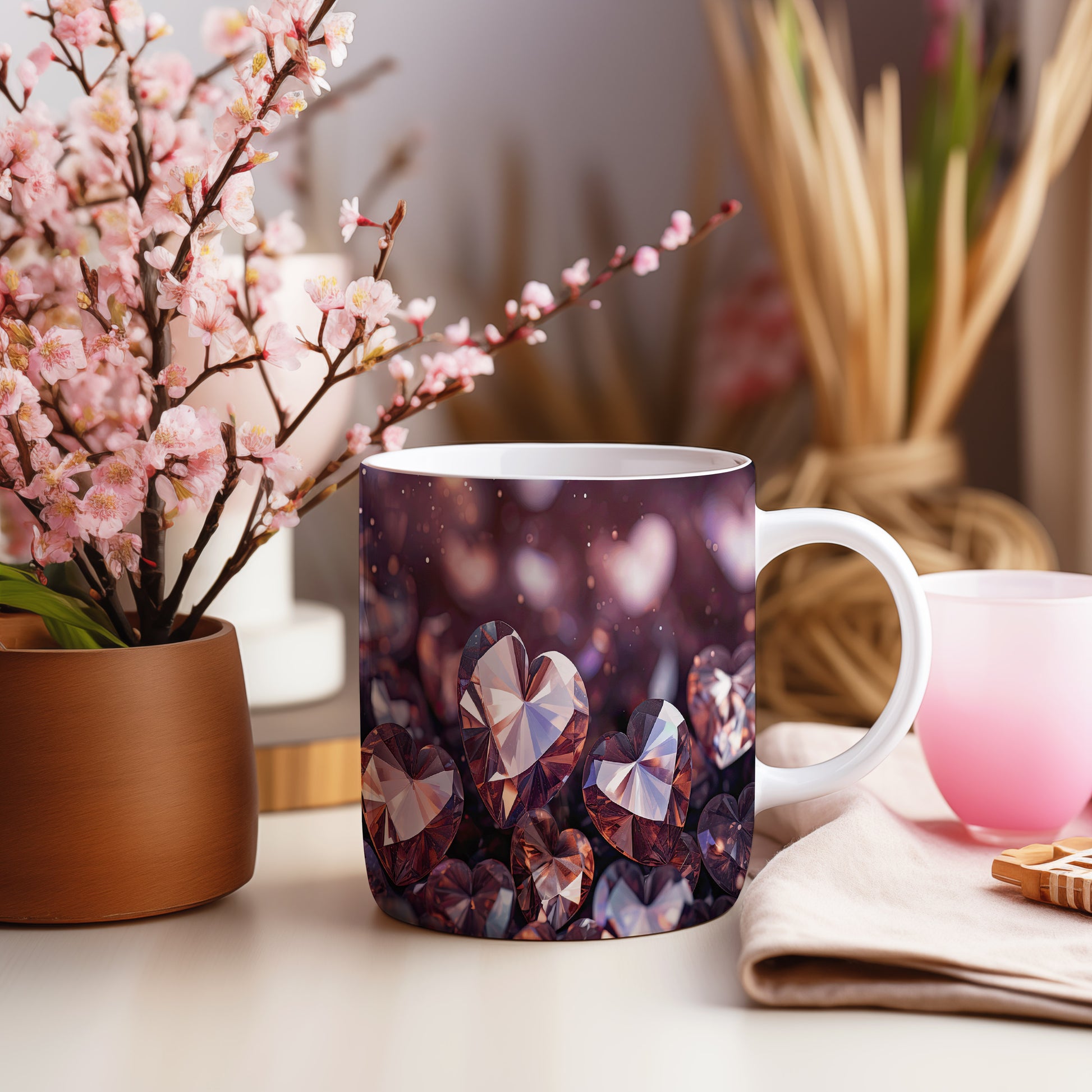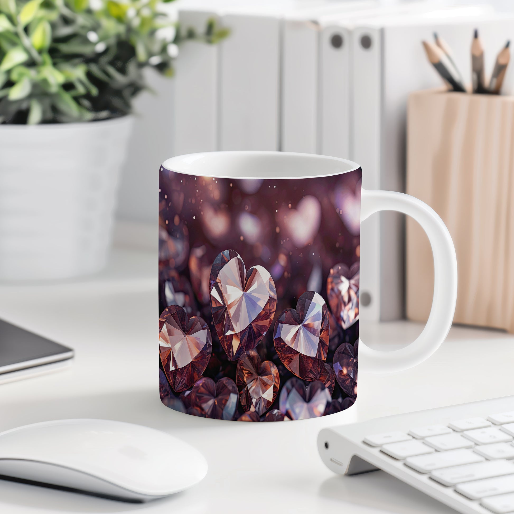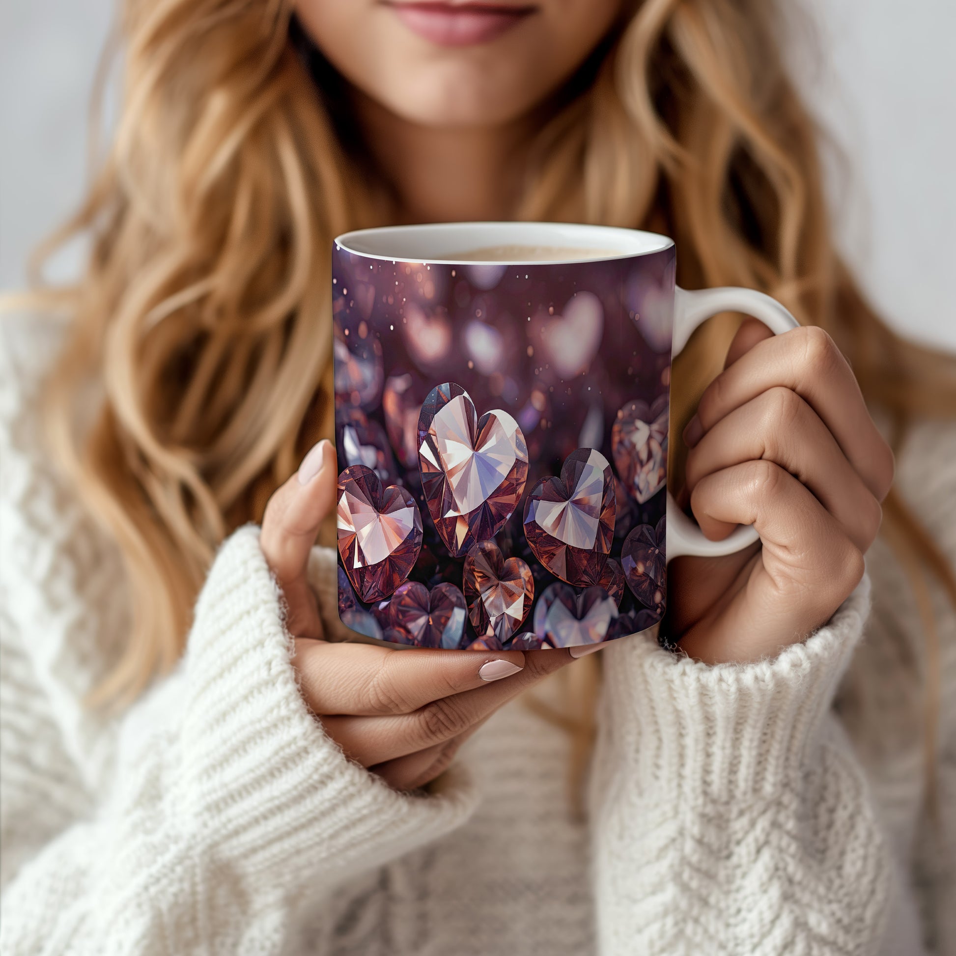 Hrnek s elegantní krystalickou mozaikou v růžových a fialových tónech