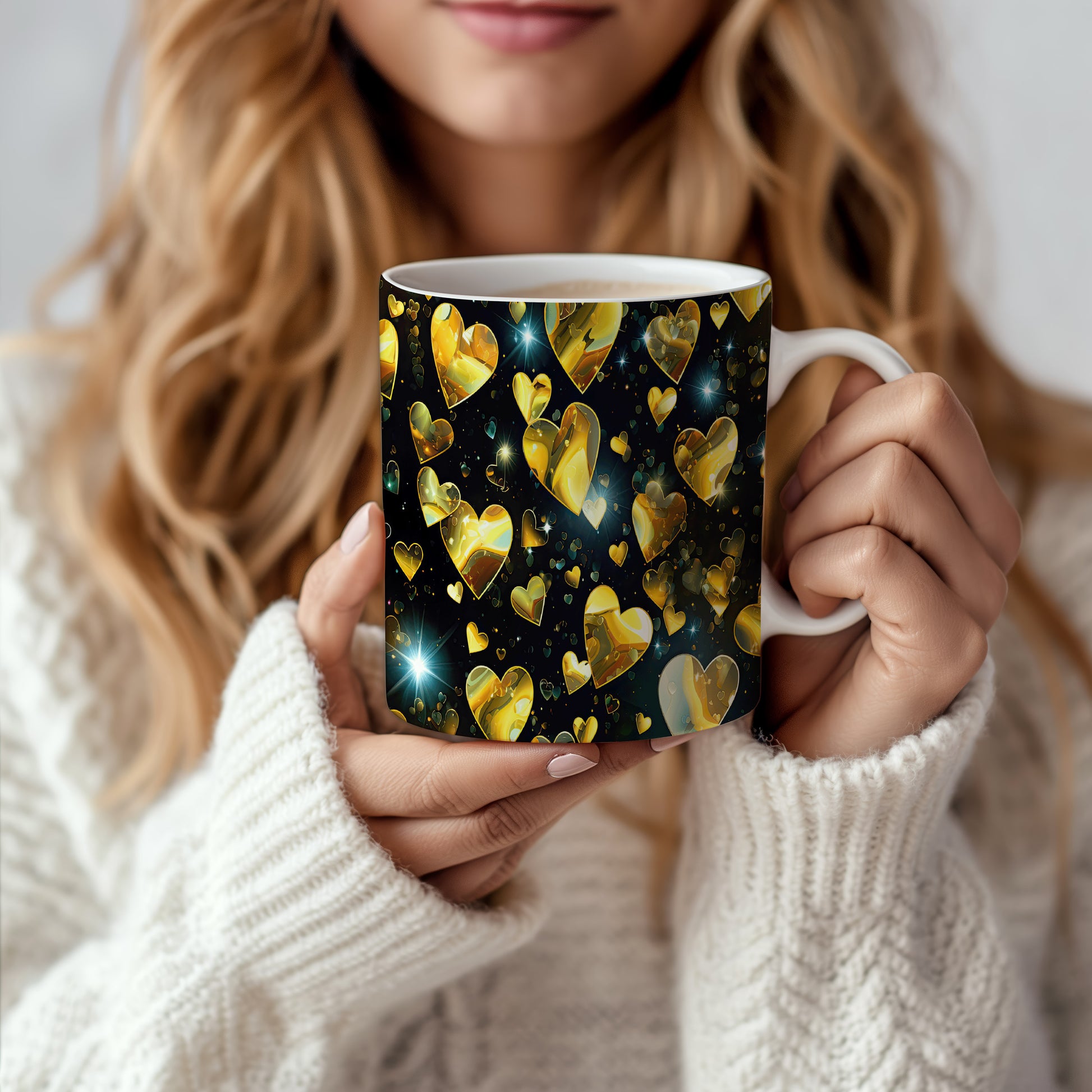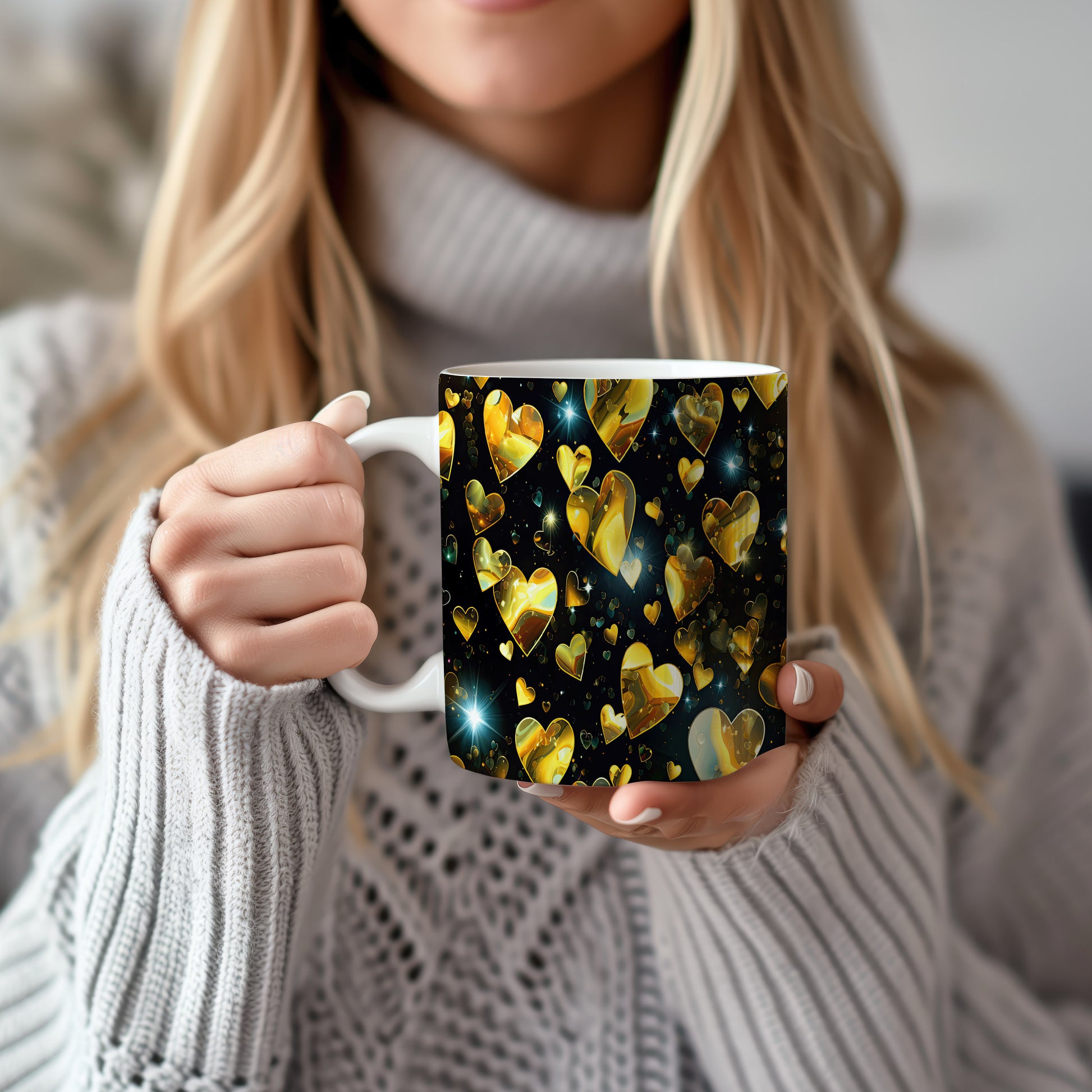Tento hrnek s krystalickou mozaikou v zlatých a černých tónech přináší elegantní a moderní design. Je ideální pro milovníky stylového nádobí a skvělým dárkem pro přátele či rodinu. Materiál: keramika. Objem: 330 ml. Vhodné do myčky i mikrovlnky. Díky svému jedinečnému vzhledu přidá šmrnc každému stolu.