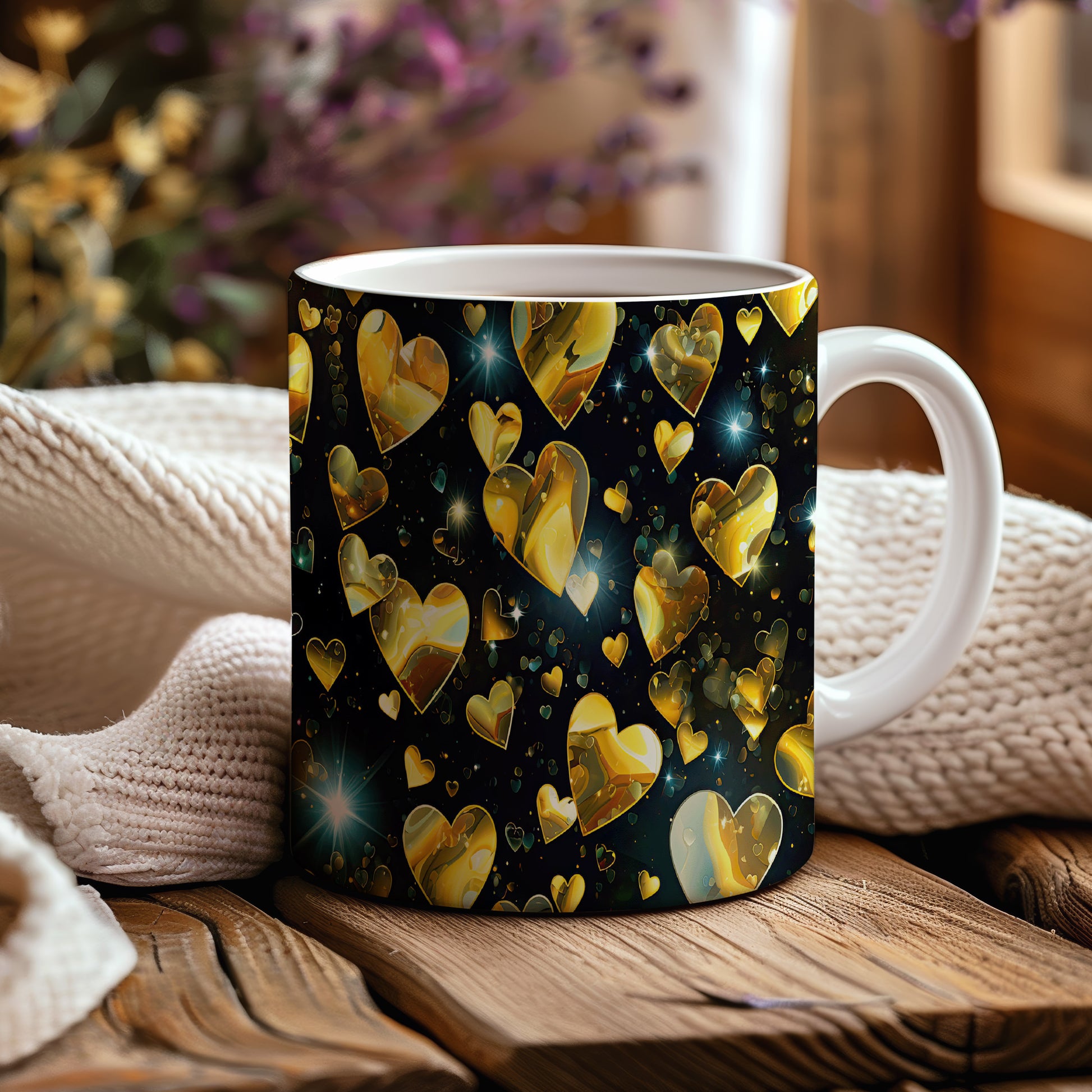 Hrnek s elegantní krystalickou mozaikou v zlatých tónech…