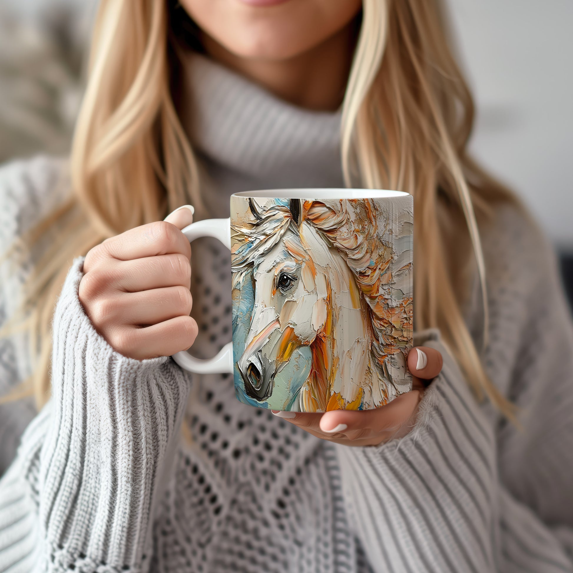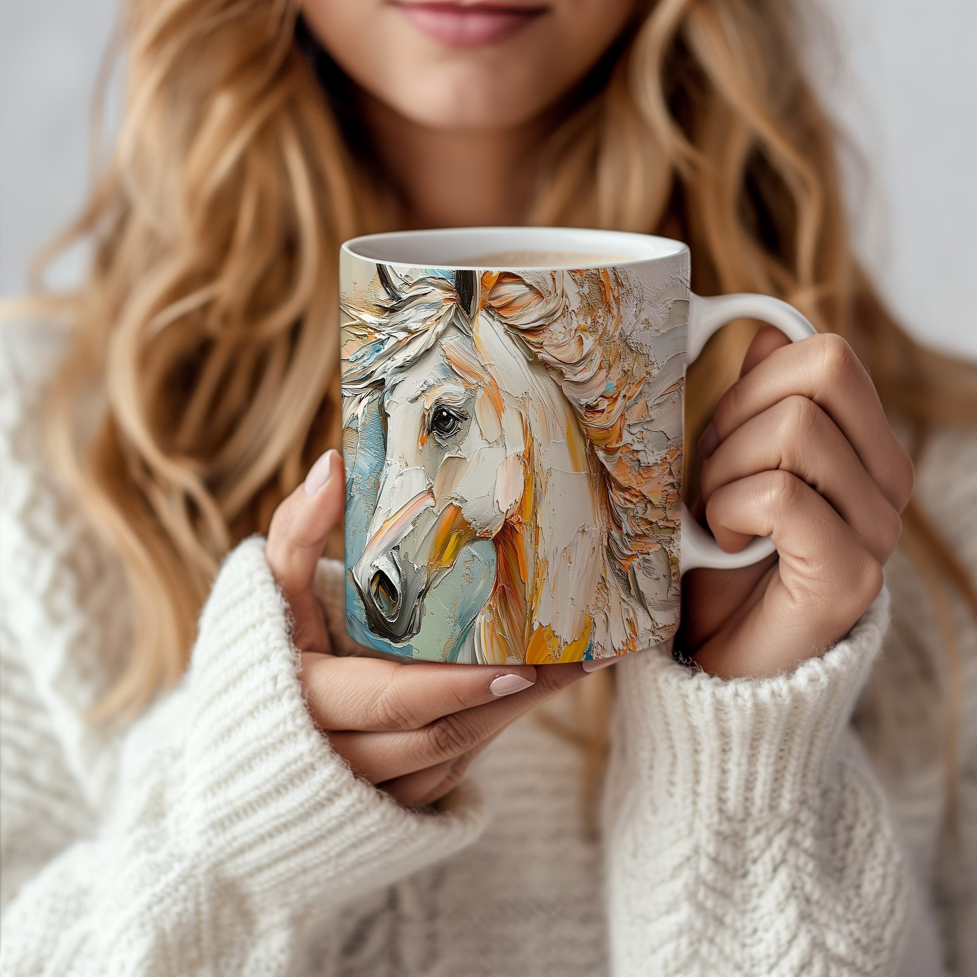 Tento hrnek zdobí stylizovaný motiv elegantního bílého koně, který přináší do vašeho každodenního pití nádech elegance. Je ideální pro milovníky koní a skvělým dárkem pro každého, kdo ocení krásu přírody. Materiál: keramika. Objem: 330 ml. Vhodné do myčky i mikrovlnky. Používáním tohoto hrnku si užijete nejen skvělý design, ale i pohodlné pití vašeho oblíbeného nápoje.