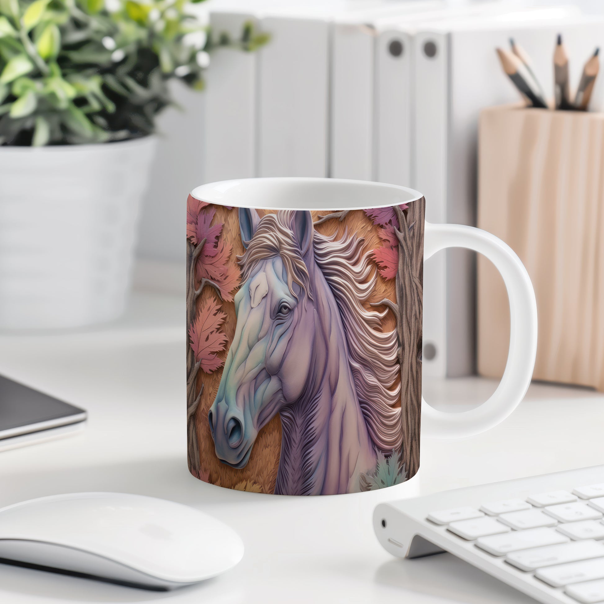 Hrnek s elegantním koněm vyniká stylizovaným portrétem a jemnými detaily. Je ideální pro milovníky koní a skvělým dárkem pro každého, kdo ocení krásu přírody. Materiál: keramika. Objem: 330 ml. Vhodné do myčky i mikrovlnky. Tento hrnek vám přinese radost při každém doušku vašeho oblíbeného nápoje.