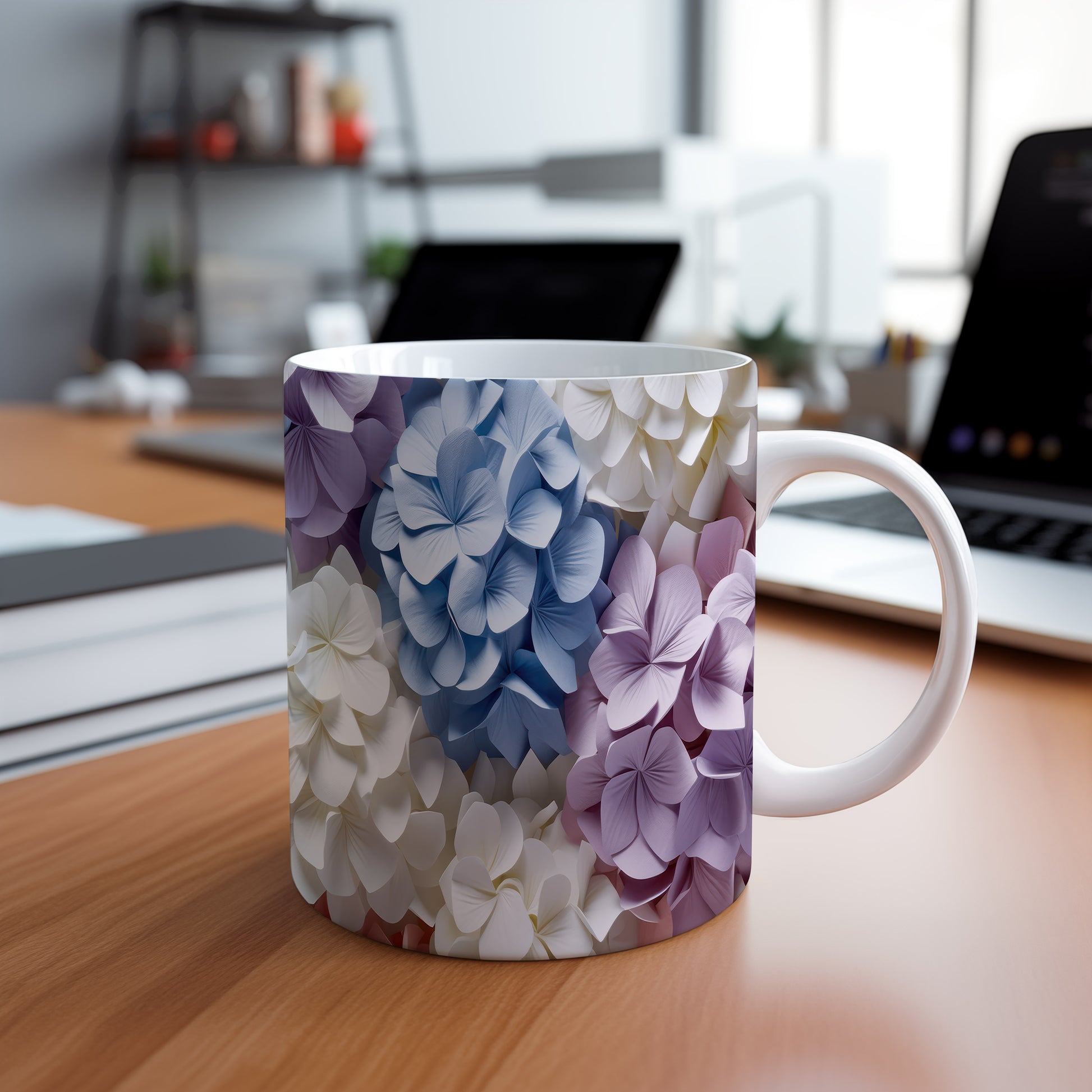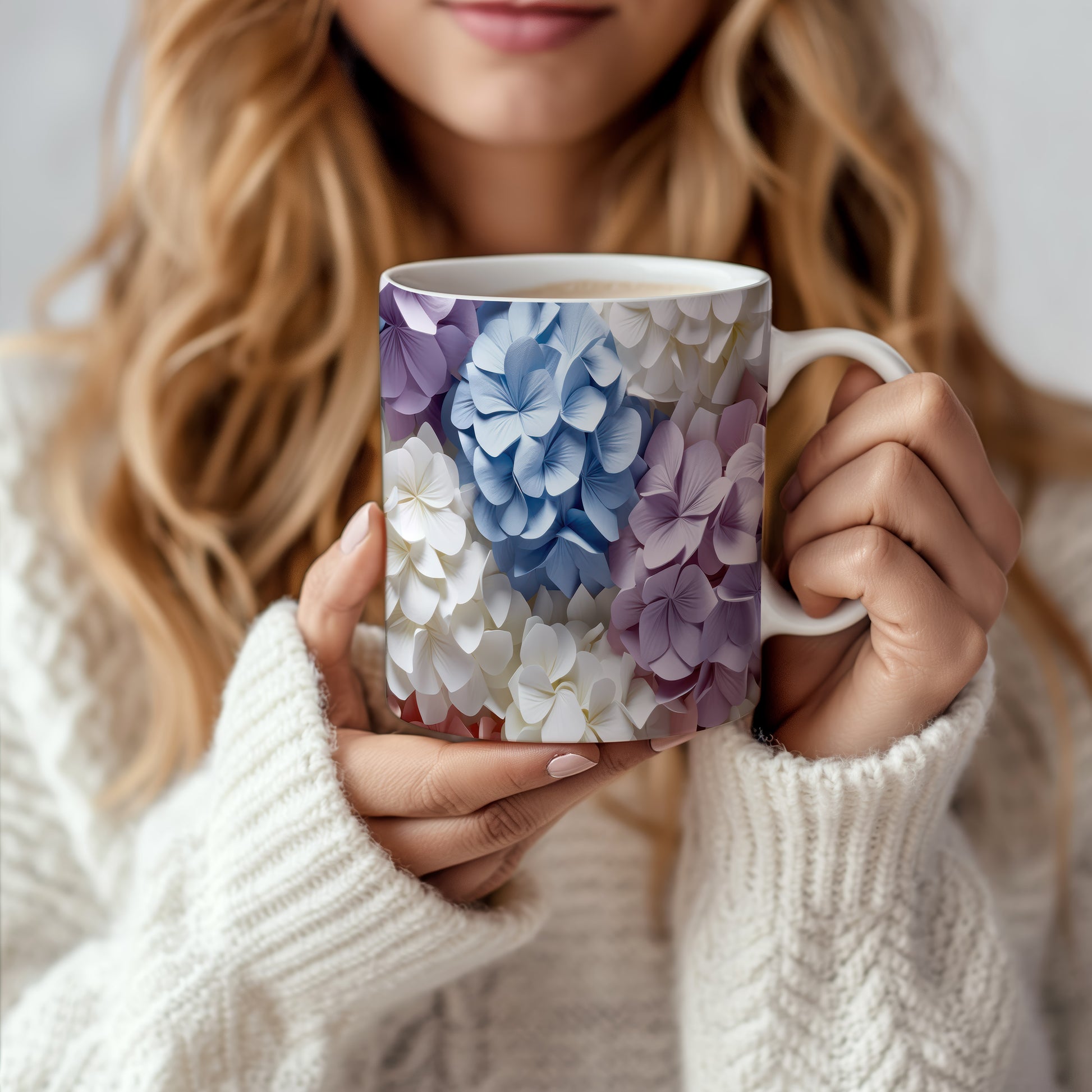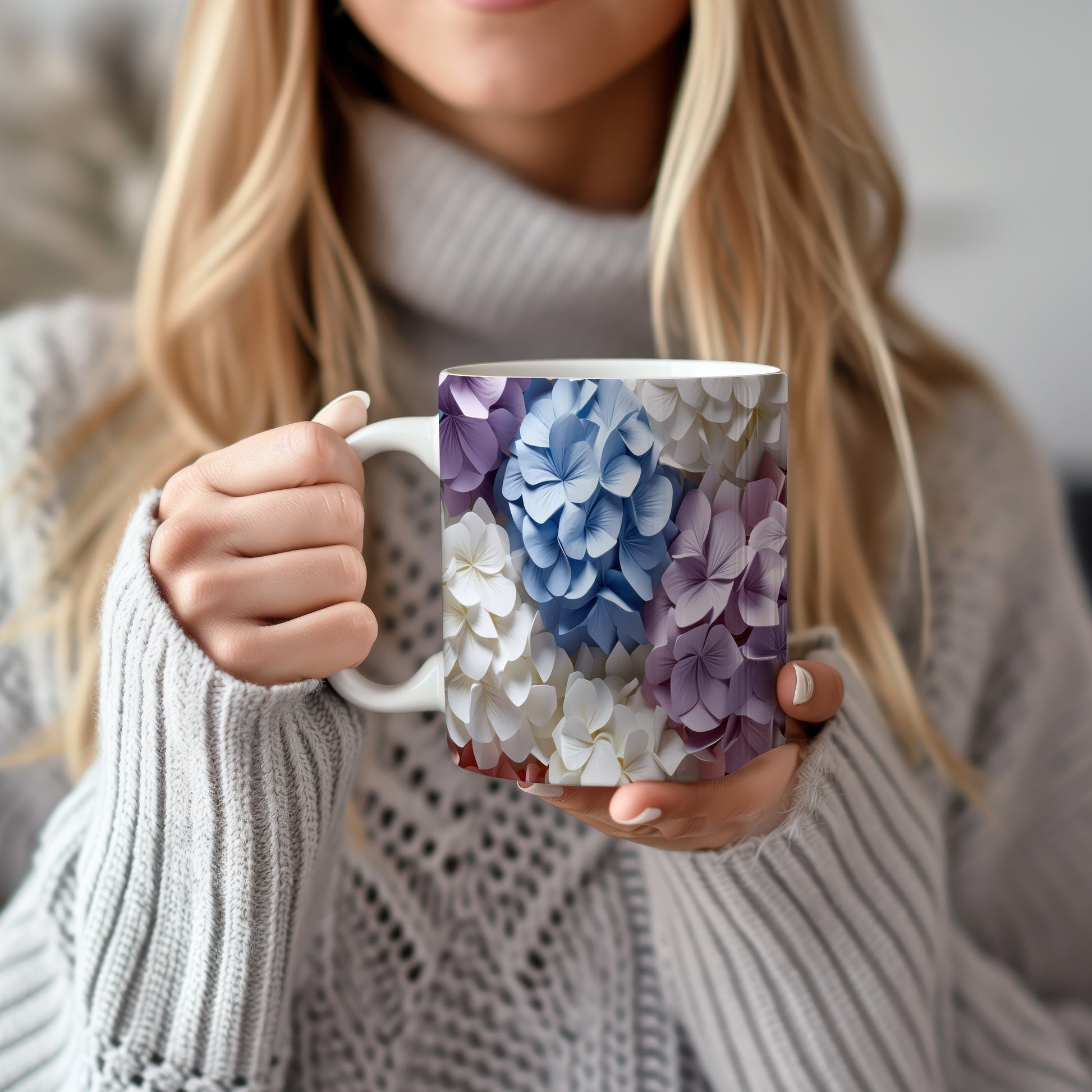 Elegantní hrnek s květinovým designem v modrých, fialových a bílých odstínech. Tento stylový kousek je ideální pro každodenní používání a skvělým dárkem pro milovníky přírody. Materiál: keramika. Objem: 330 ml. Vhodné do myčky i mikrovlnky. Díky svému designu přináší radost a oživí každé posezení.