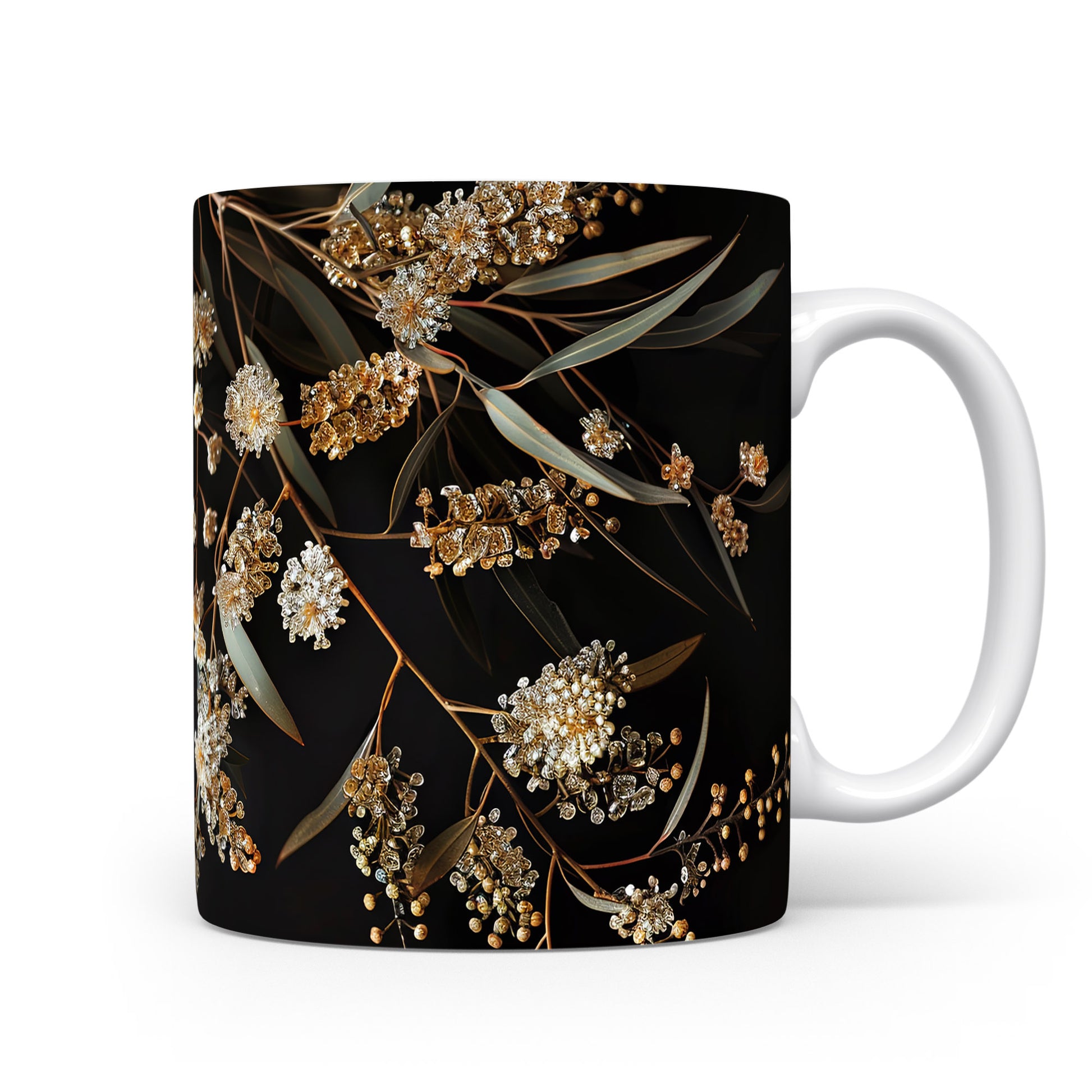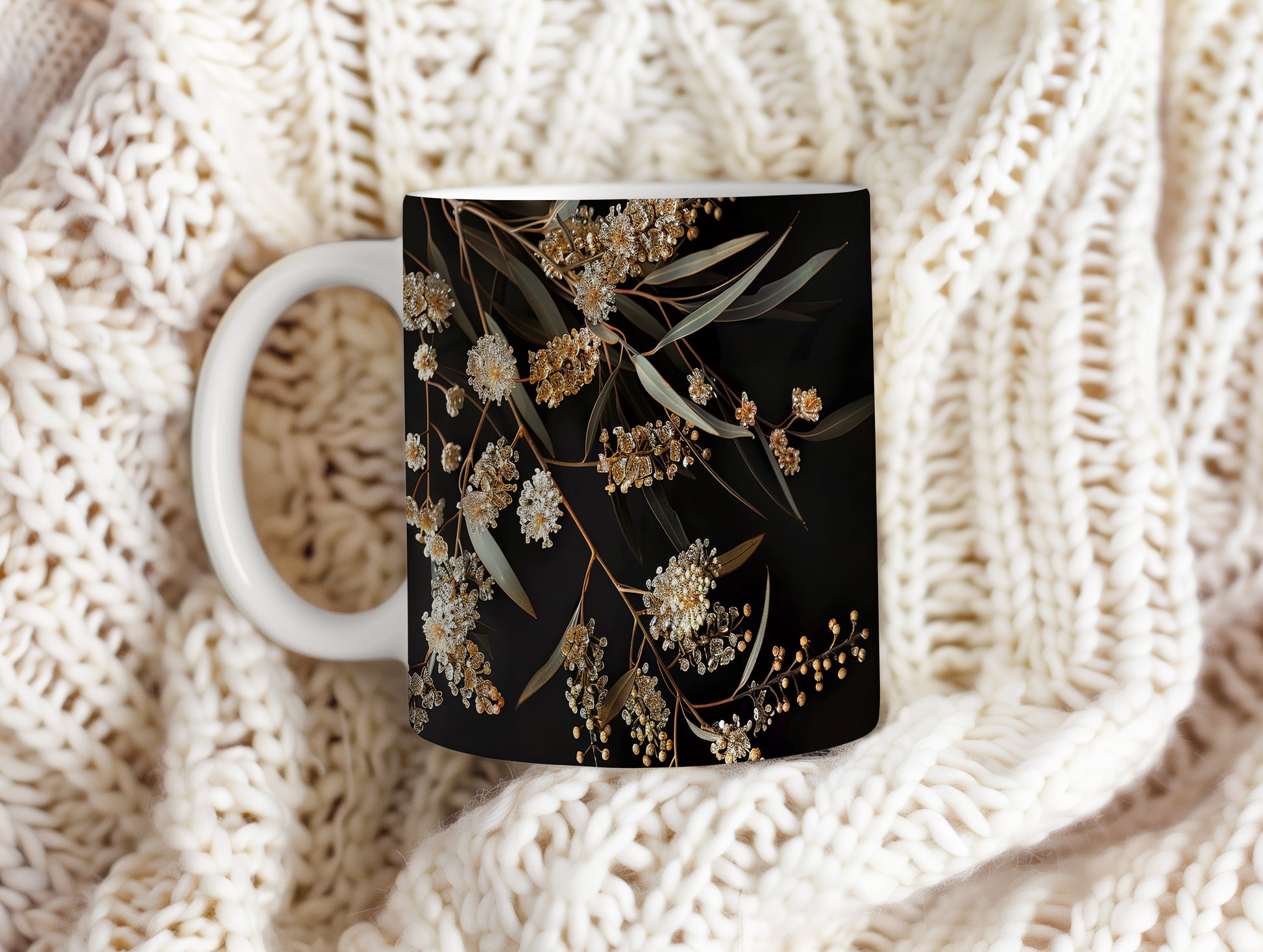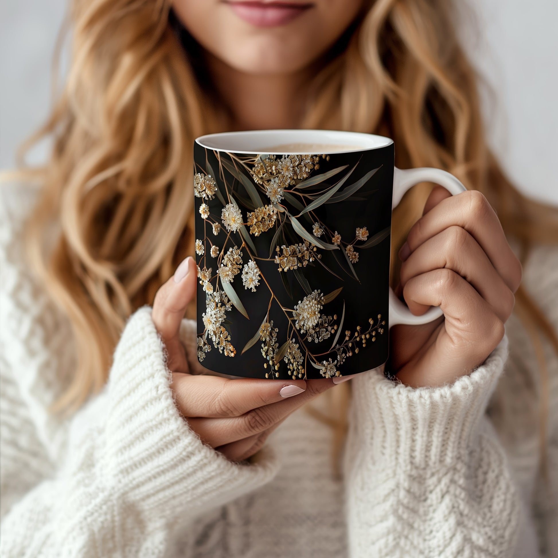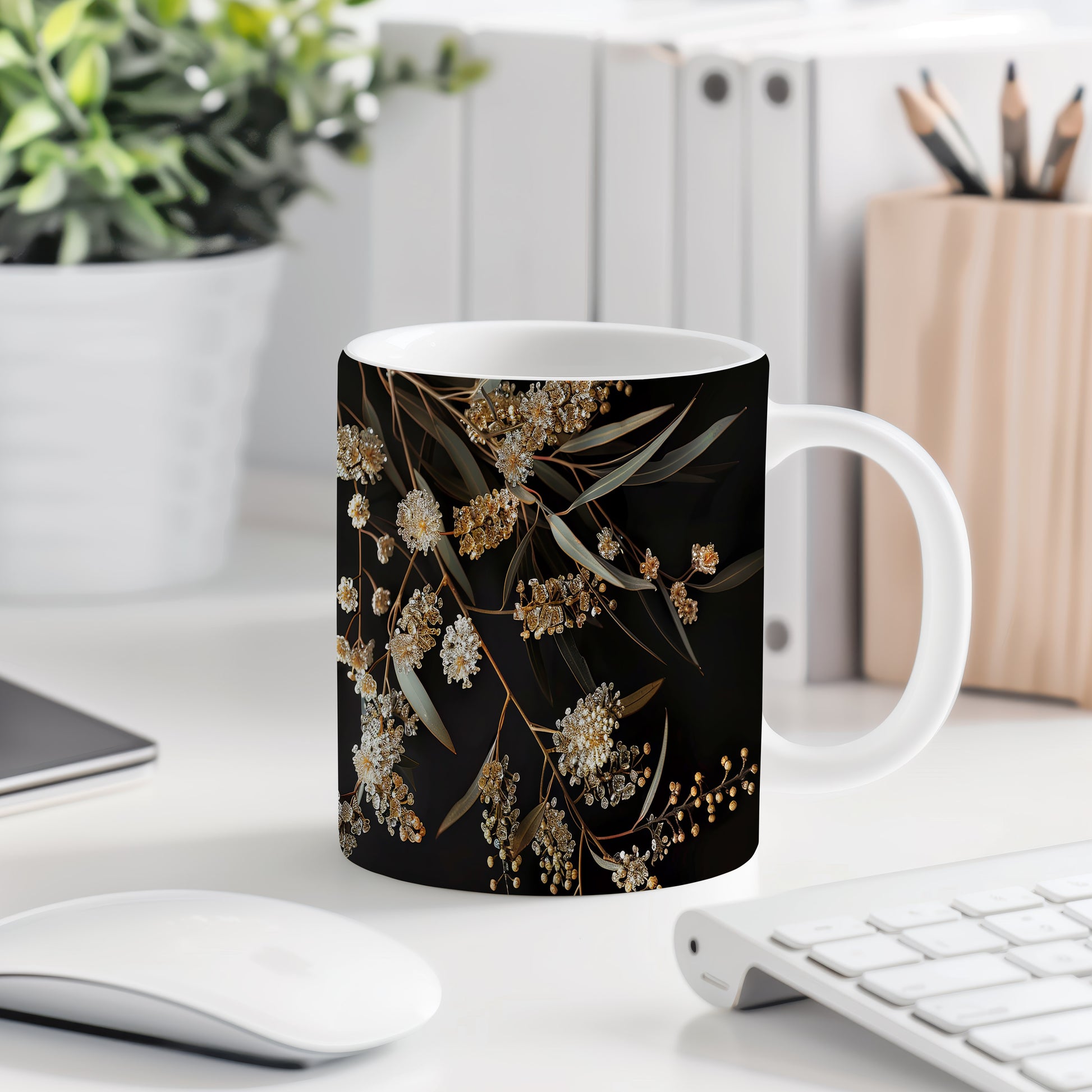 Tento hrnek se pyšní krásným květinovým motivem v zlatých a stříbrných tónech. Je ideální pro milovníky květin a stylového designu, skvělý tip na dárek pro každou příležitost. Materiál: keramika. Objem: 330 ml. Vhodné do myčky i mikrovlnky. Používáním tohoto hrnku si užijete nejen estetický zážitek, ale i pohodlné pití vašeho oblíbeného nápoje.
