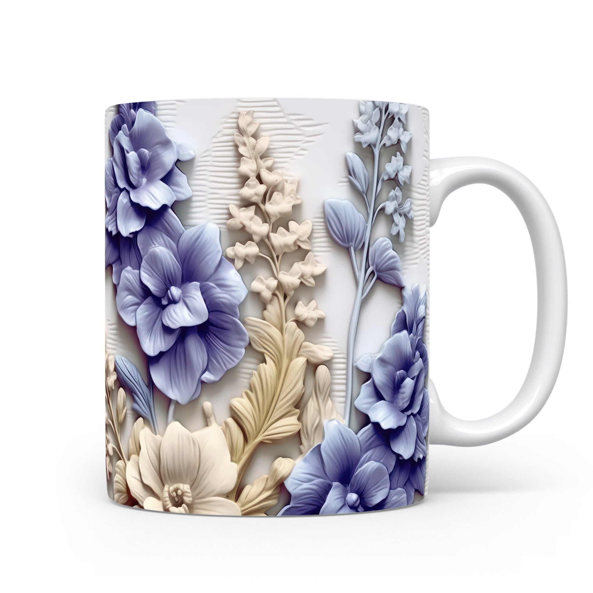 Hrnek s elegantním květinovým motivem v modro – béžových tónech