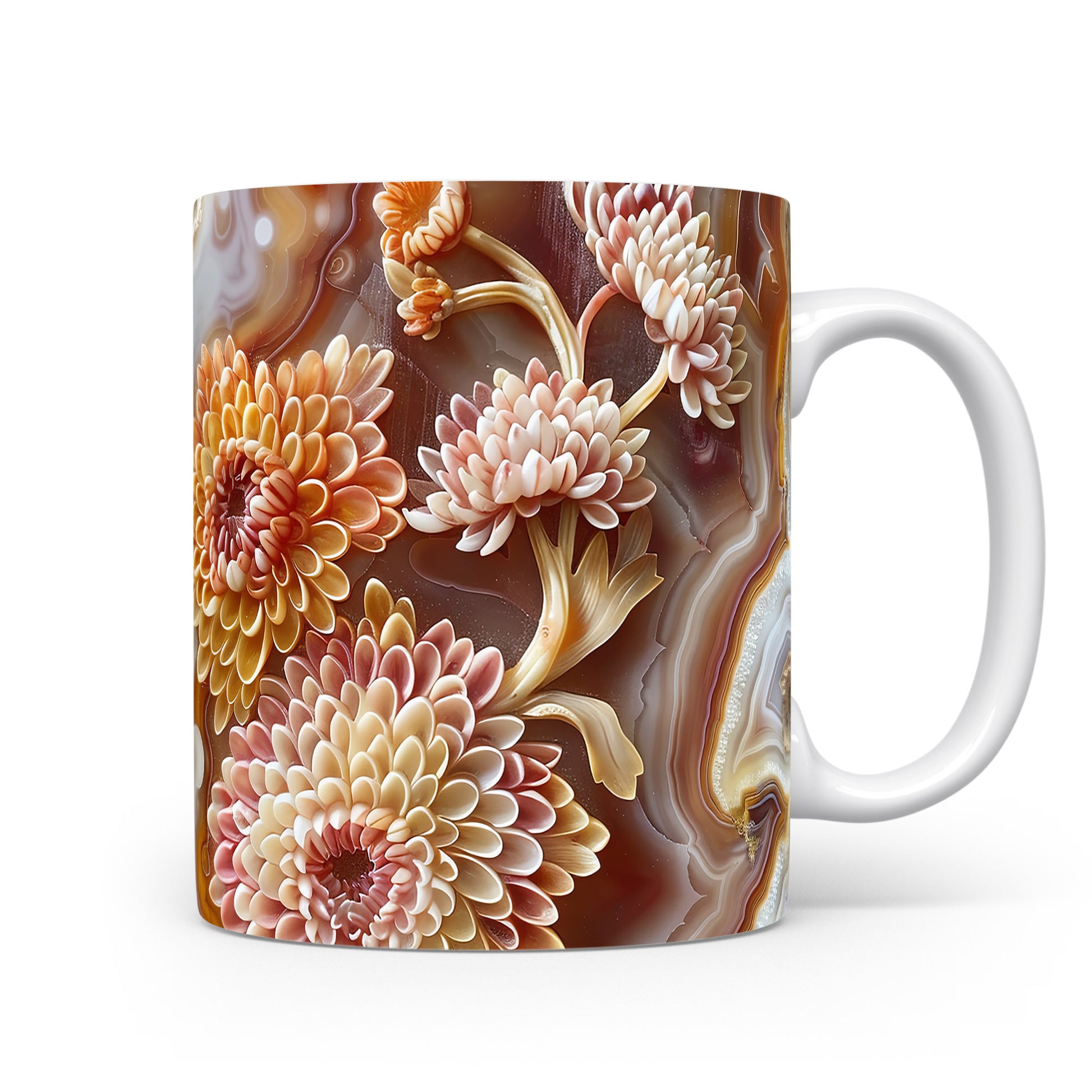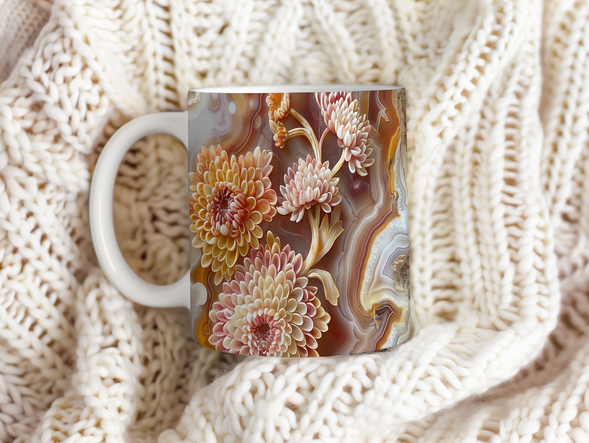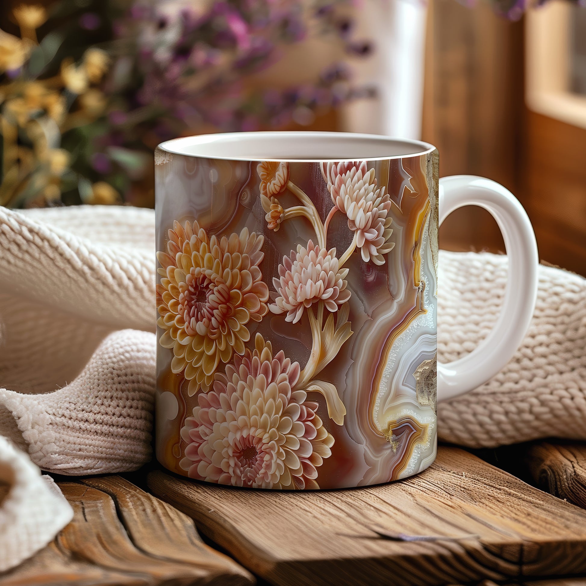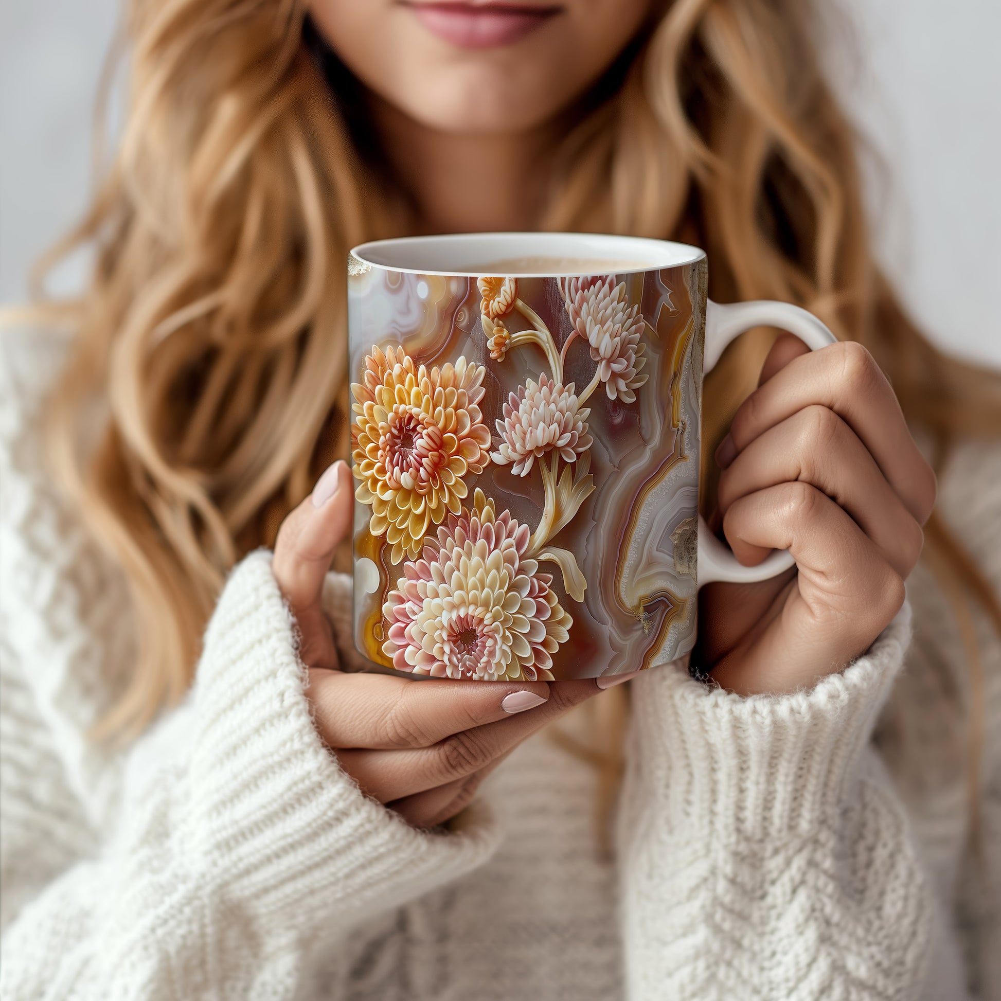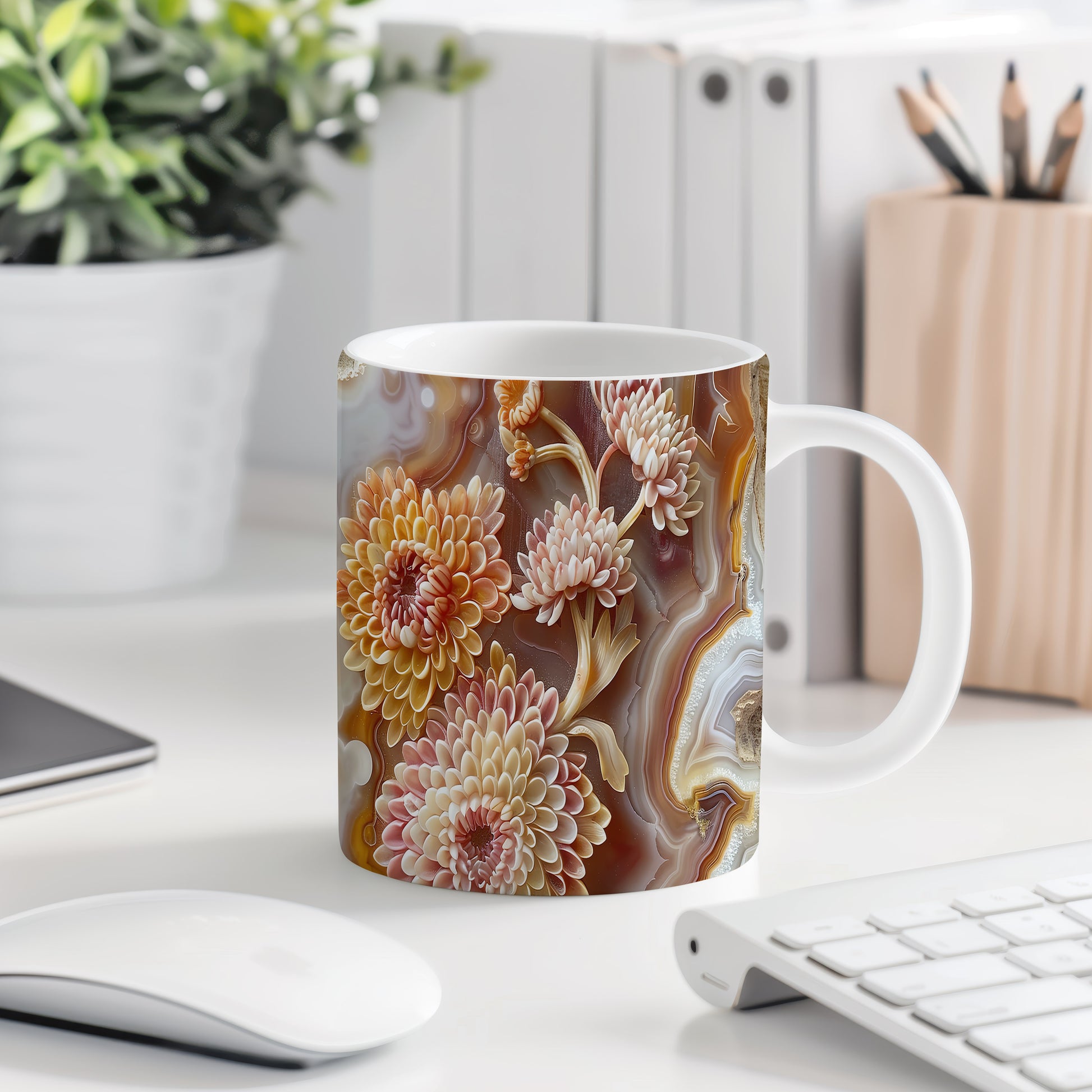 Hrnek s elegantním květinovým motivem v teplých tónech