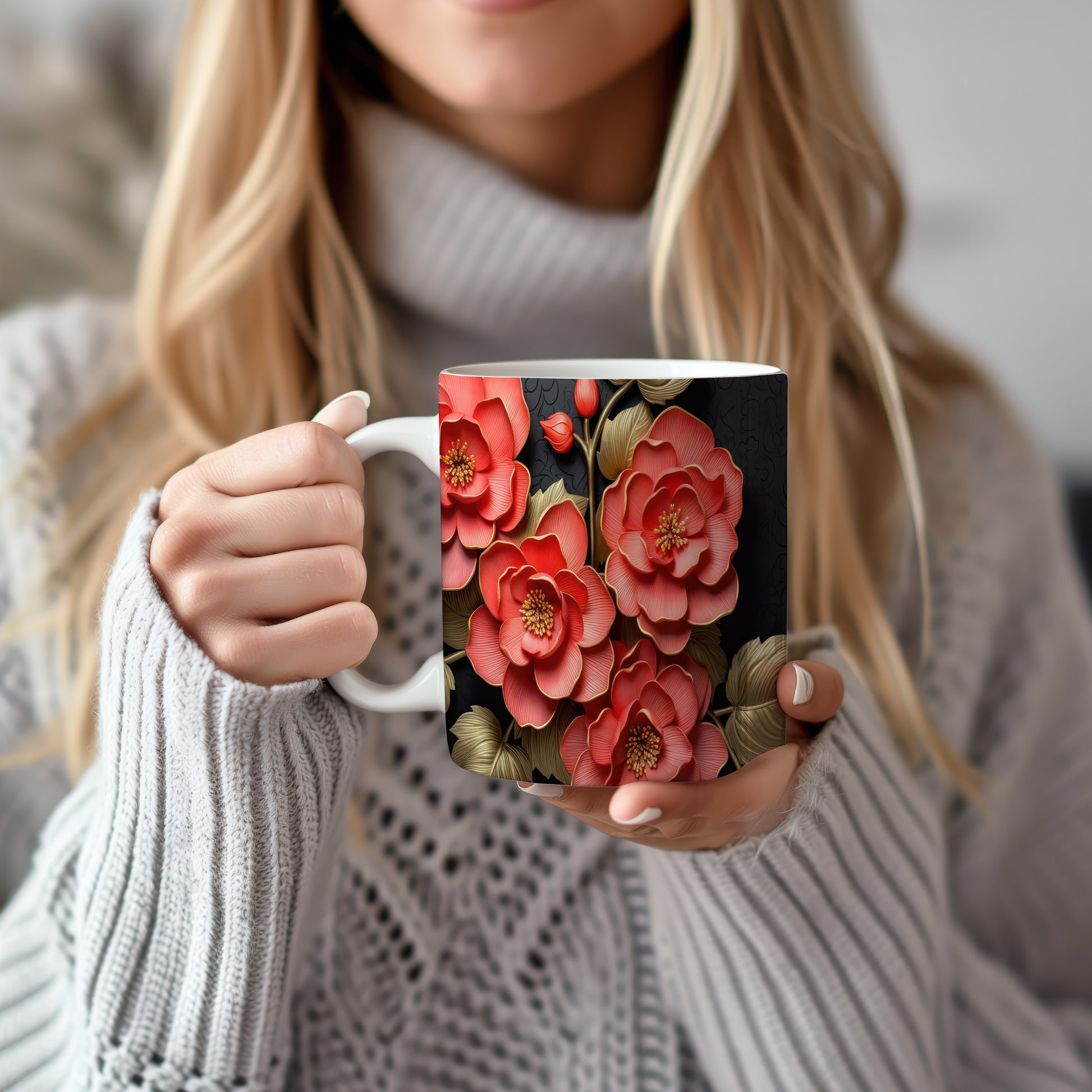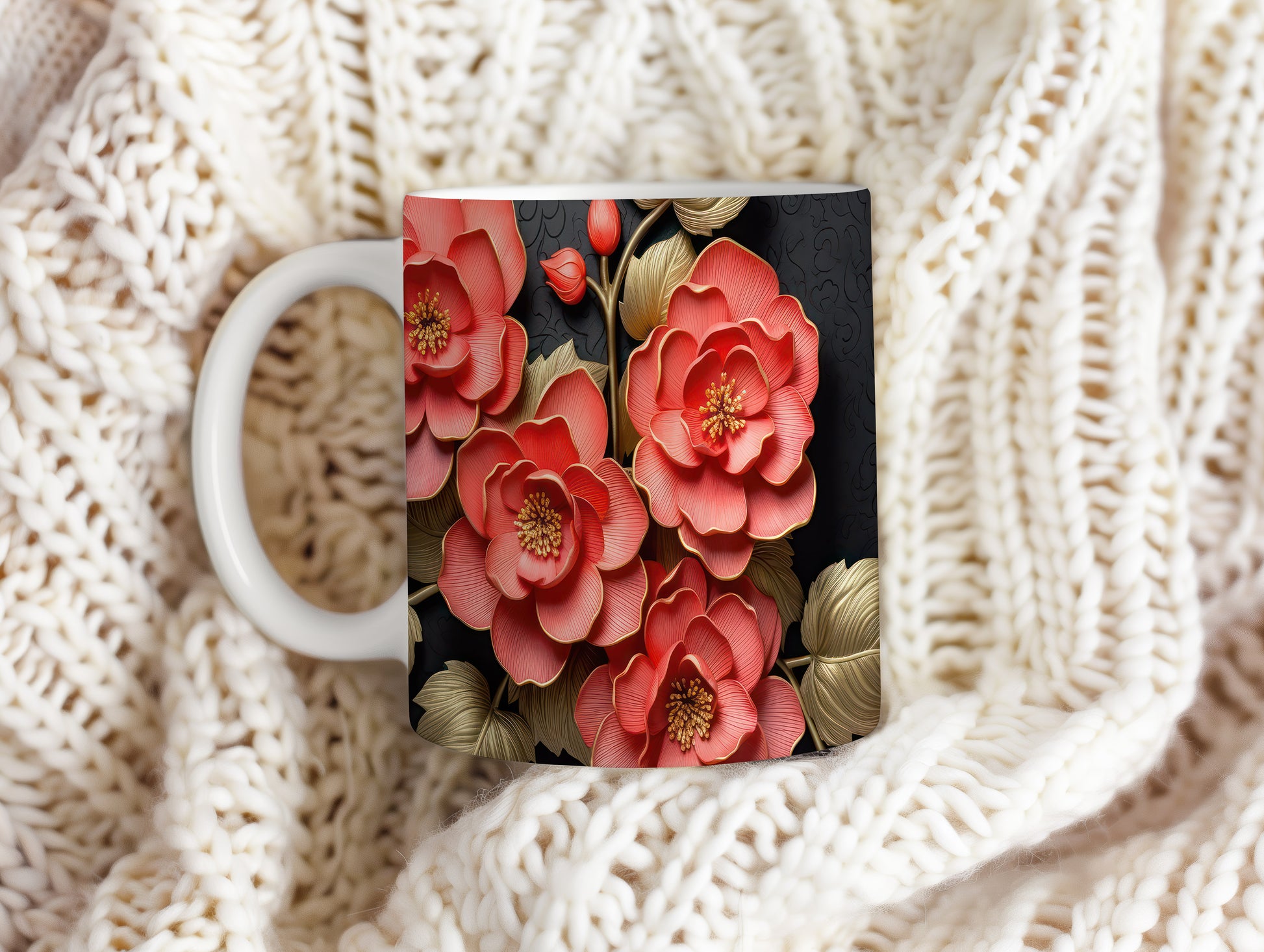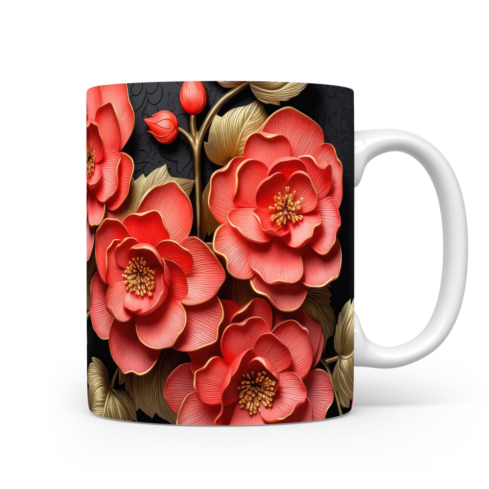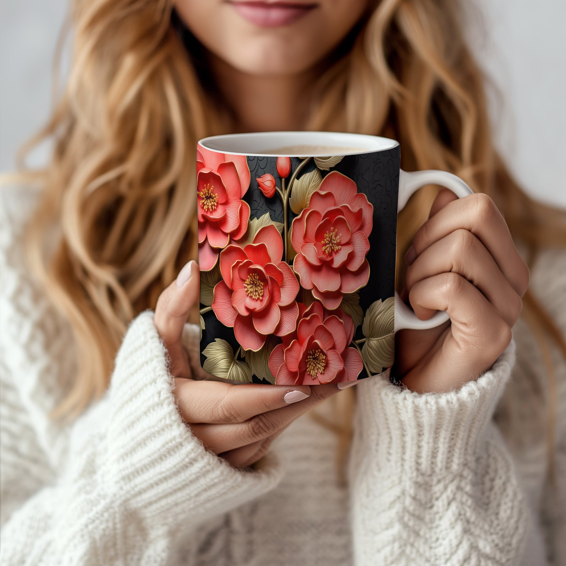 Hrnek s bohatým květinovým vzorem v odstínech červené a zlaté. Tento elegantní kousek je ideální pro milovníky přírody a květin, skvělý tip na dárek pro blízké. Materiál: keramika. Objem: 330 ml. Vhodné do myčky i mikrovlnky. Užijte si každodenní kávu nebo čaj s tímto stylovým hrnkem.