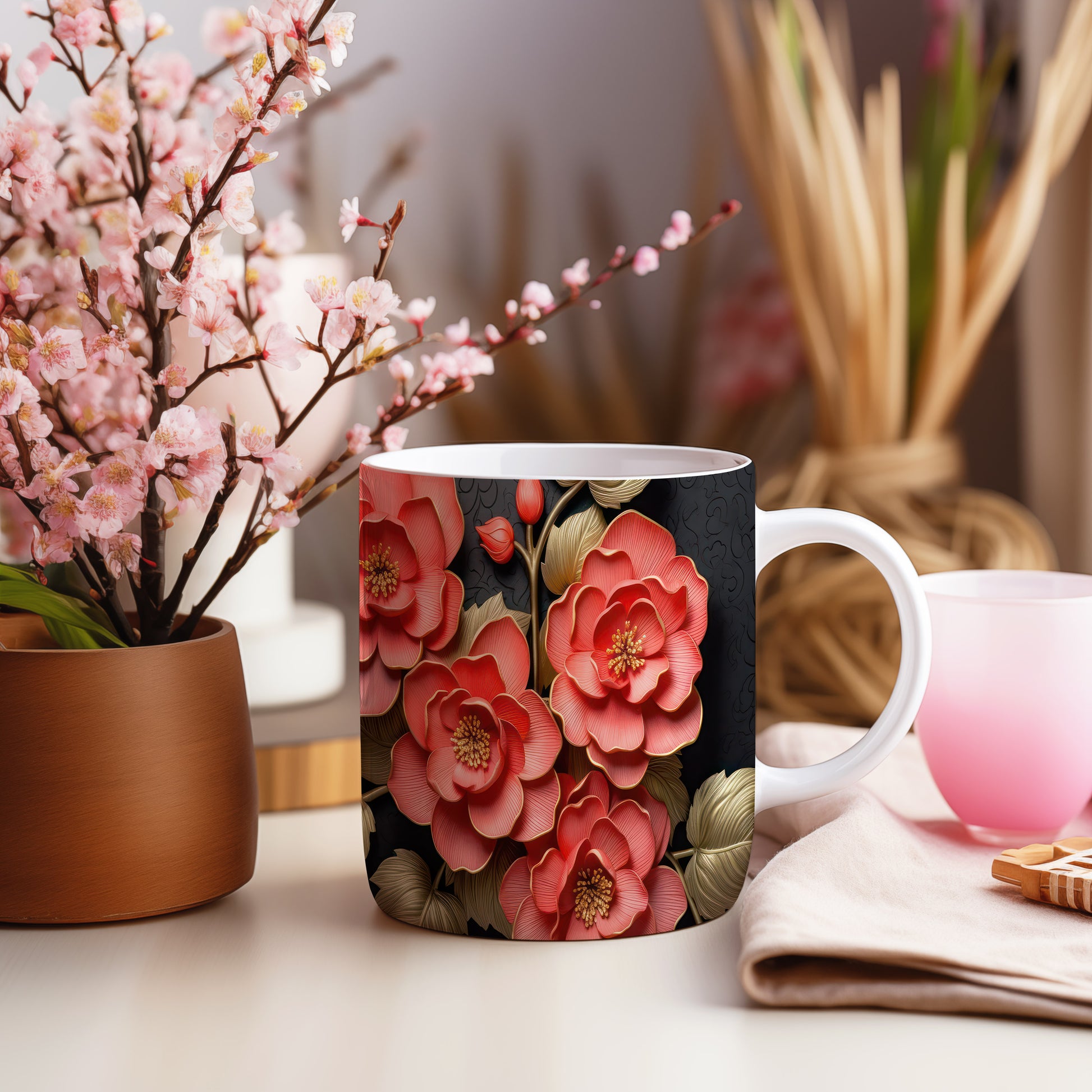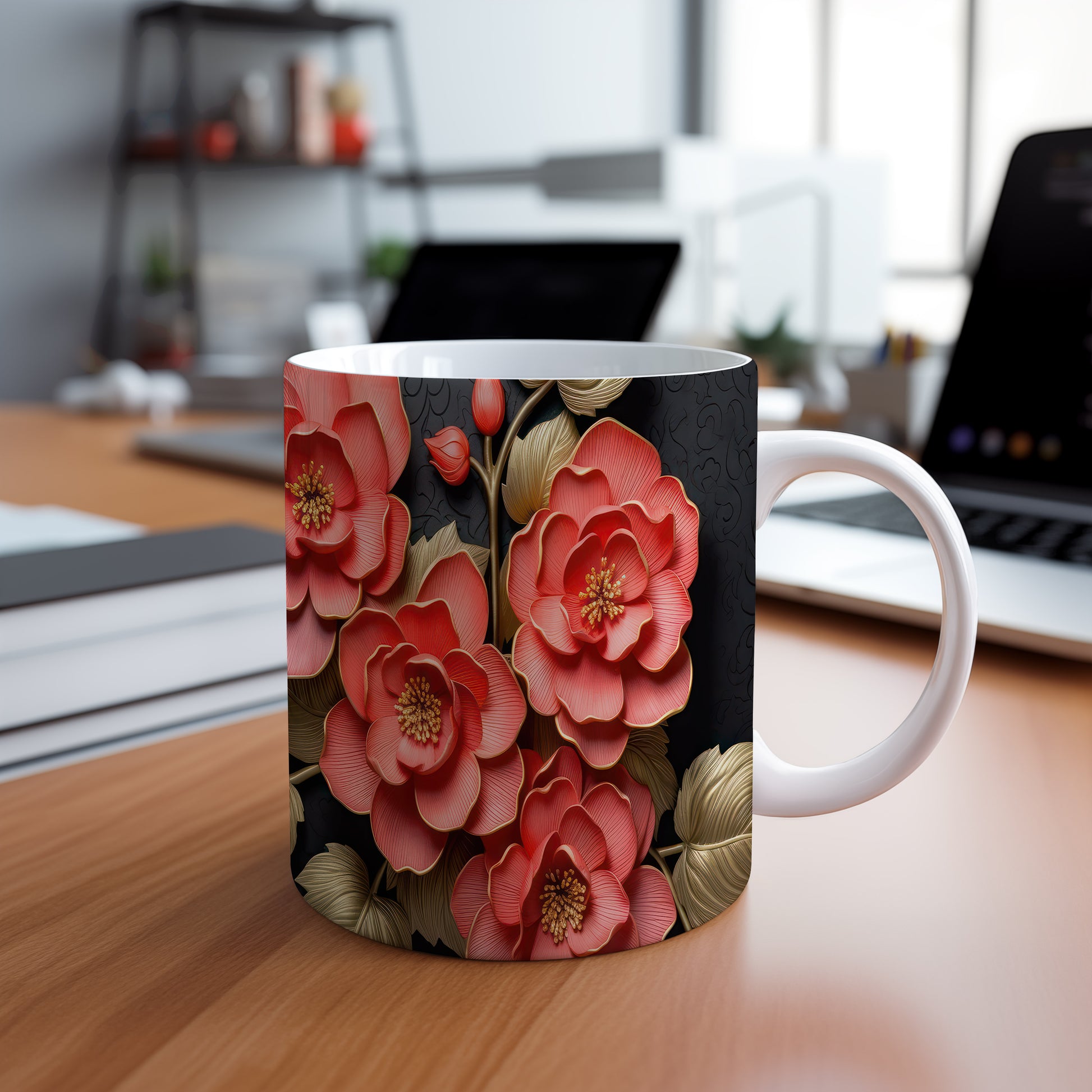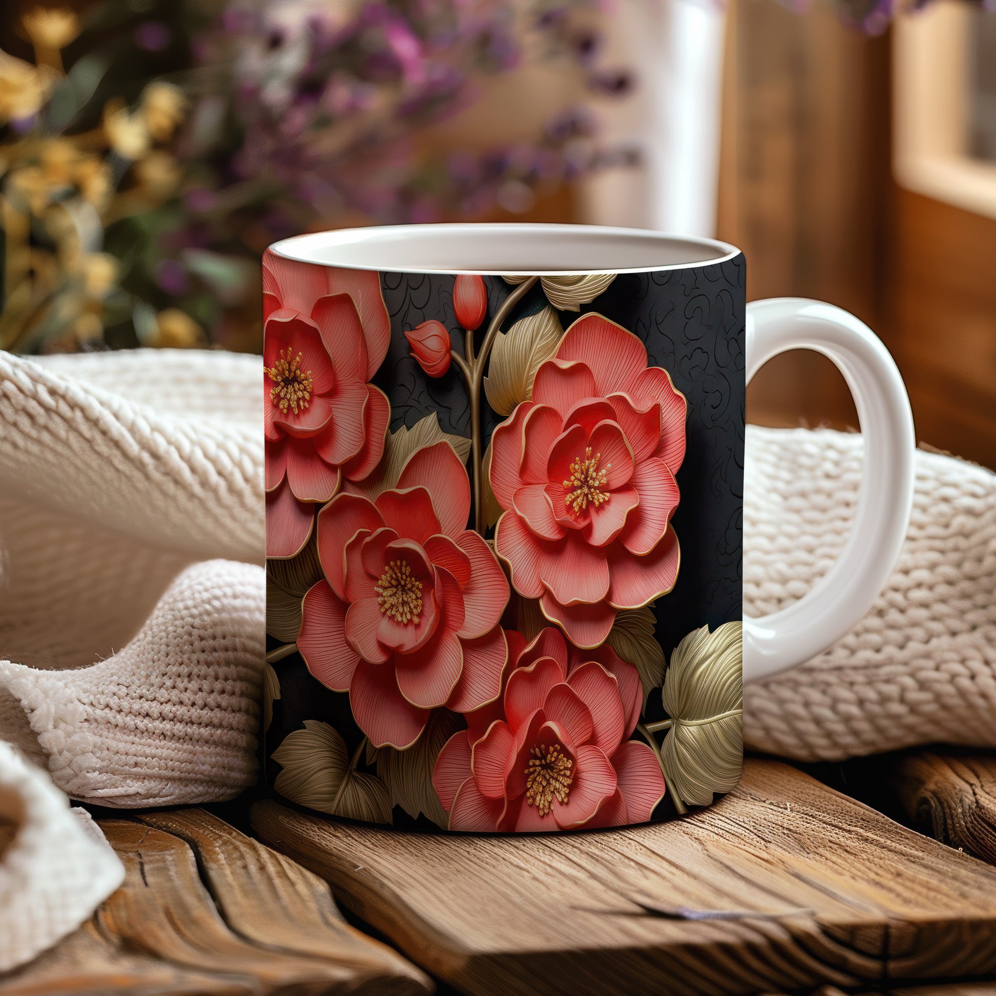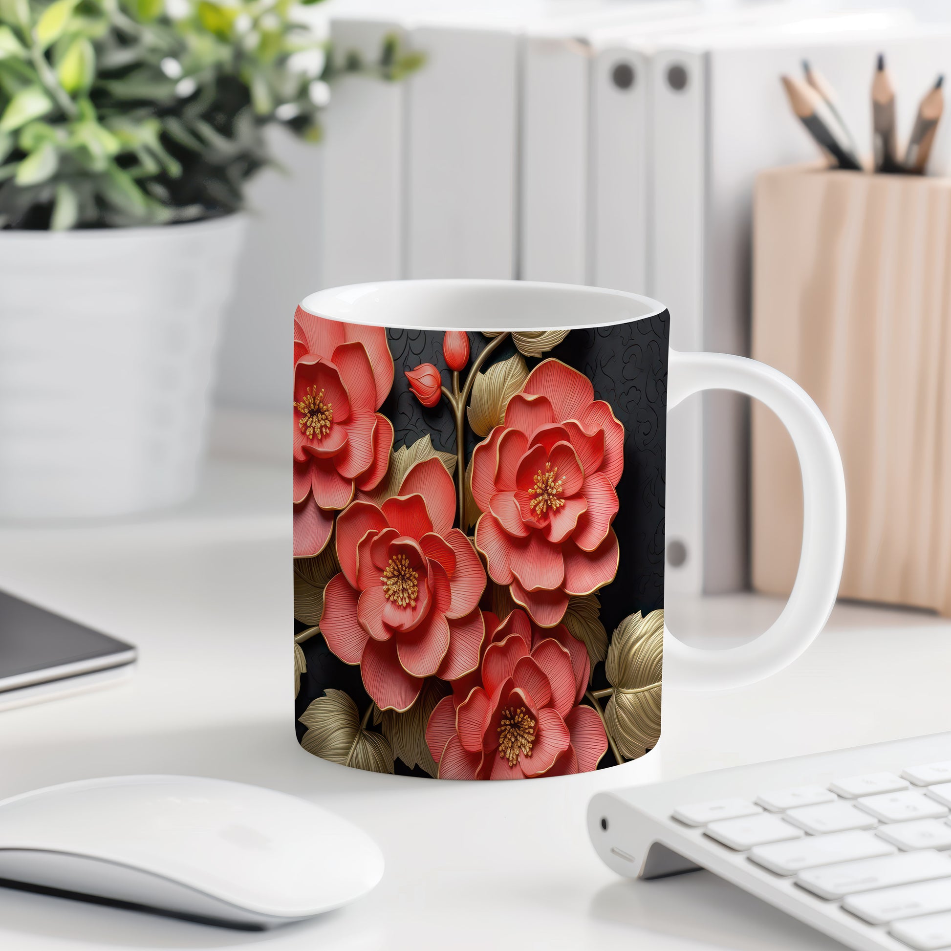 Hrnek s bohatým květinovým vzorem v odstínech červené a zlaté. Tento elegantní kousek je ideální pro milovníky přírody a květin, skvělý tip na dárek pro blízké. Materiál: keramika. Objem: 330 ml. Vhodné do myčky i mikrovlnky. Užijte si každodenní kávu nebo čaj s tímto stylovým hrnkem.