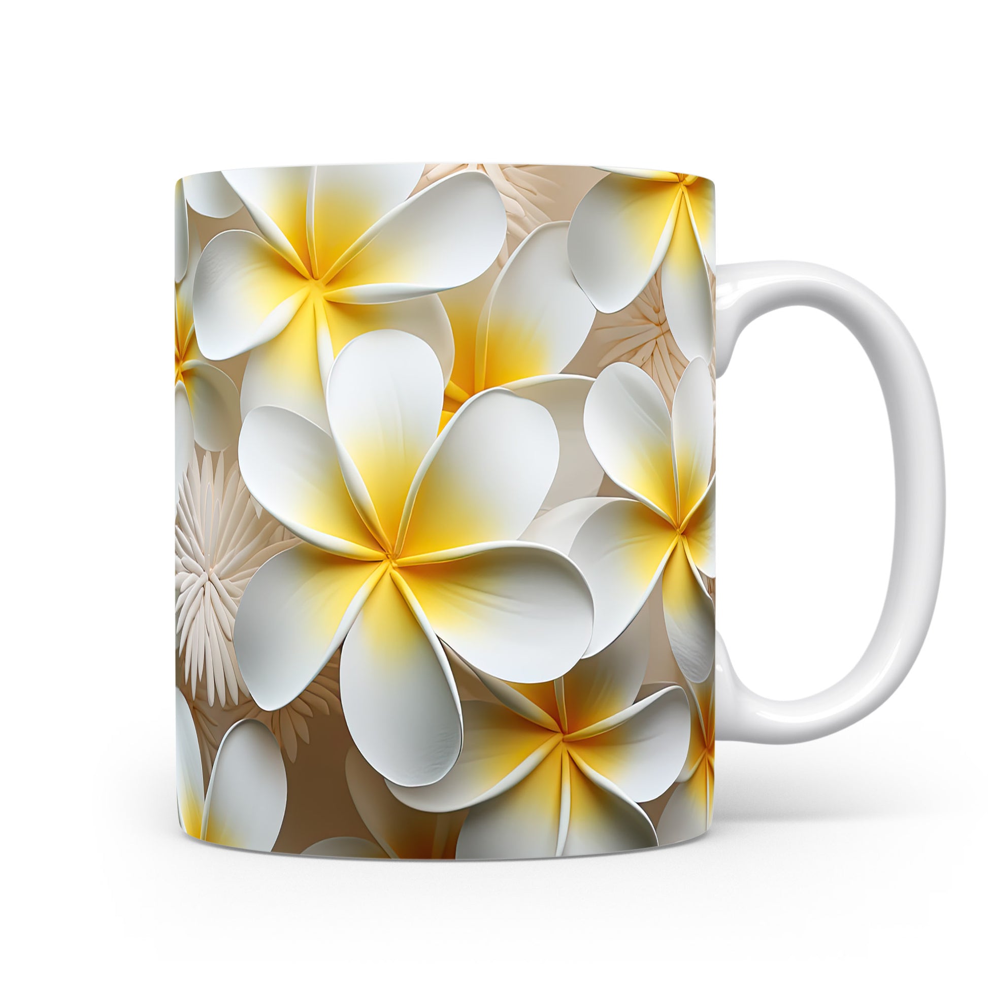 Hrnek s elegantním květinovým vzorem v hnědých tónech
