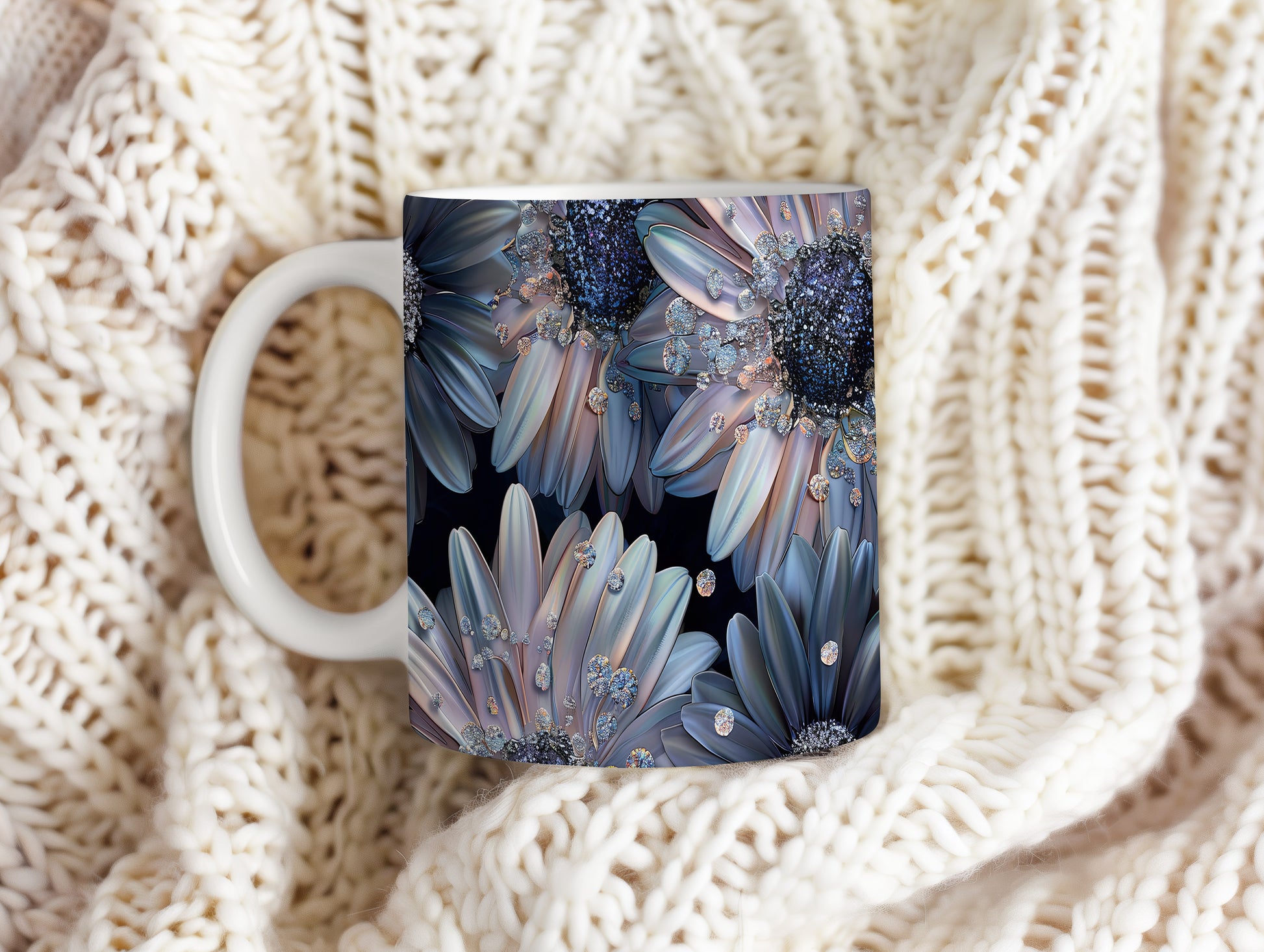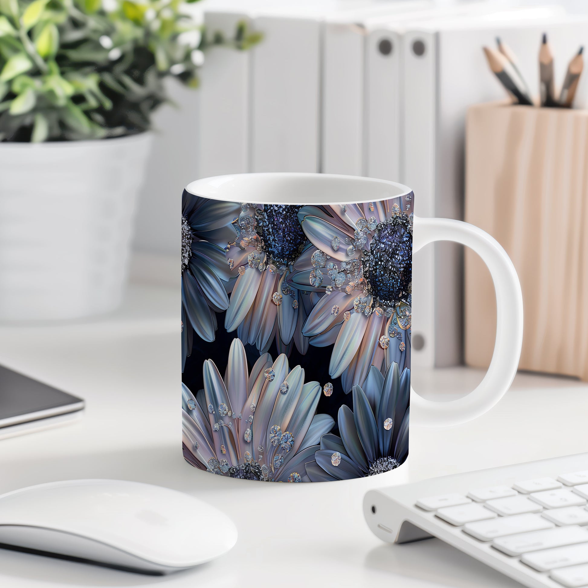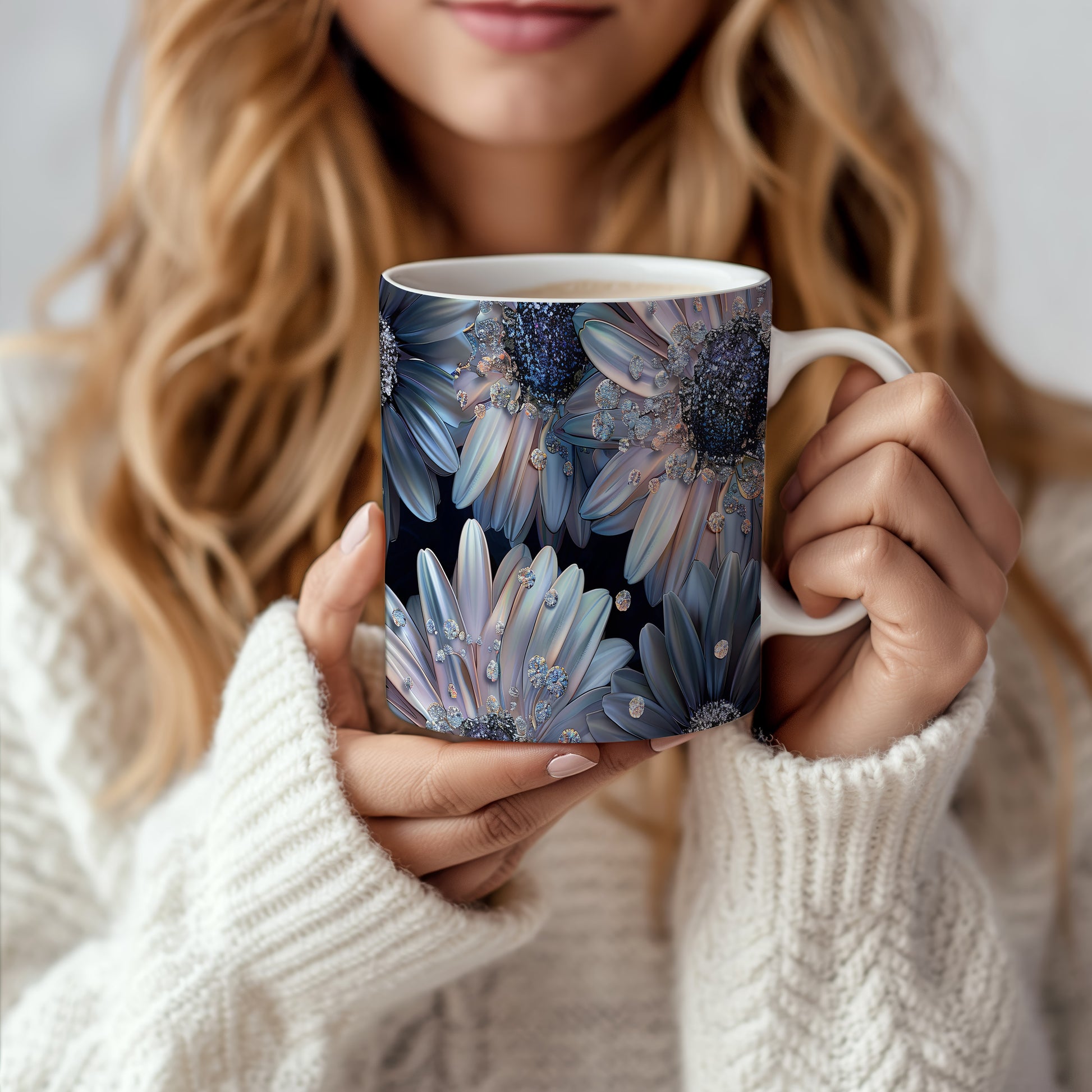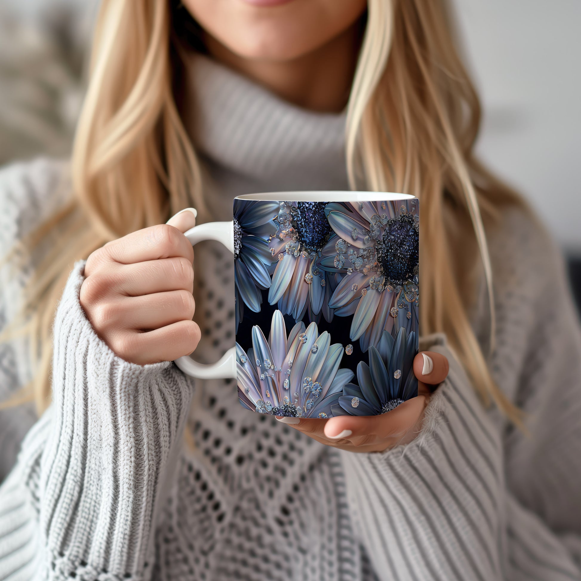 Hrnek s elegantním květinovým vzorem v modrých tónech
