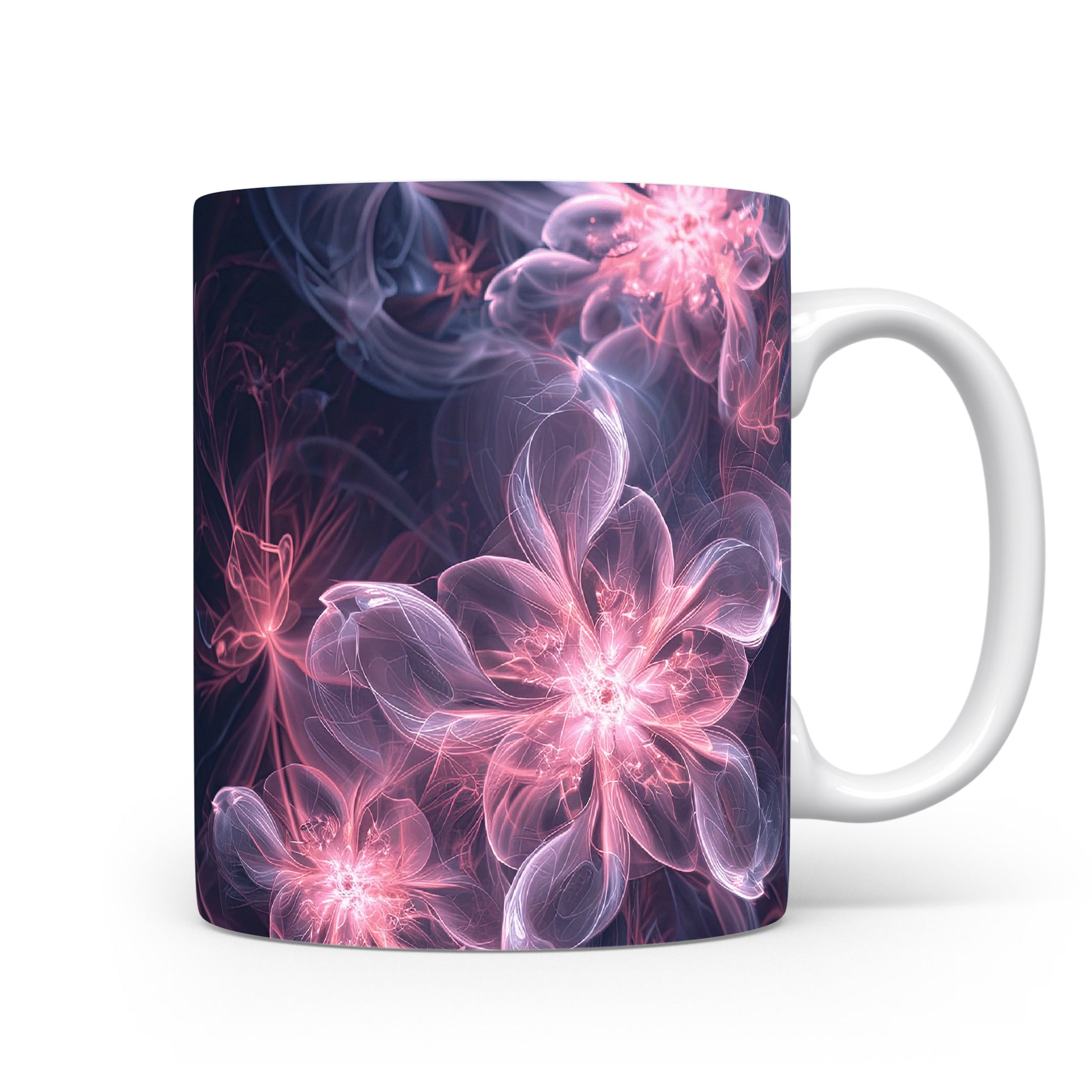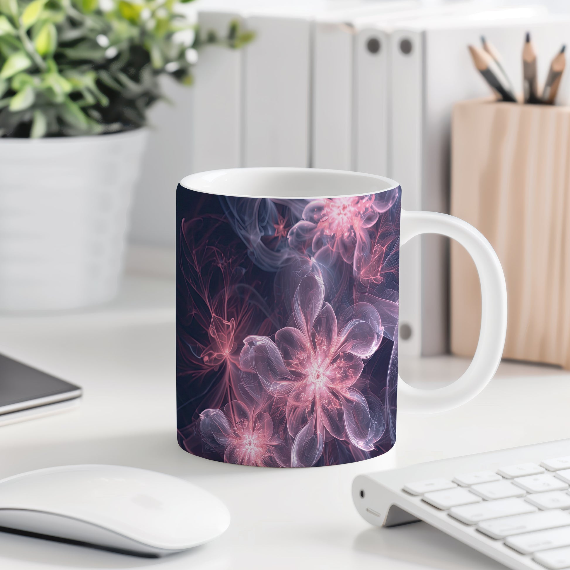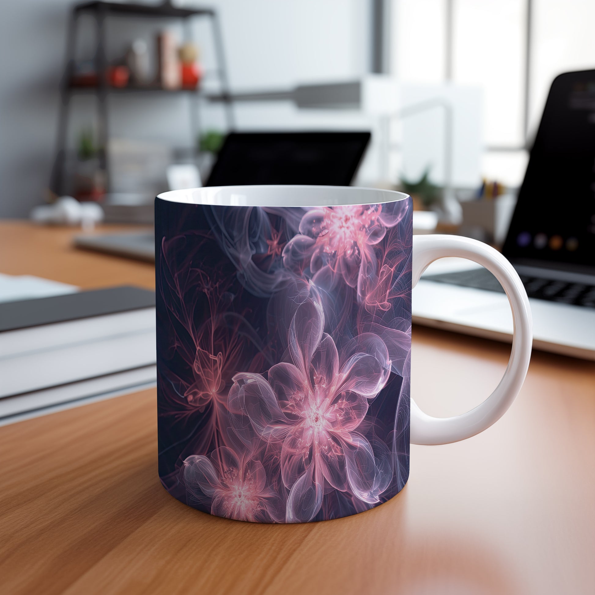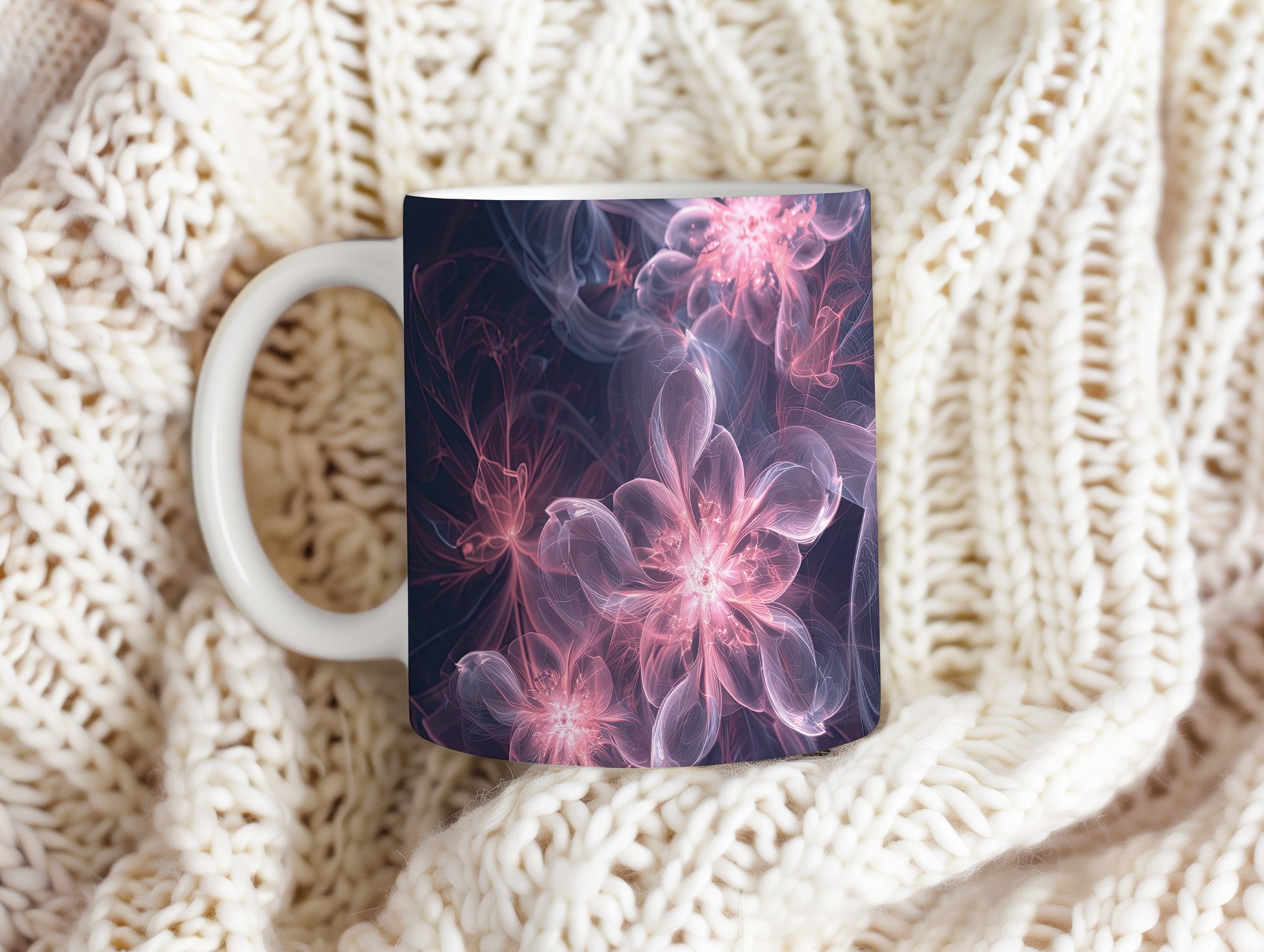 Hrnek s elegantním květinovým vzorem v růžových a fialových tónech