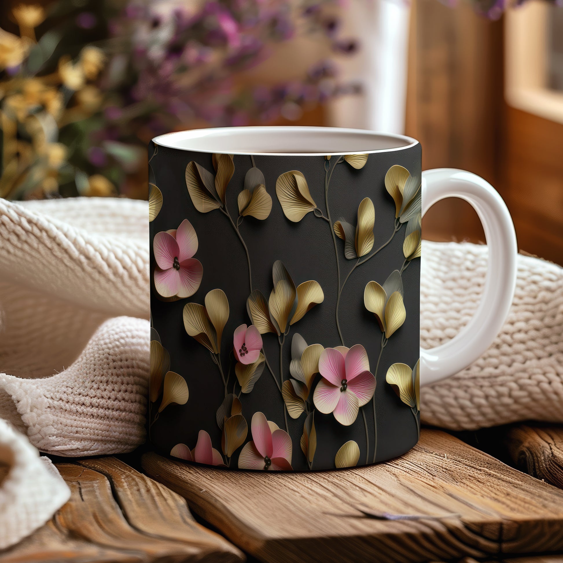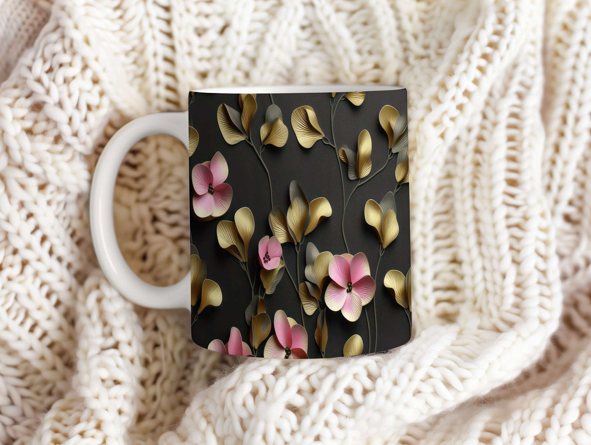 Hrnek s elegantním květinovým vzorem v růžových tónech