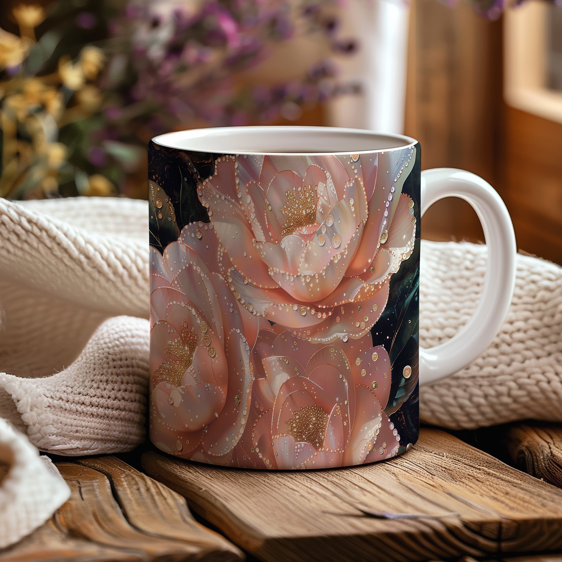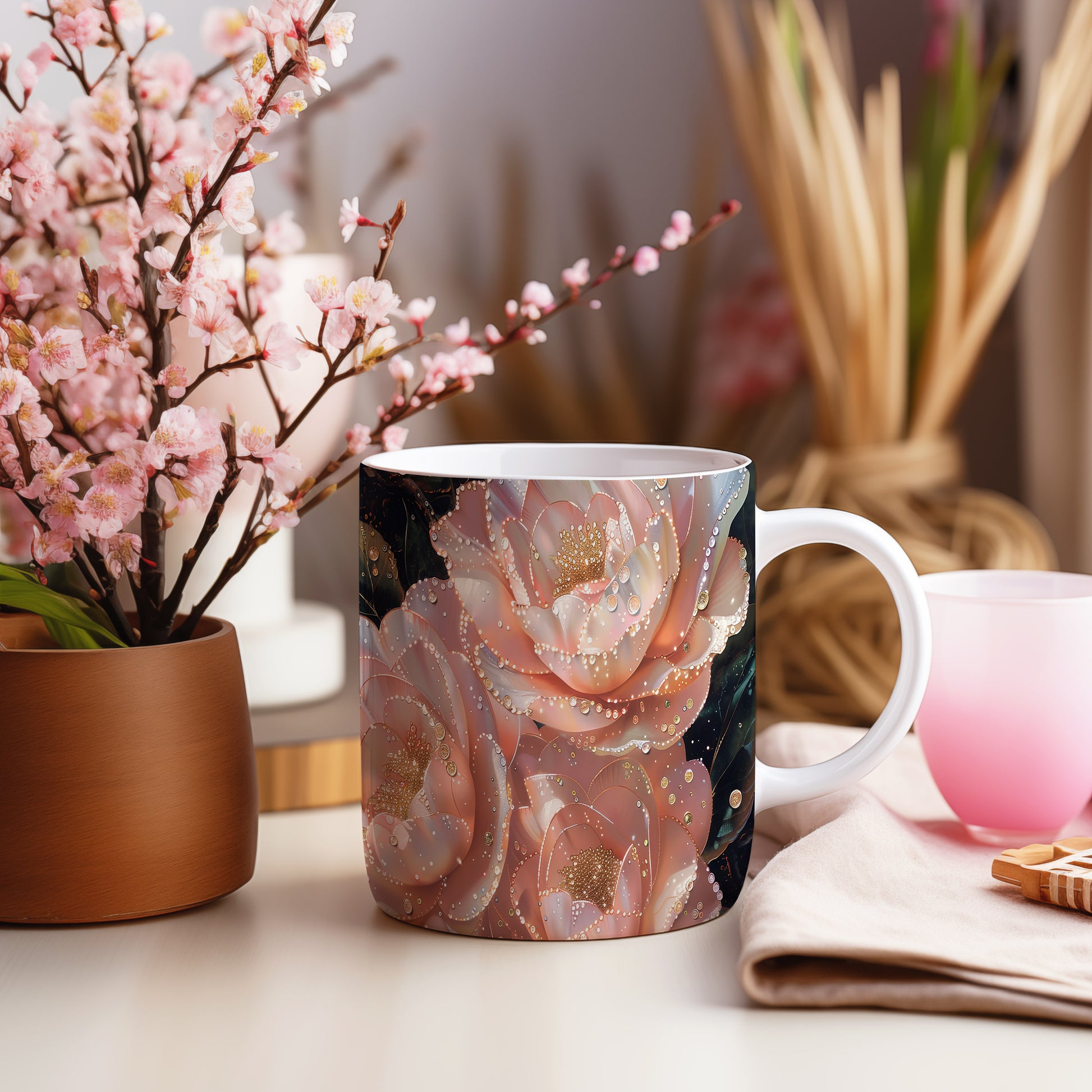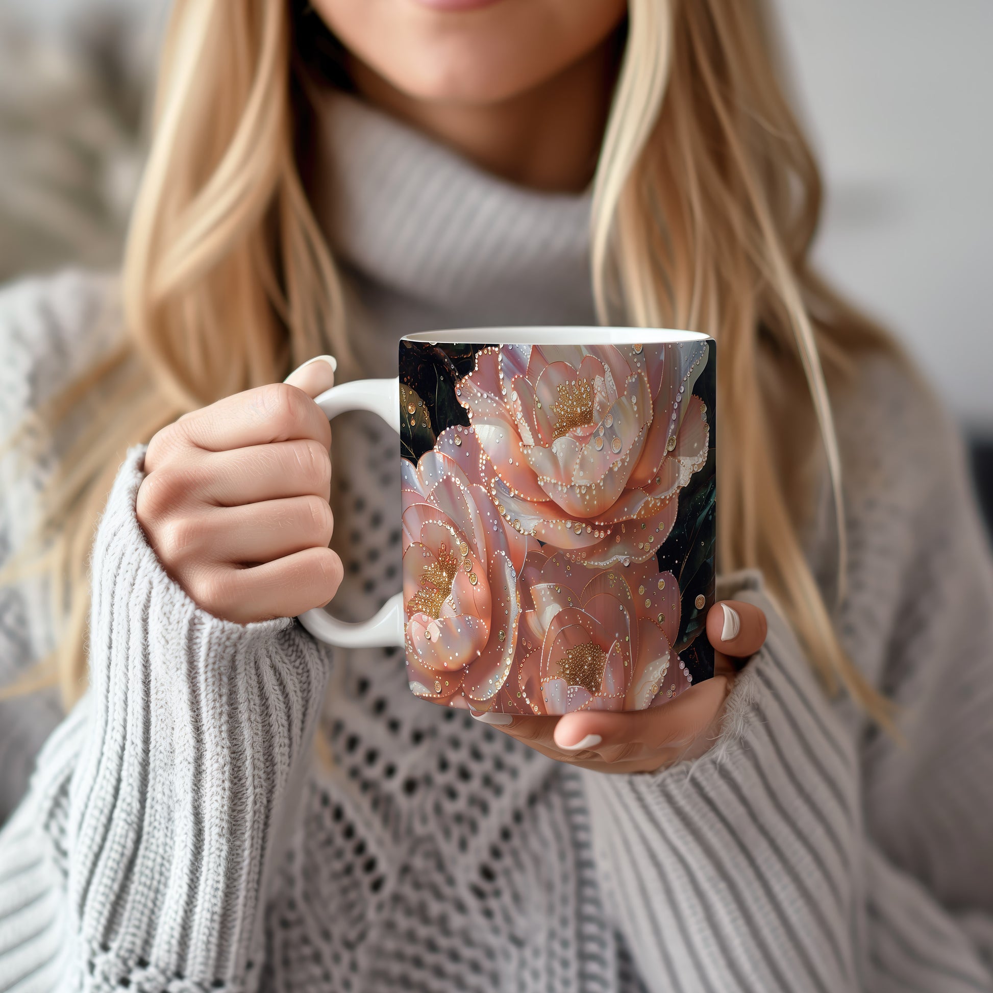 Hrnek s elegantním květinovým vzorem v růžových tónech – jemnými detaily