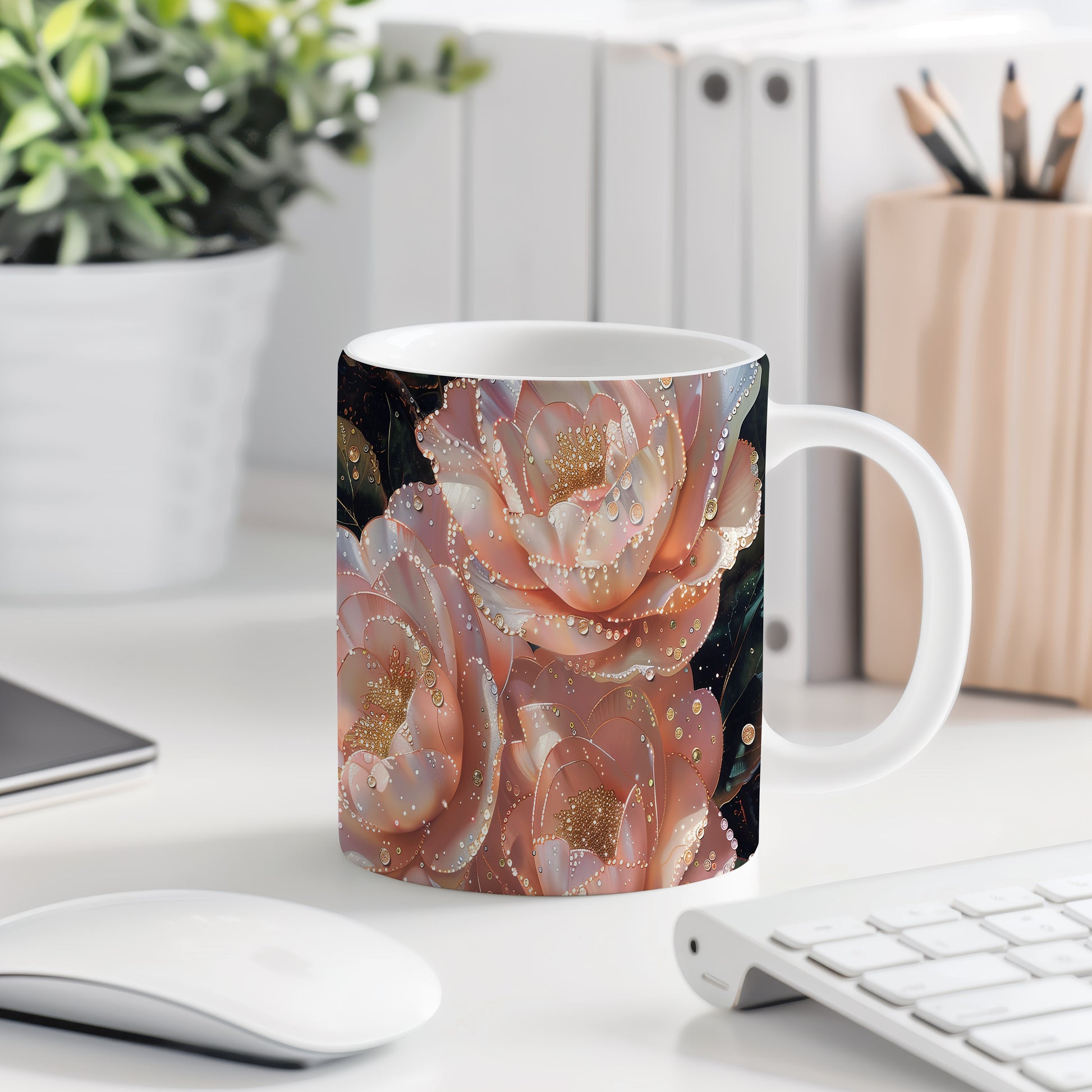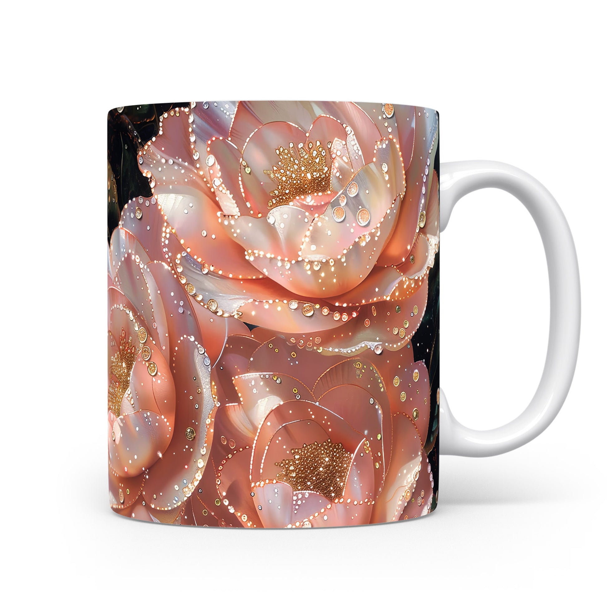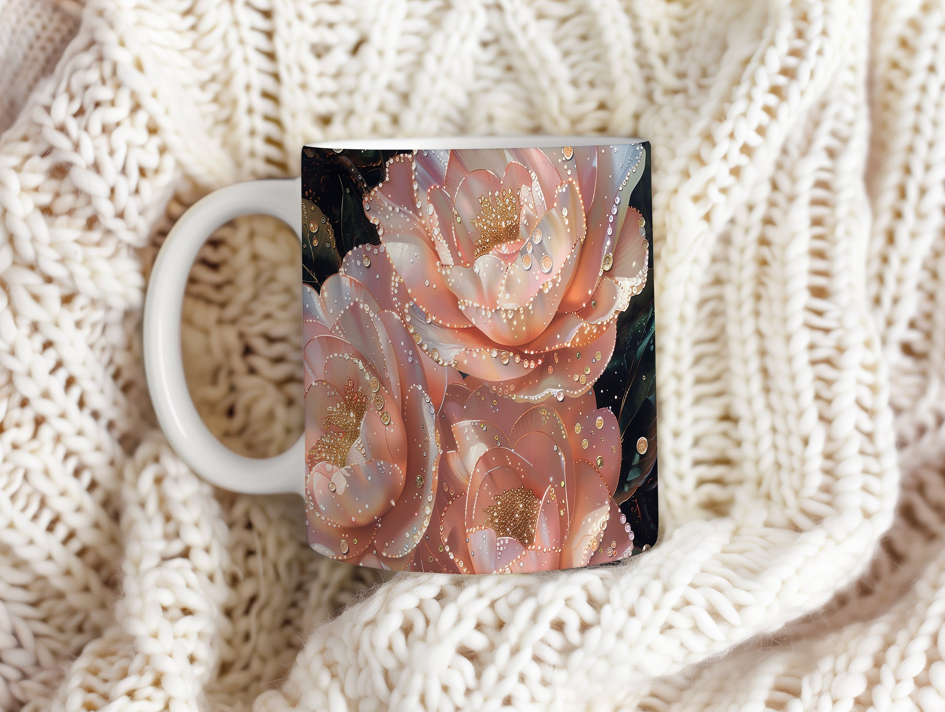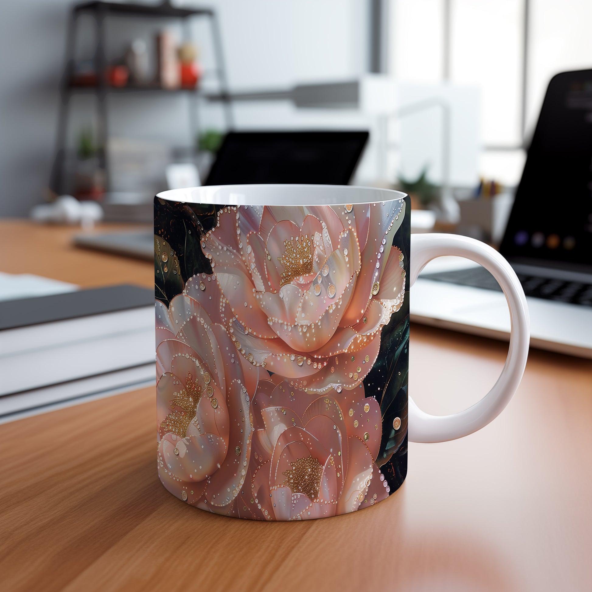 Hrnek s elegantním květinovým vzorem v růžových tónech – jemnými detaily