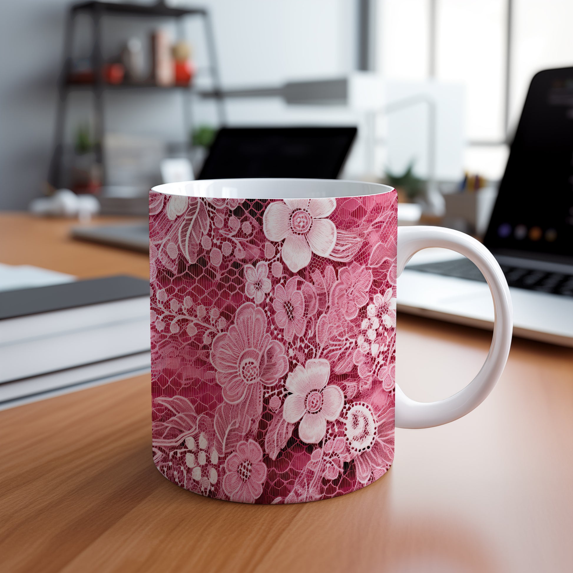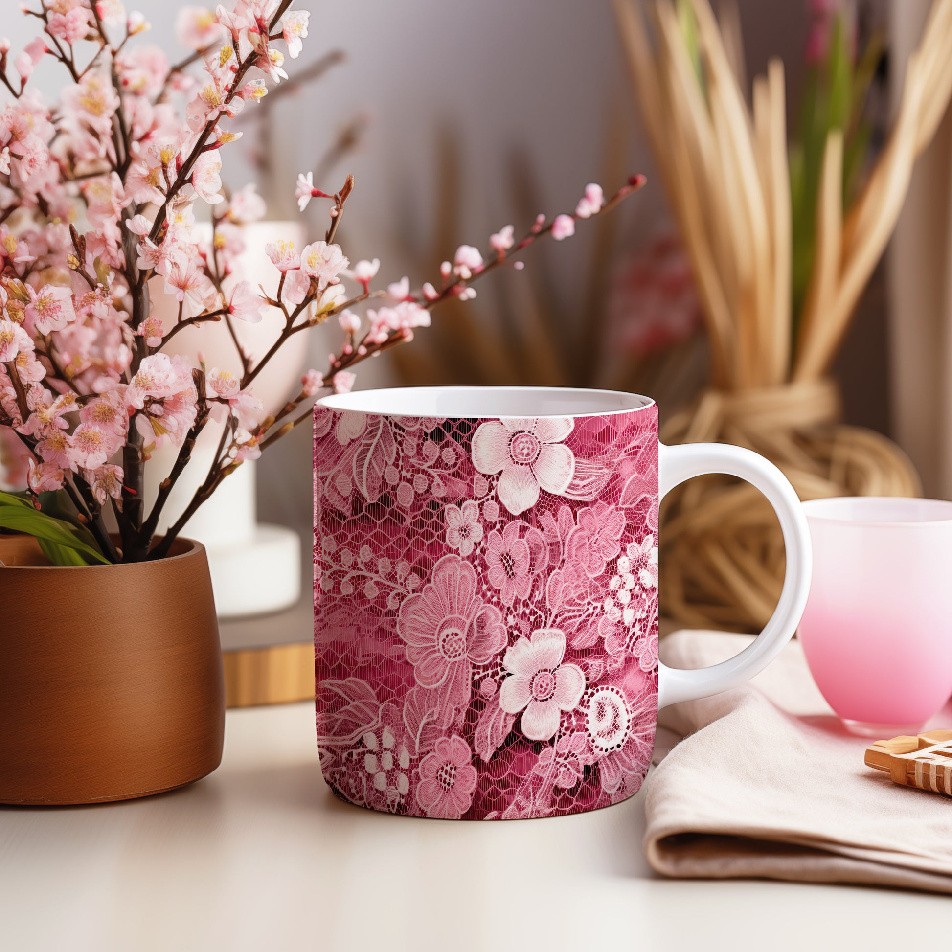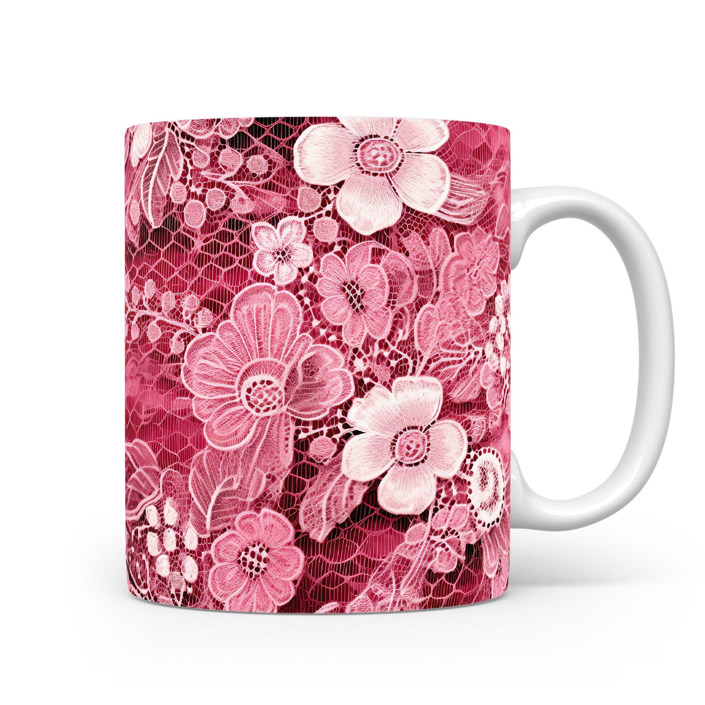 Hrnek s elegantním květinovým vzorem v růžových tónech – moderním stylem