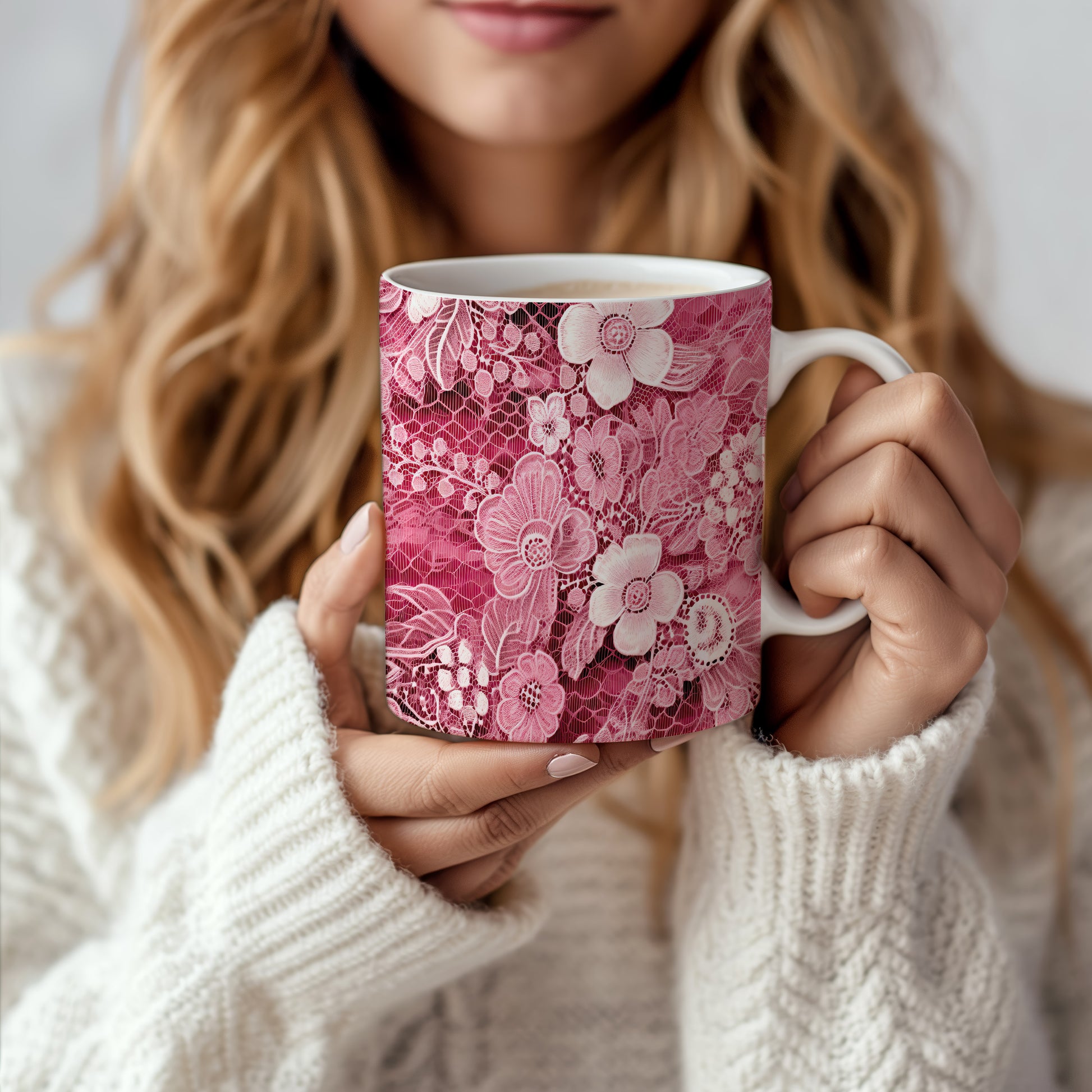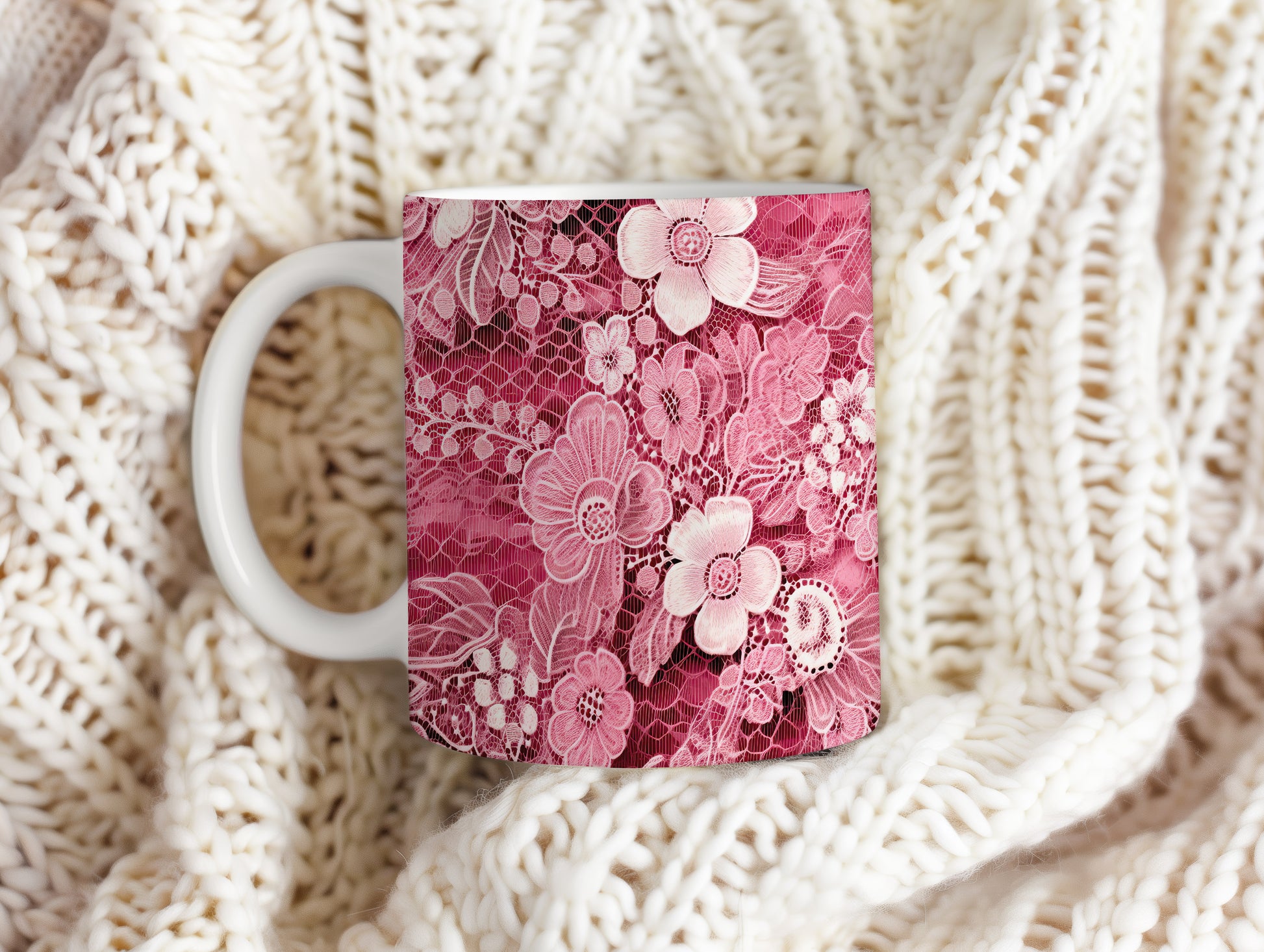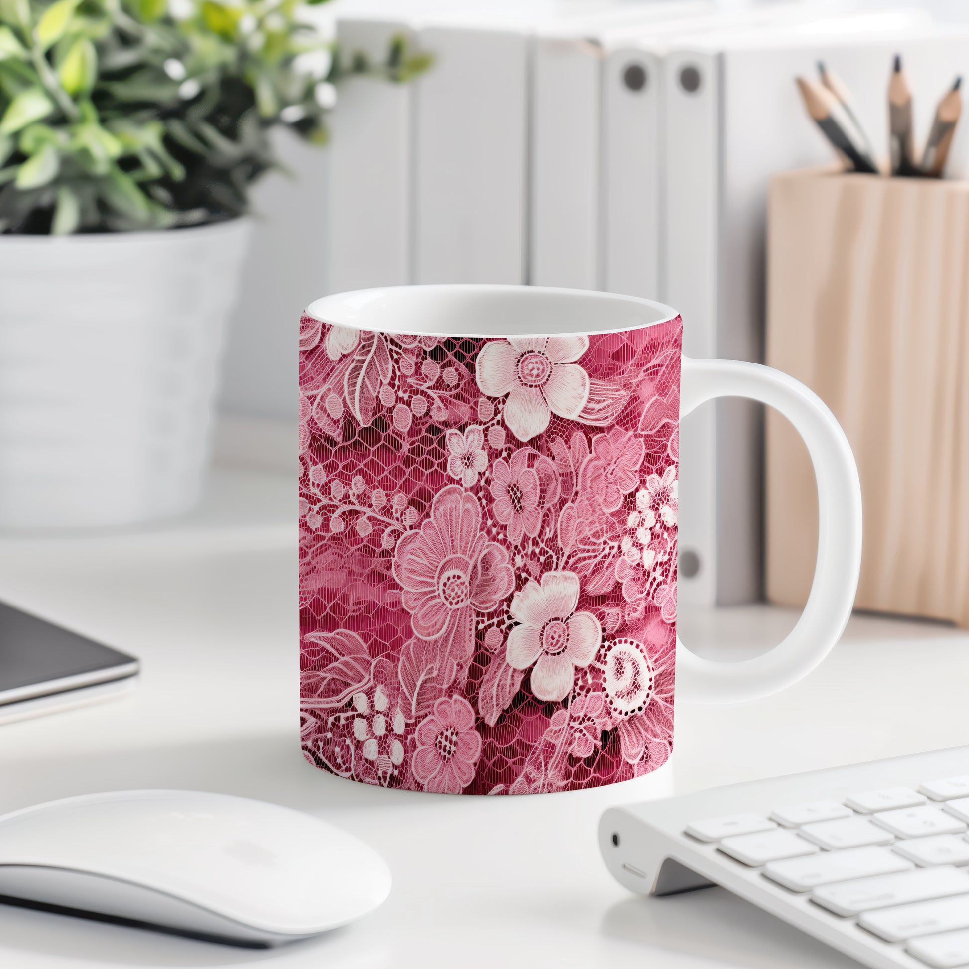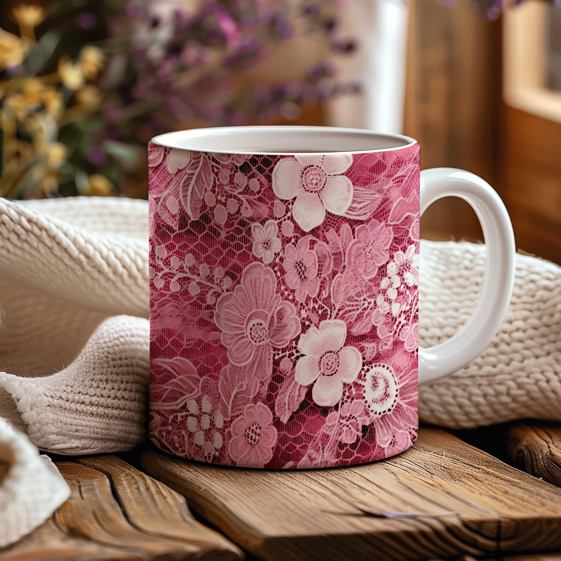 Hrnek s elegantním květinovým vzorem v růžových tónech – moderním stylem