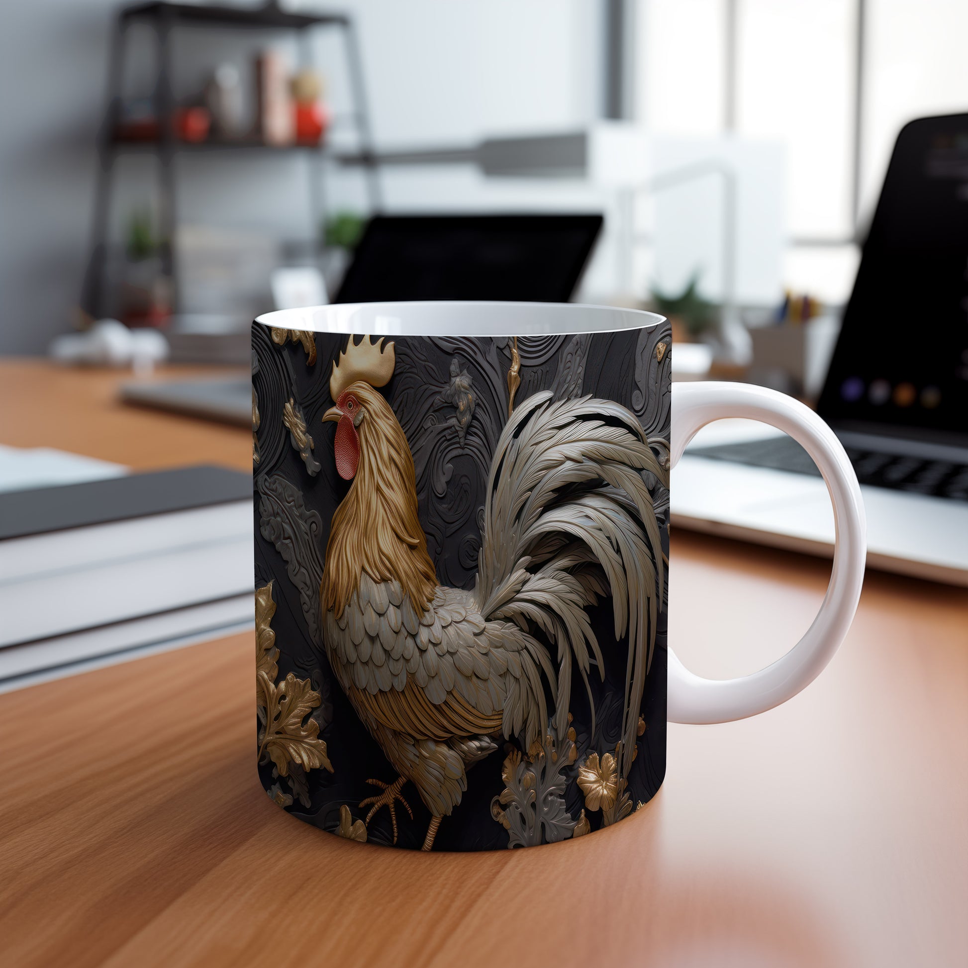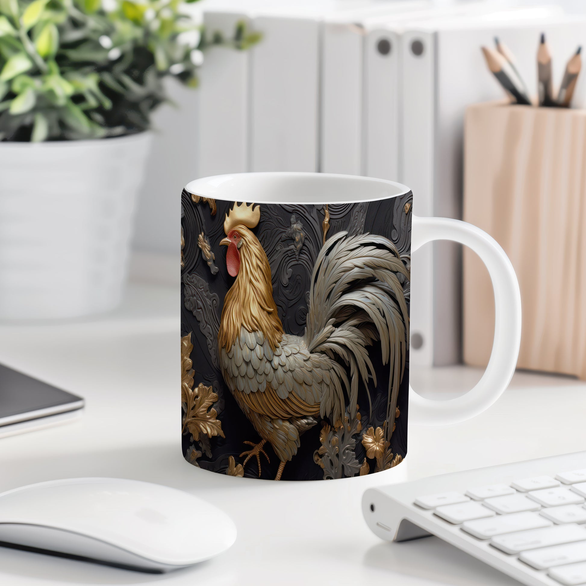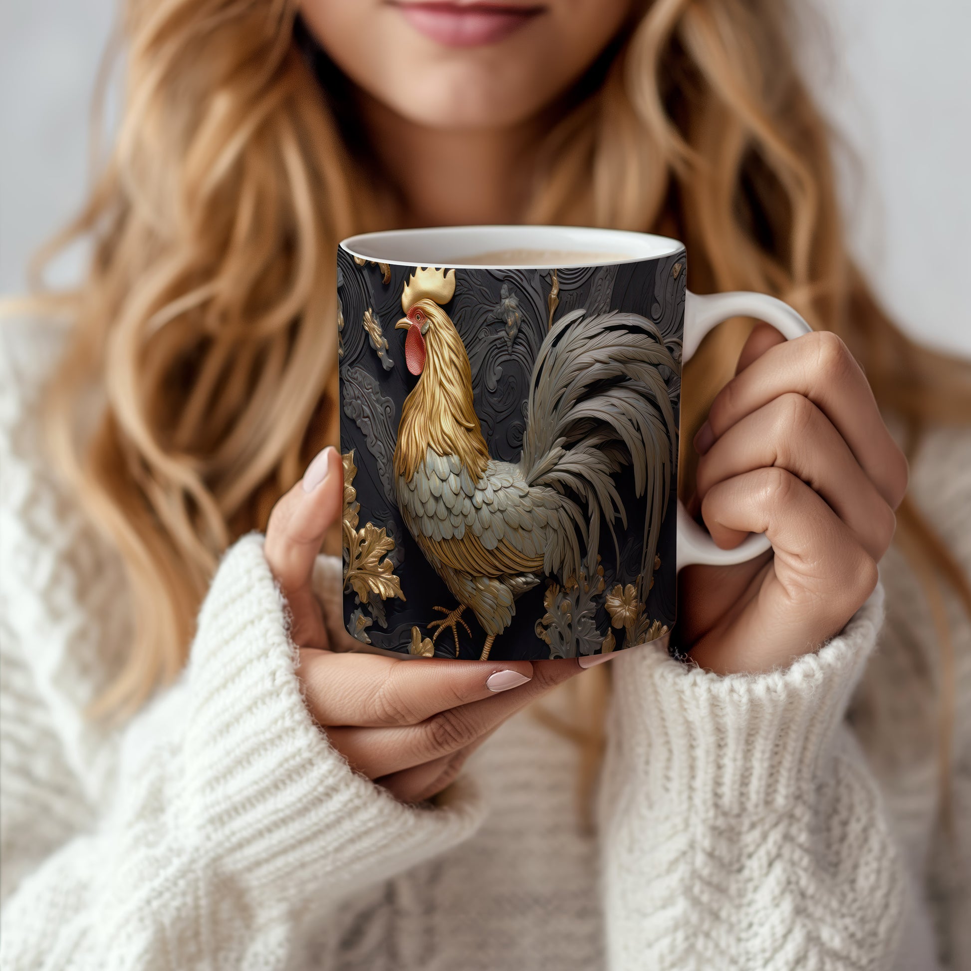 Hrnek s elegantním motivem kohouta – černým akcentem