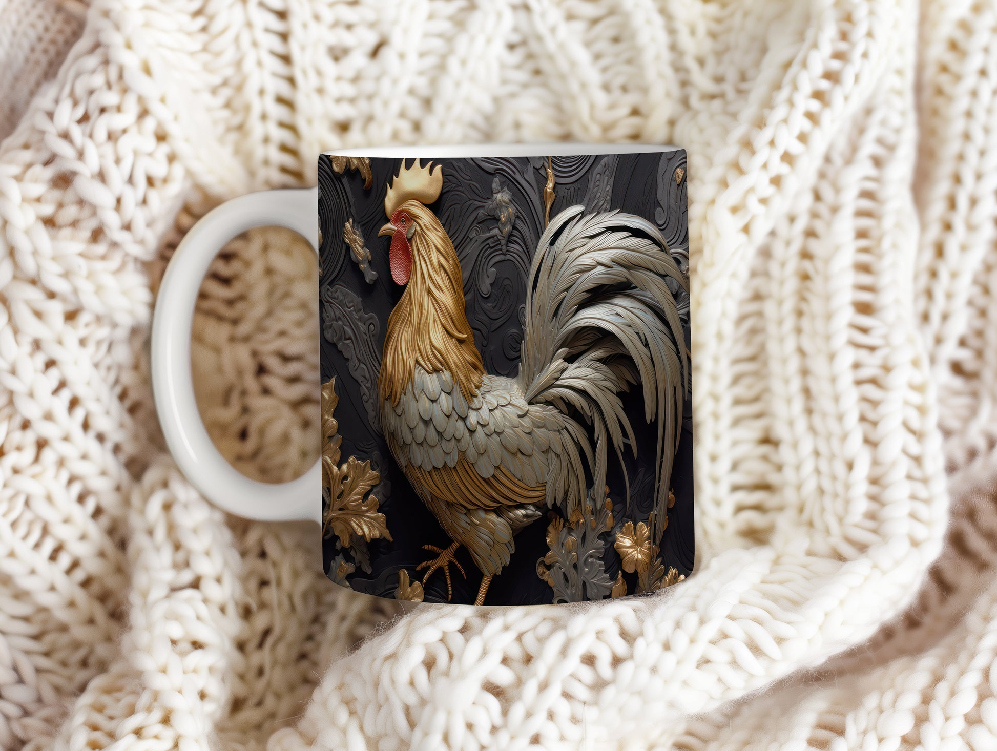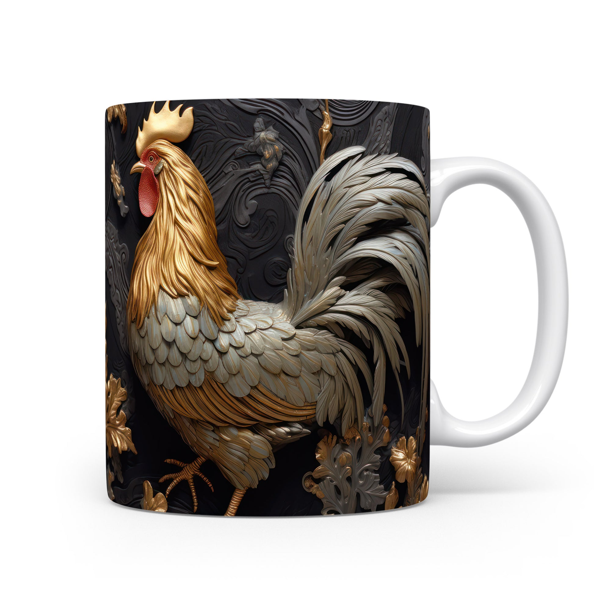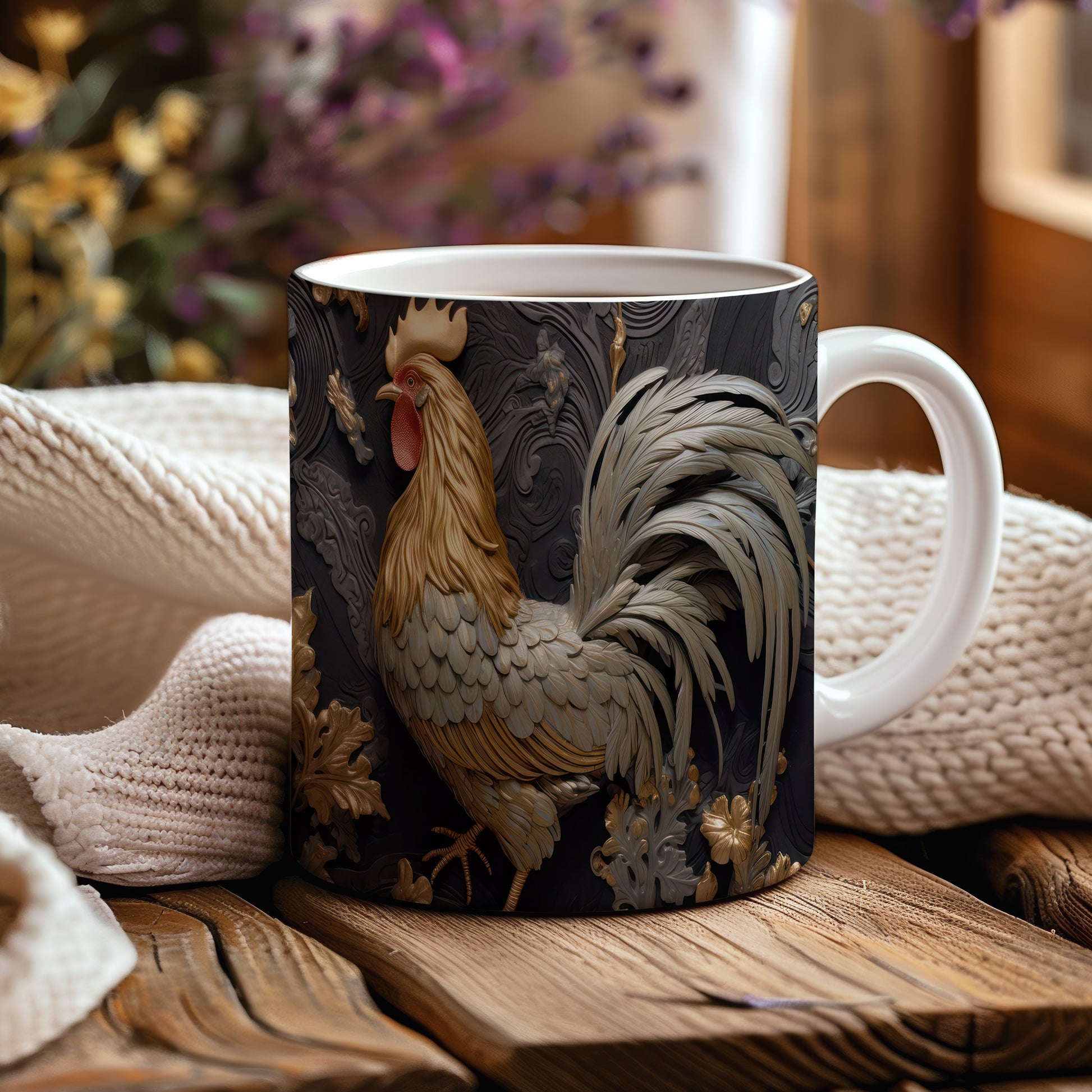 Hrnek s elegantním motivem kohouta – černým akcentem