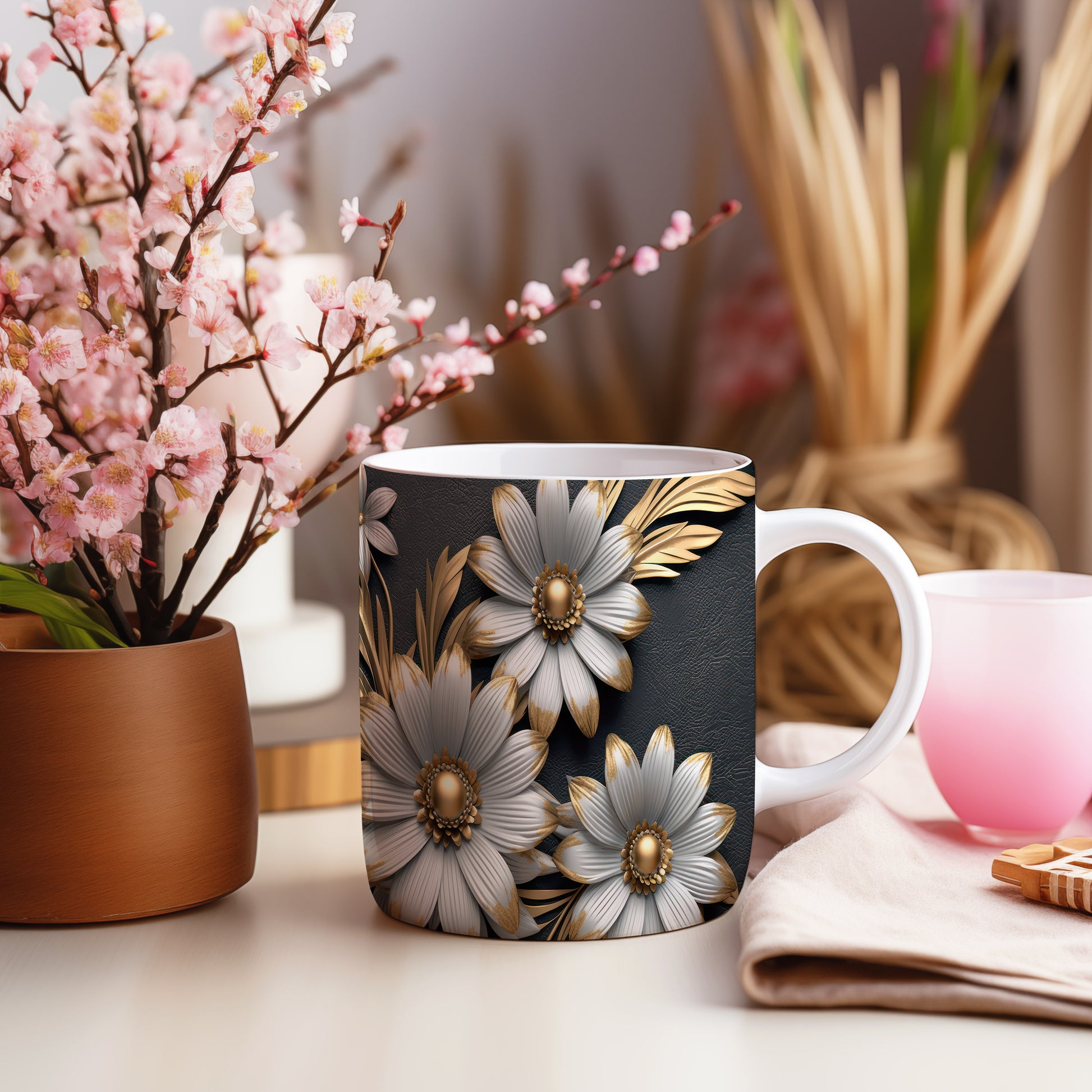Tento hrnek zdobí krásné květiny v elegantním stylu. Je ideální pro milovníky přírody a skvělým dárkem pro každou příležitost. Materiál: keramika. Objem: 330 ml. Vhodné do myčky i mikrovlnky. Díky svému designu přináší do každého dne nádech luxusu.