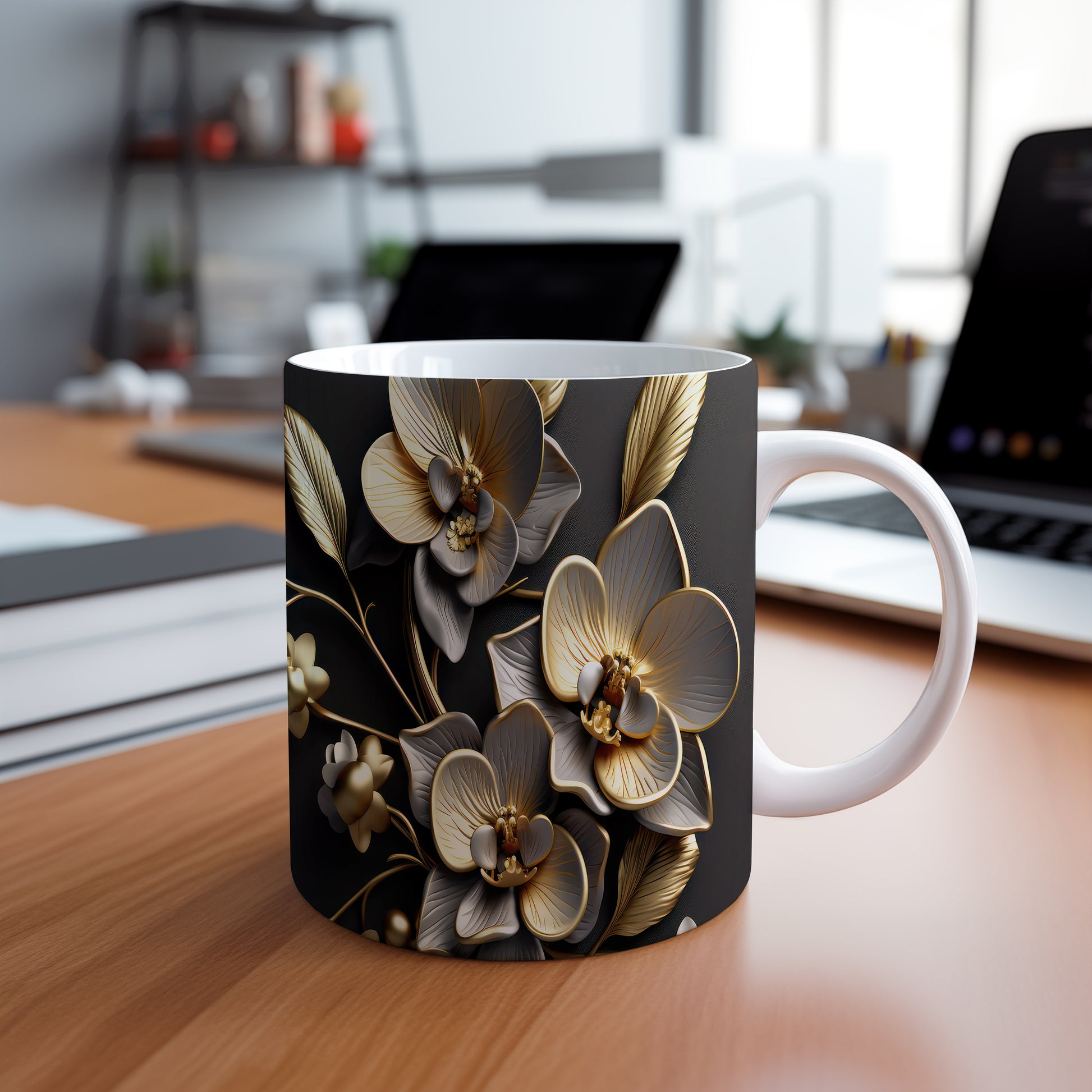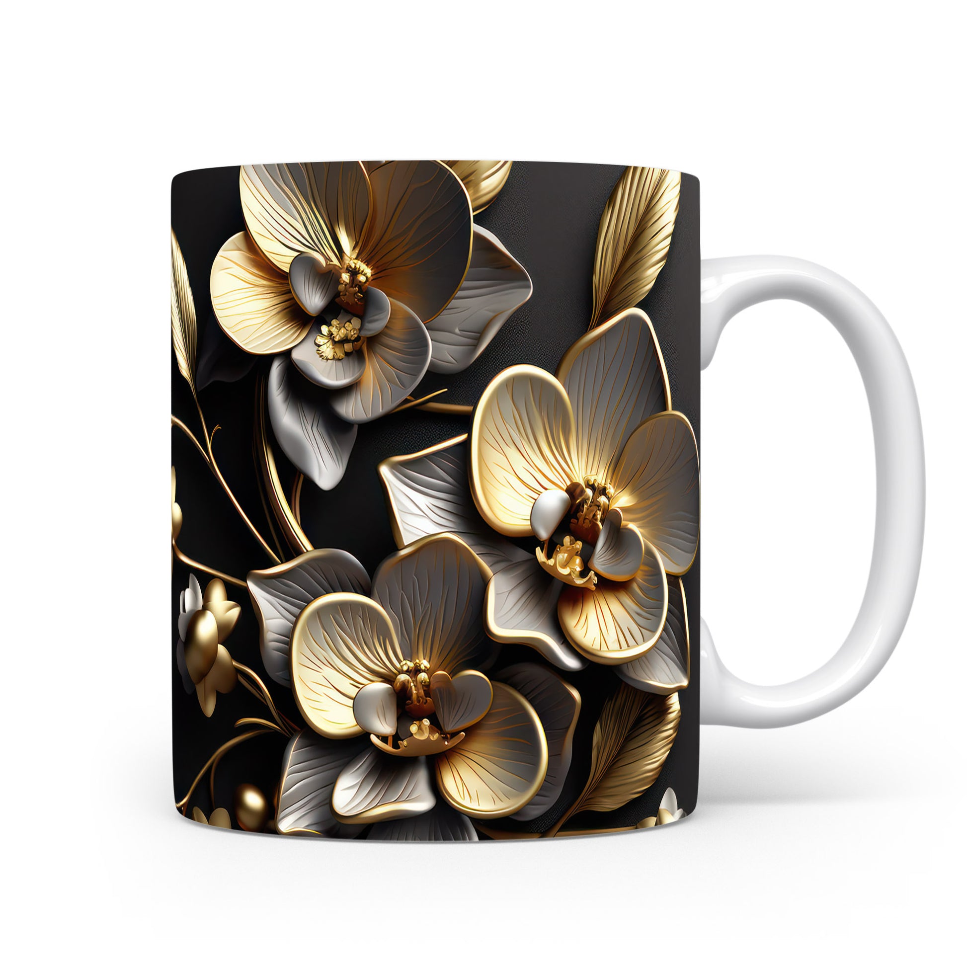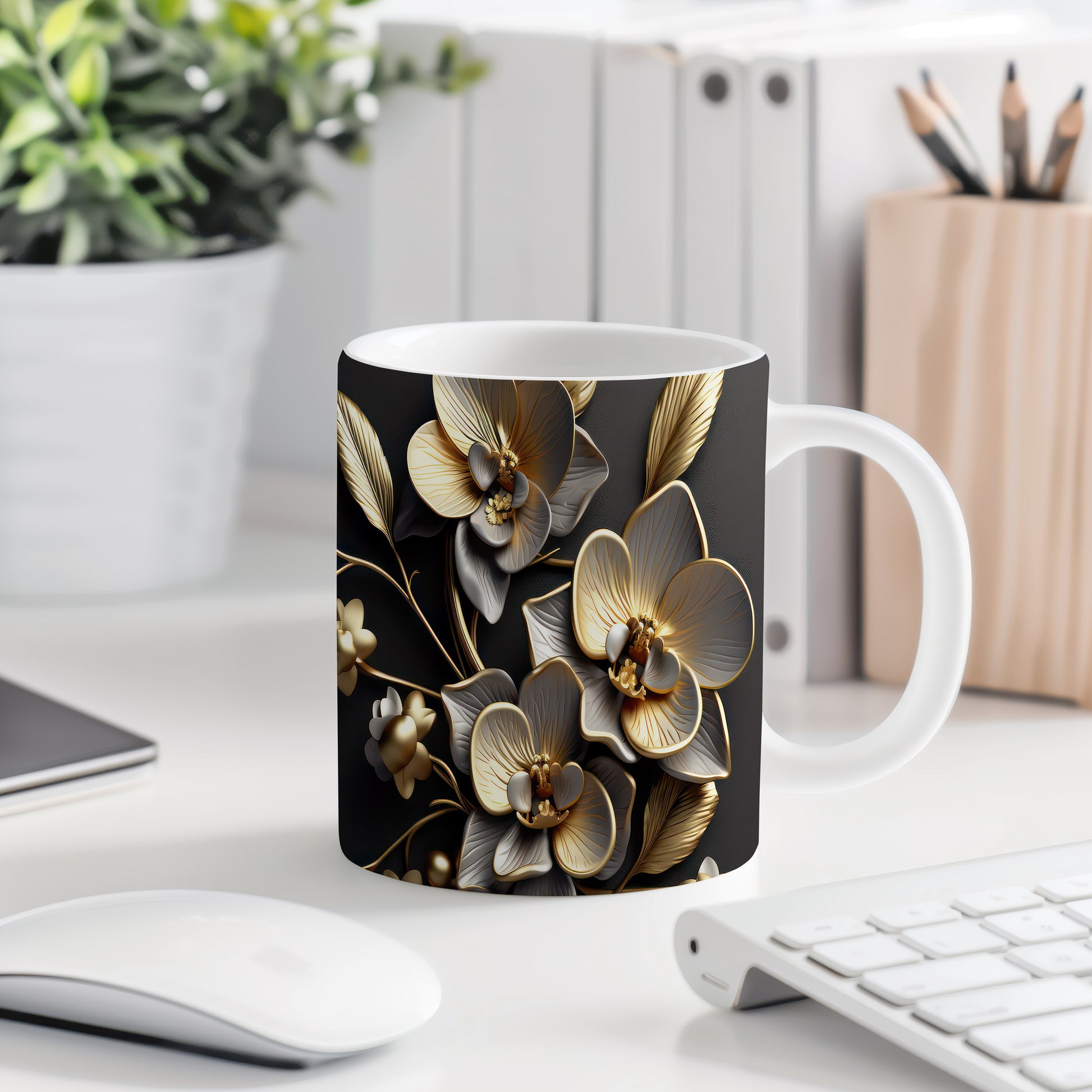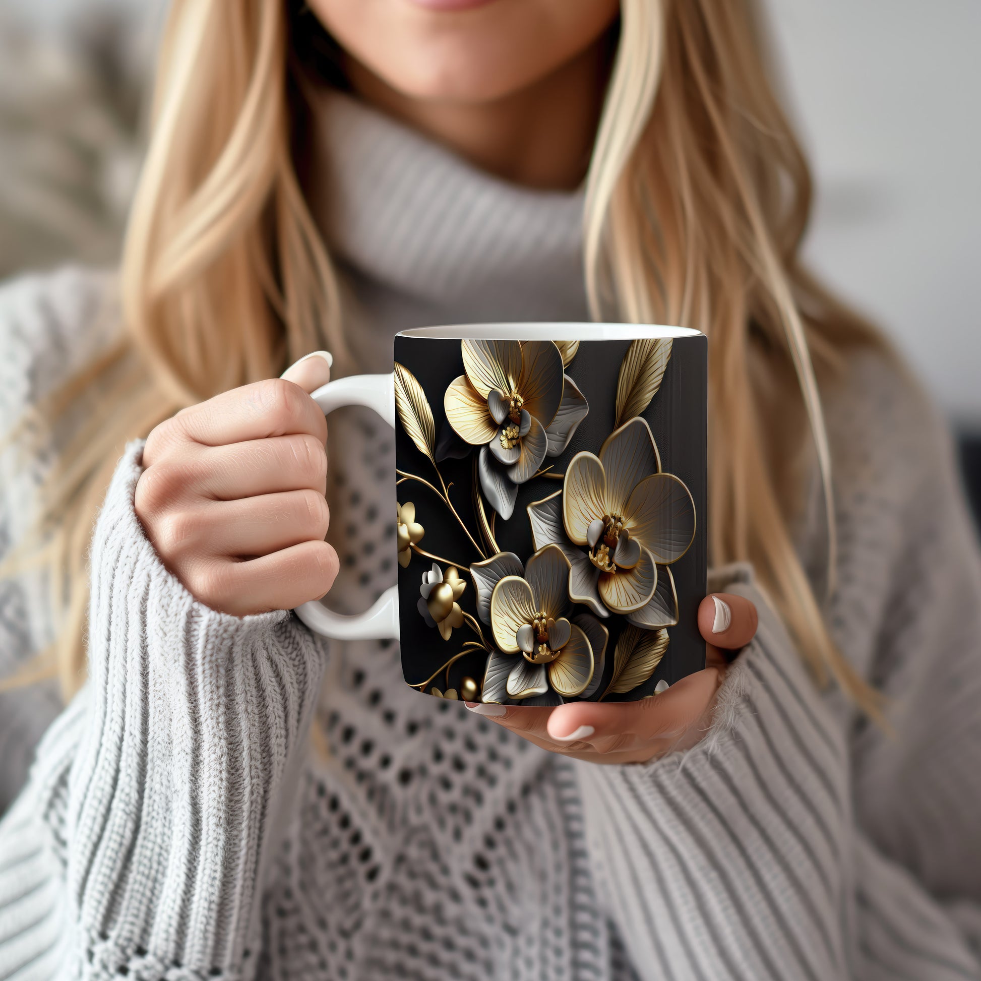 Tento keramický hrnek s motivem elegantních květin v zlaté a šedé barvě na černém pozadí je skvělým doplňkem pro každého milovníka stylového nádobí. Ideální jako dárek pro přátele nebo rodinu, kteří ocení krásu a eleganci. Materiál: keramika. Objem: 330 ml. Vhodné do myčky i mikrovlnky. Užívejte si svůj oblíbený nápoj s nádechem luxusu.