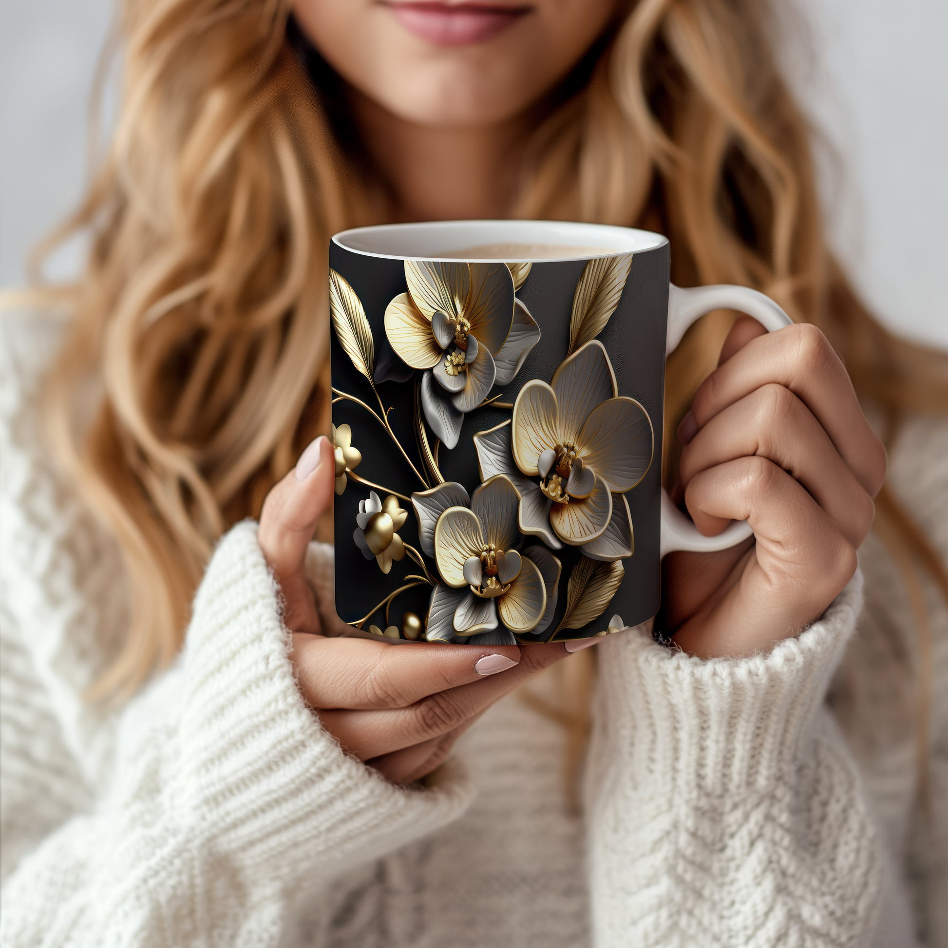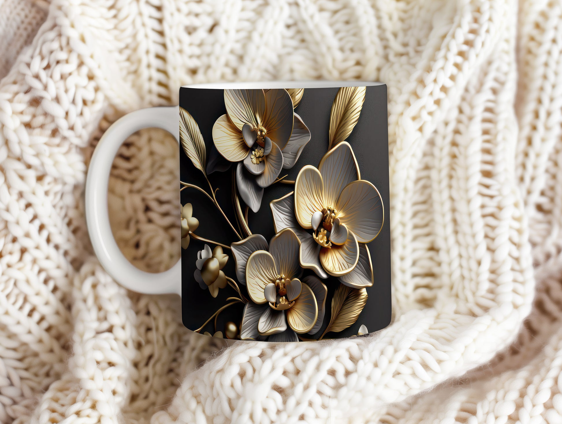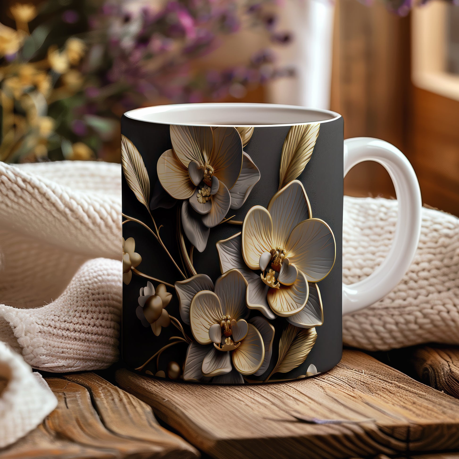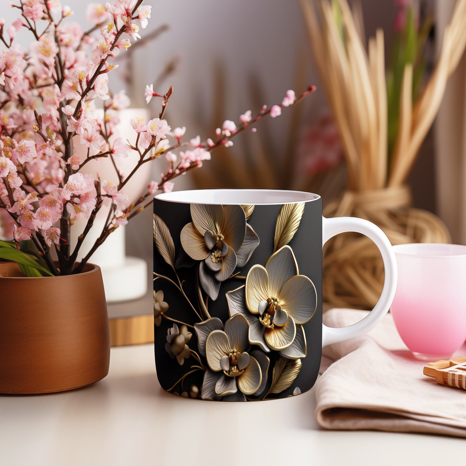 Tento keramický hrnek s motivem elegantních květin v zlaté a šedé barvě na černém pozadí je skvělým doplňkem pro každého milovníka stylového nádobí. Ideální jako dárek pro přátele nebo rodinu, kteří ocení krásu a eleganci. Materiál: keramika. Objem: 330 ml. Vhodné do myčky i mikrovlnky. Užívejte si svůj oblíbený nápoj s nádechem luxusu.