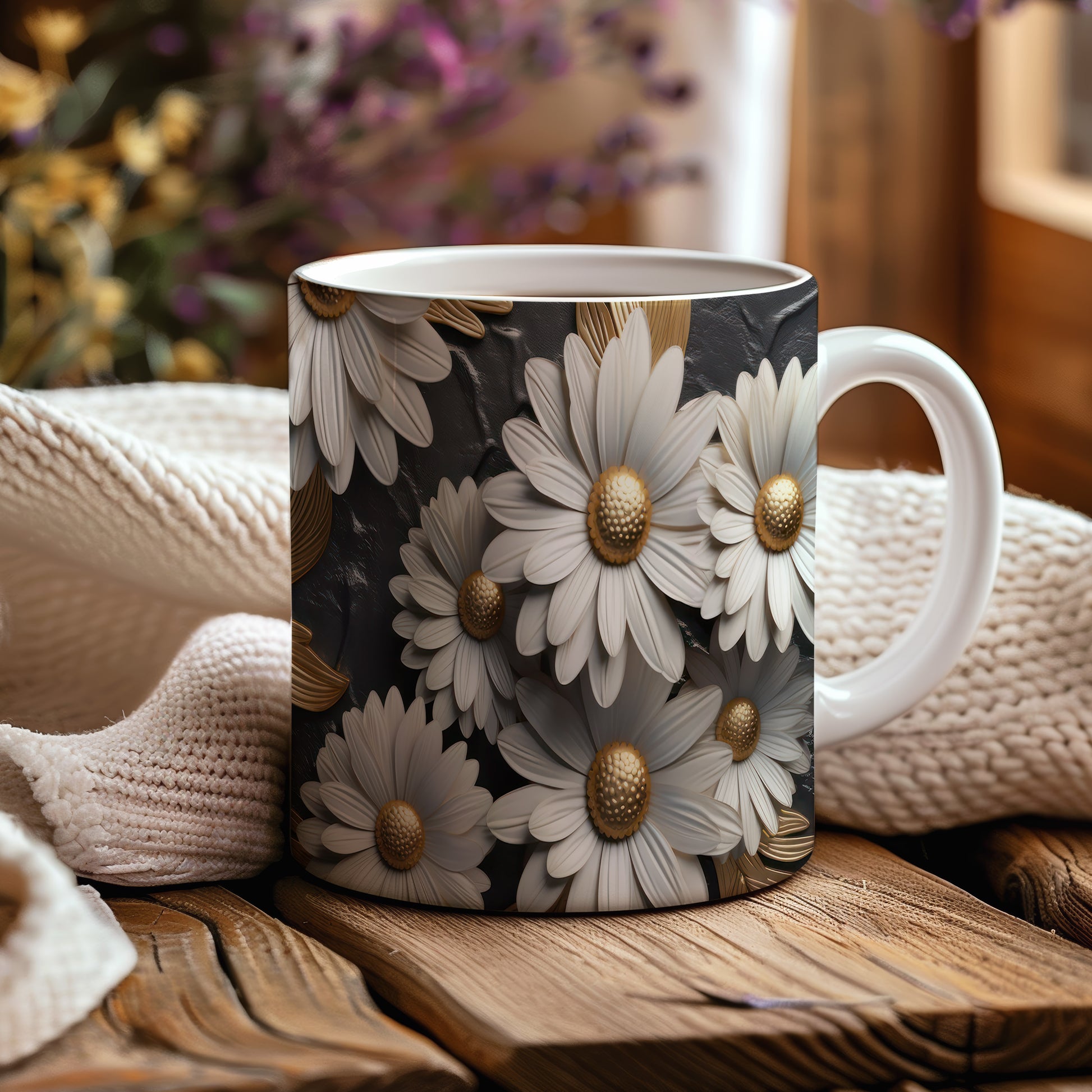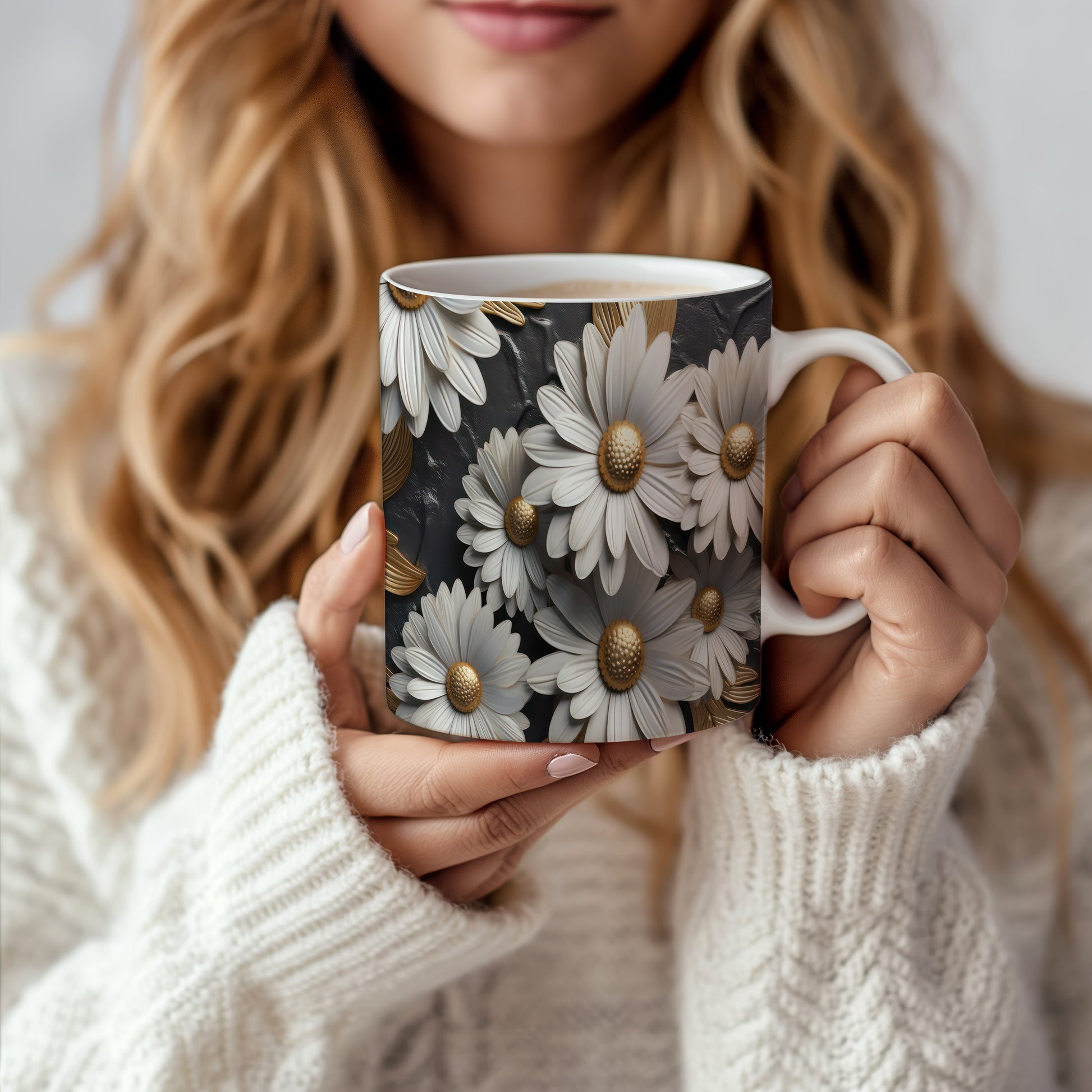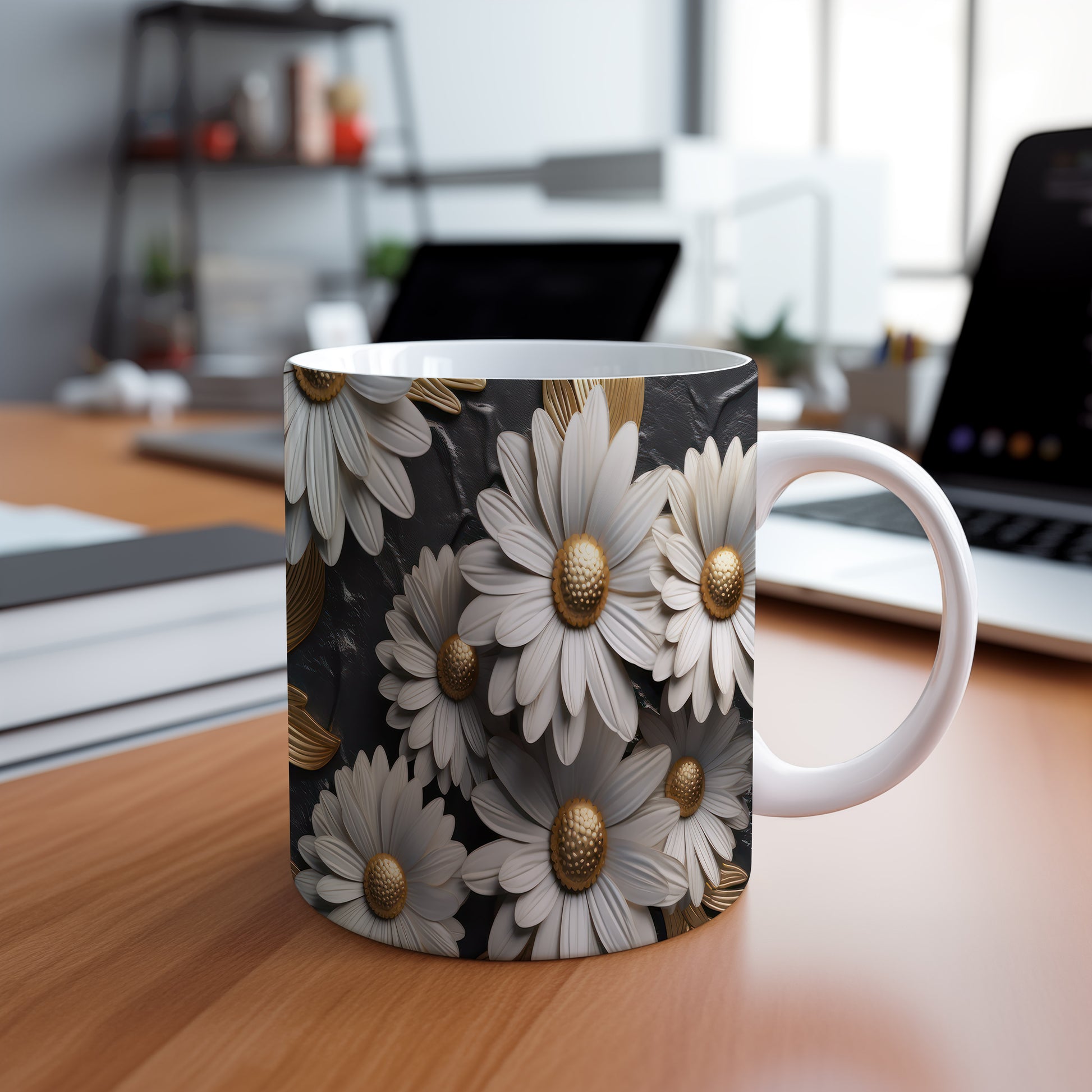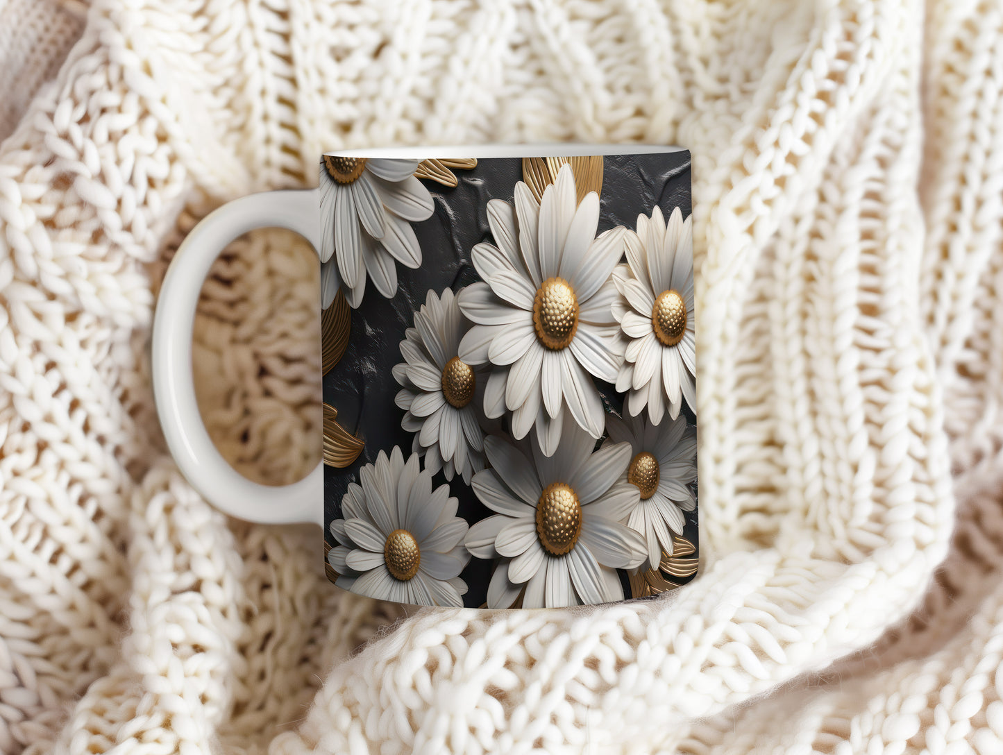 Hrnek s elegantními květinami v bílých a zlatých tónech