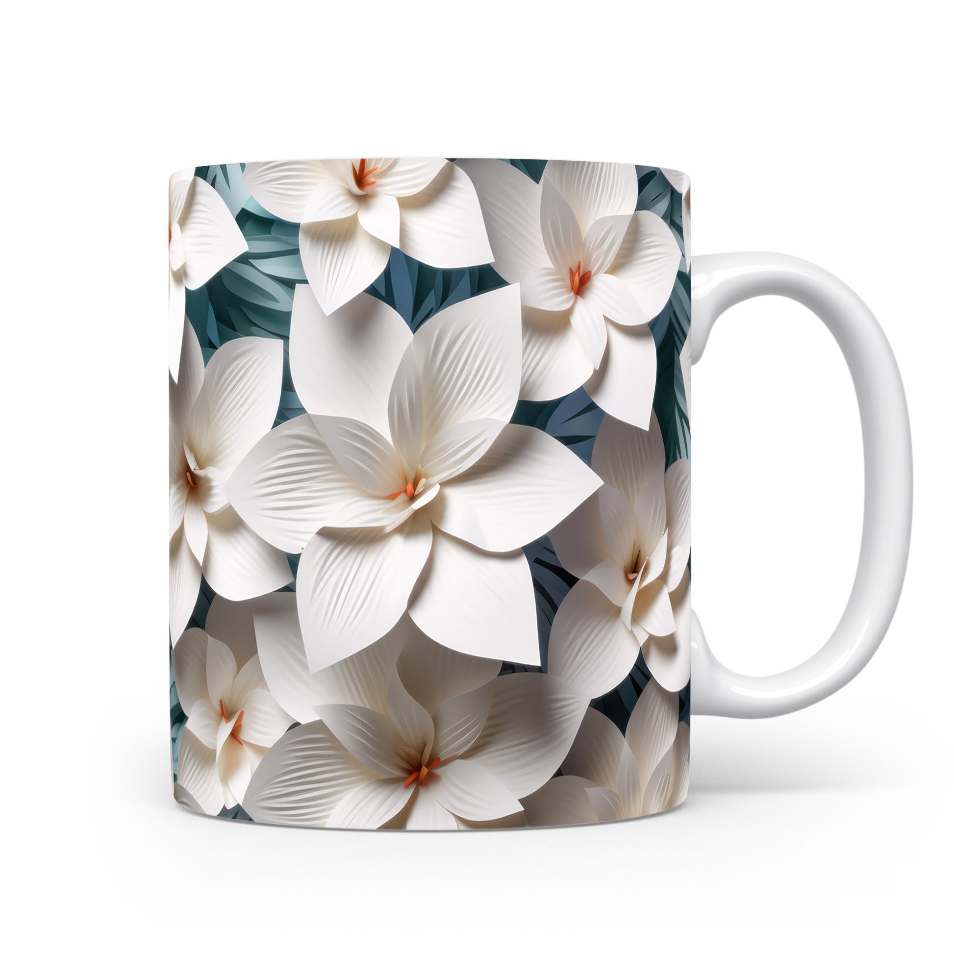 Tento hrnek zdobí krásné květinové motivy s jemnými bílými květy. Je ideální pro milovníky přírody a květin, skvělý jako dárek pro přátele nebo rodinu. Materiál: keramika. Objem: 330 ml. Vhodné do myčky i mikrovlnky. Používání tohoto hrnku přináší radost z každého doušku vaší oblíbené kávy nebo čaje.