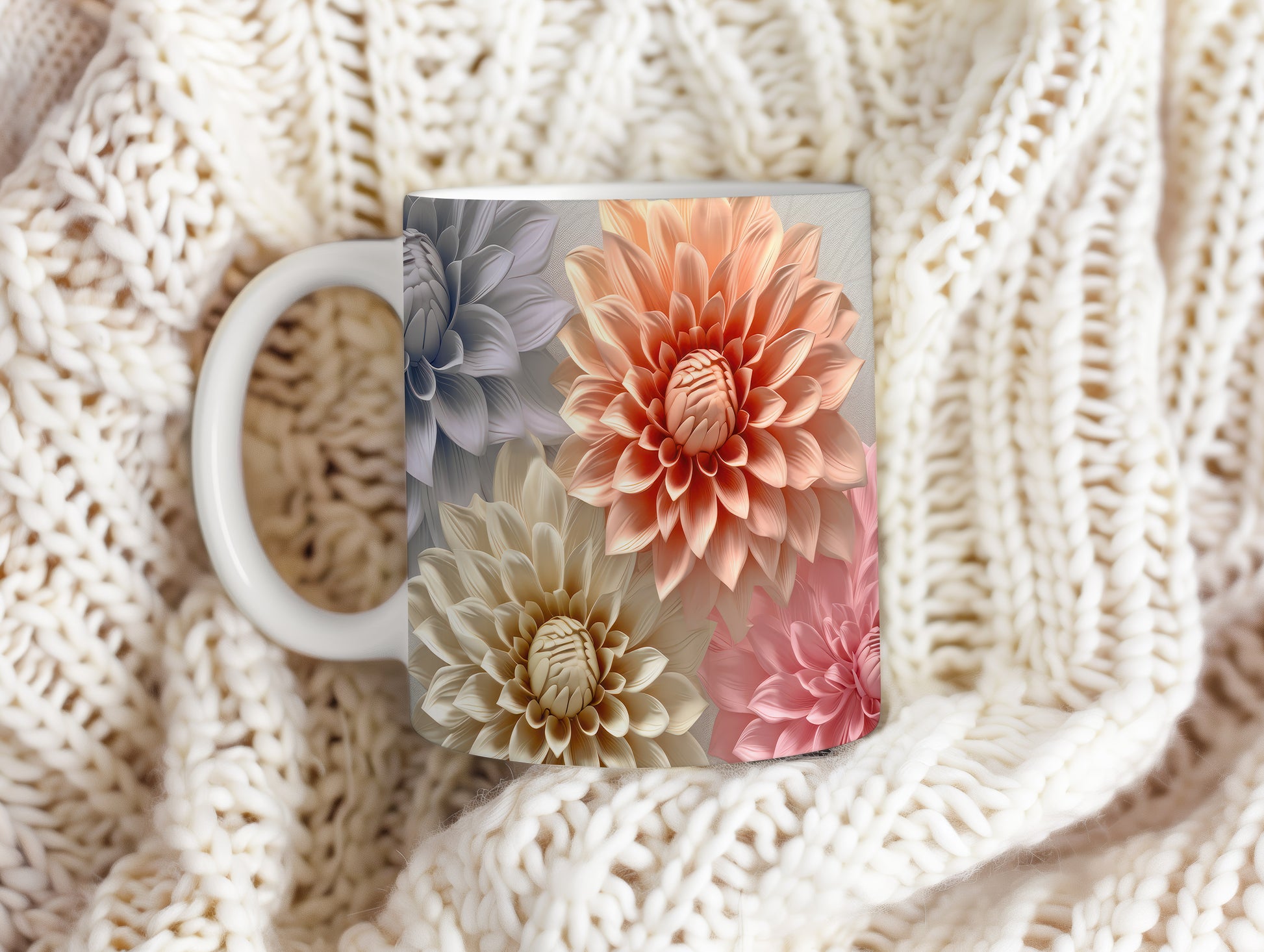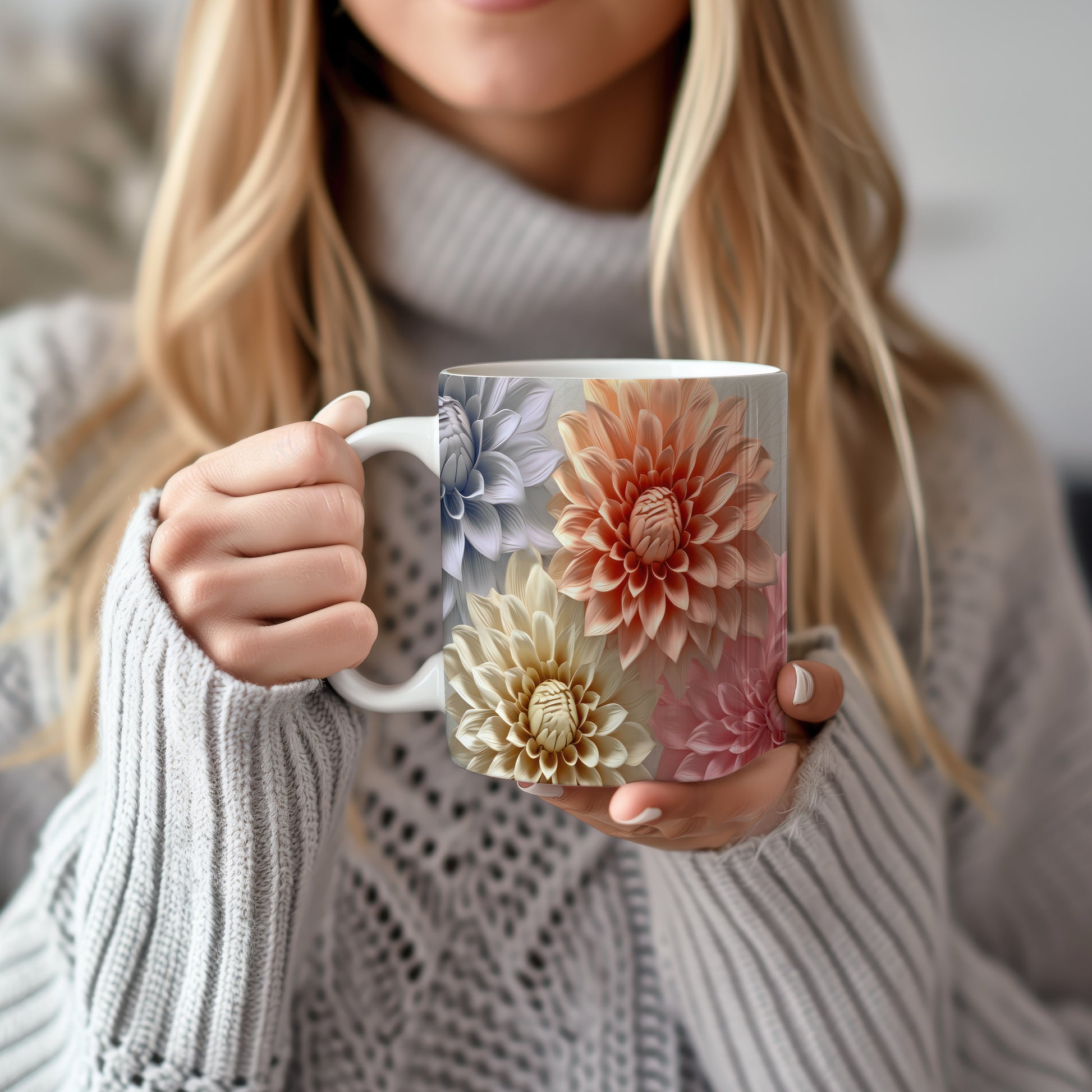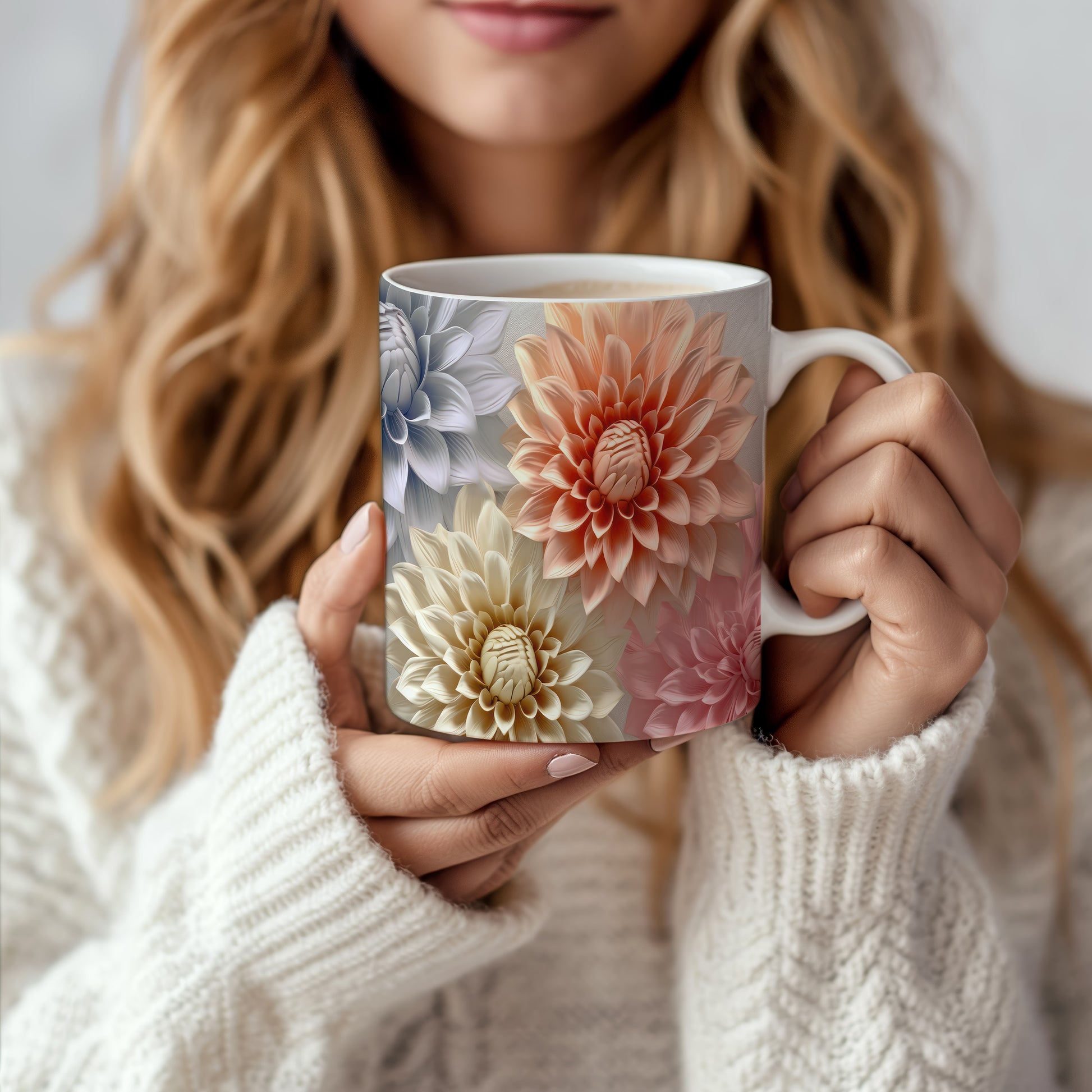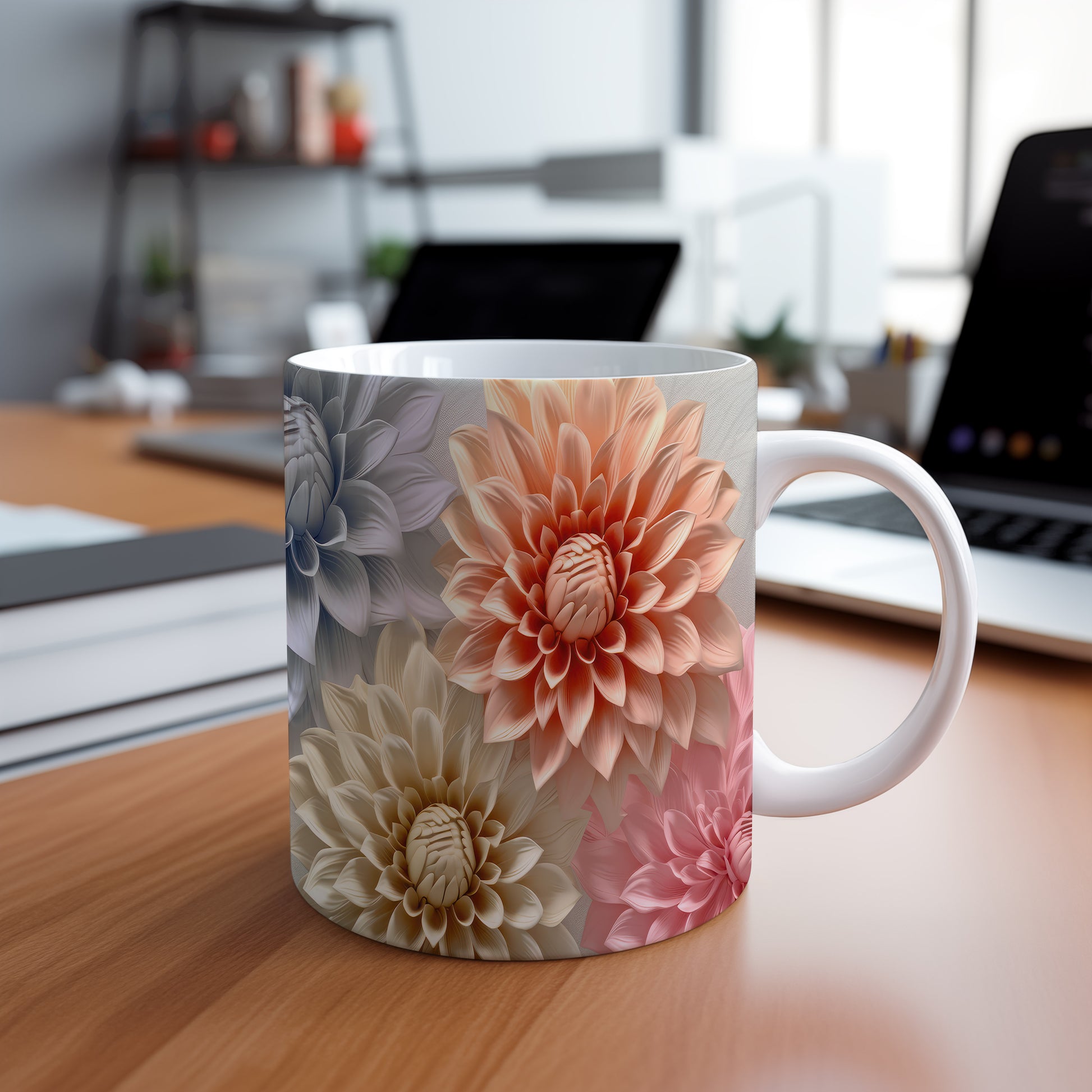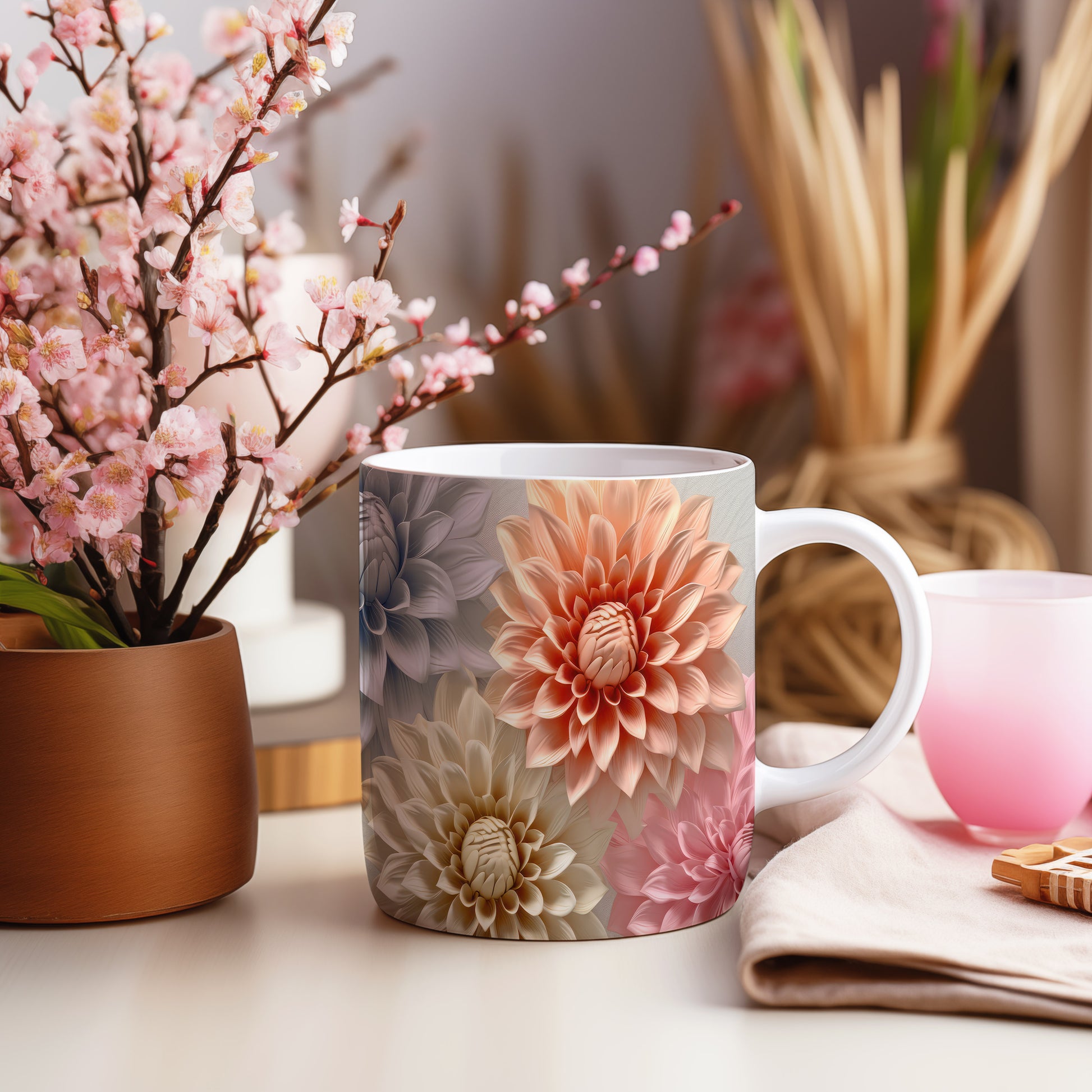 Hrnek s elegantními květinami v jemných růžových tónech