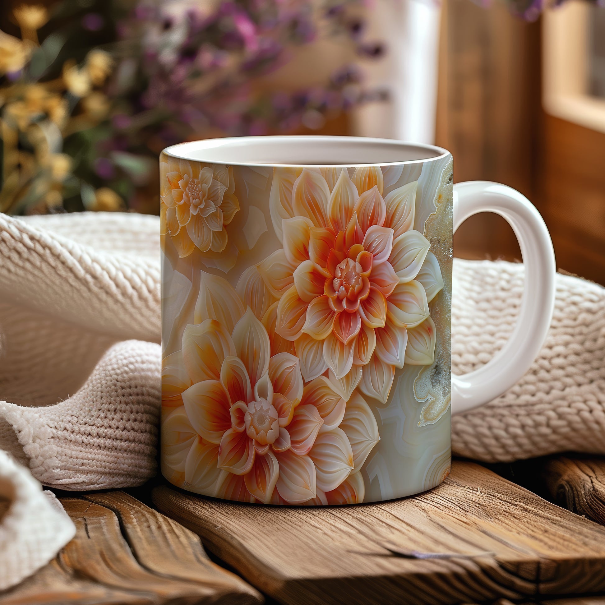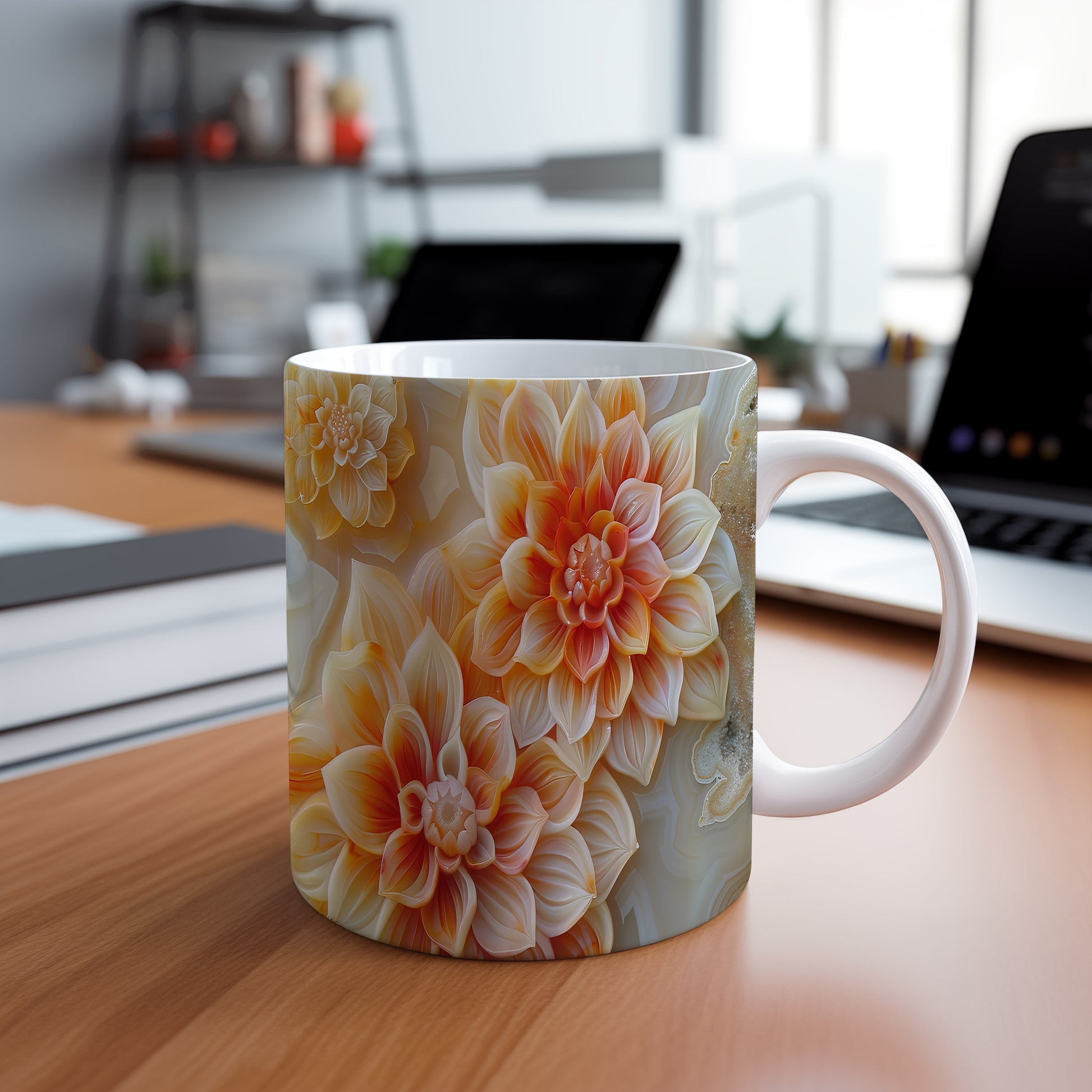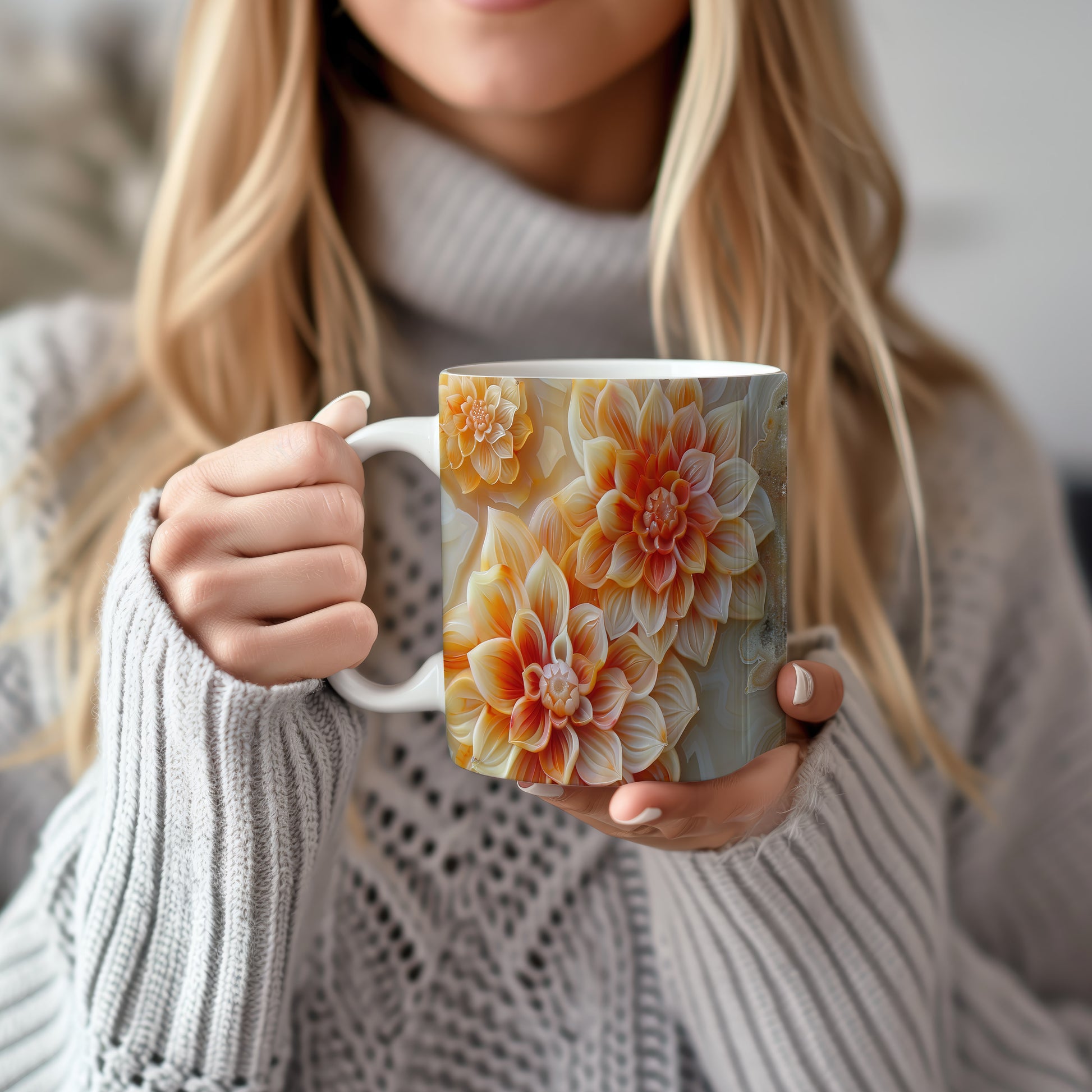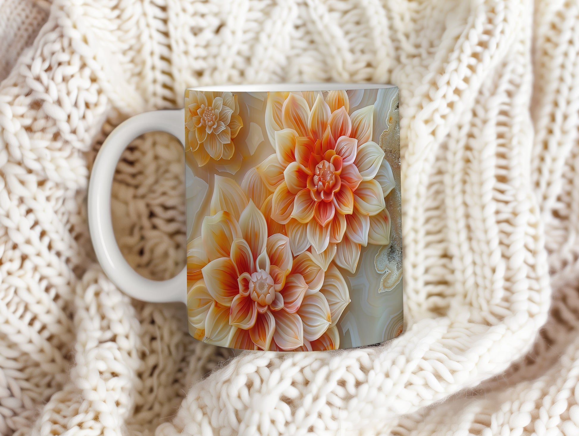 Hrnek s elegantními květinami v jemných tónech oranžové a bílé