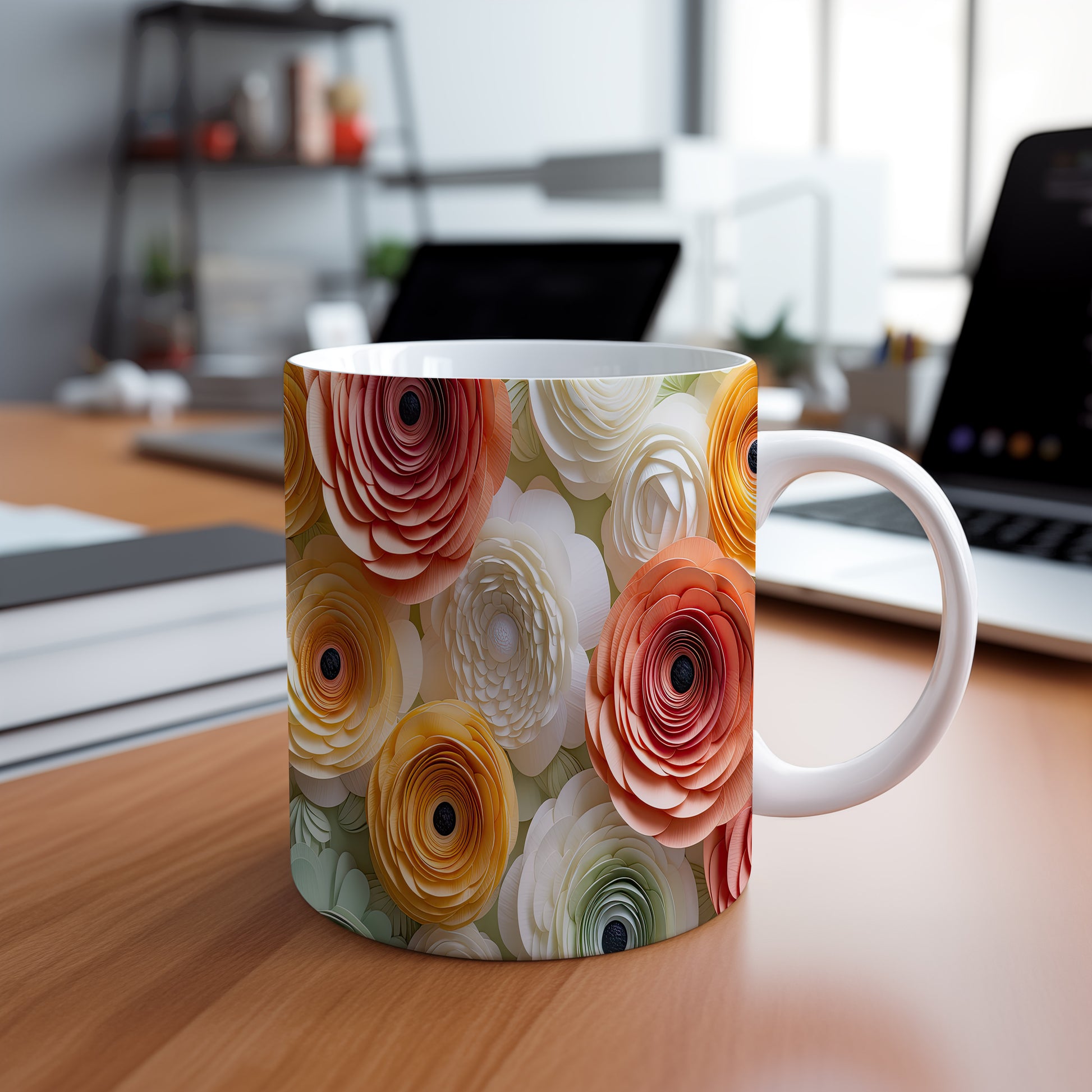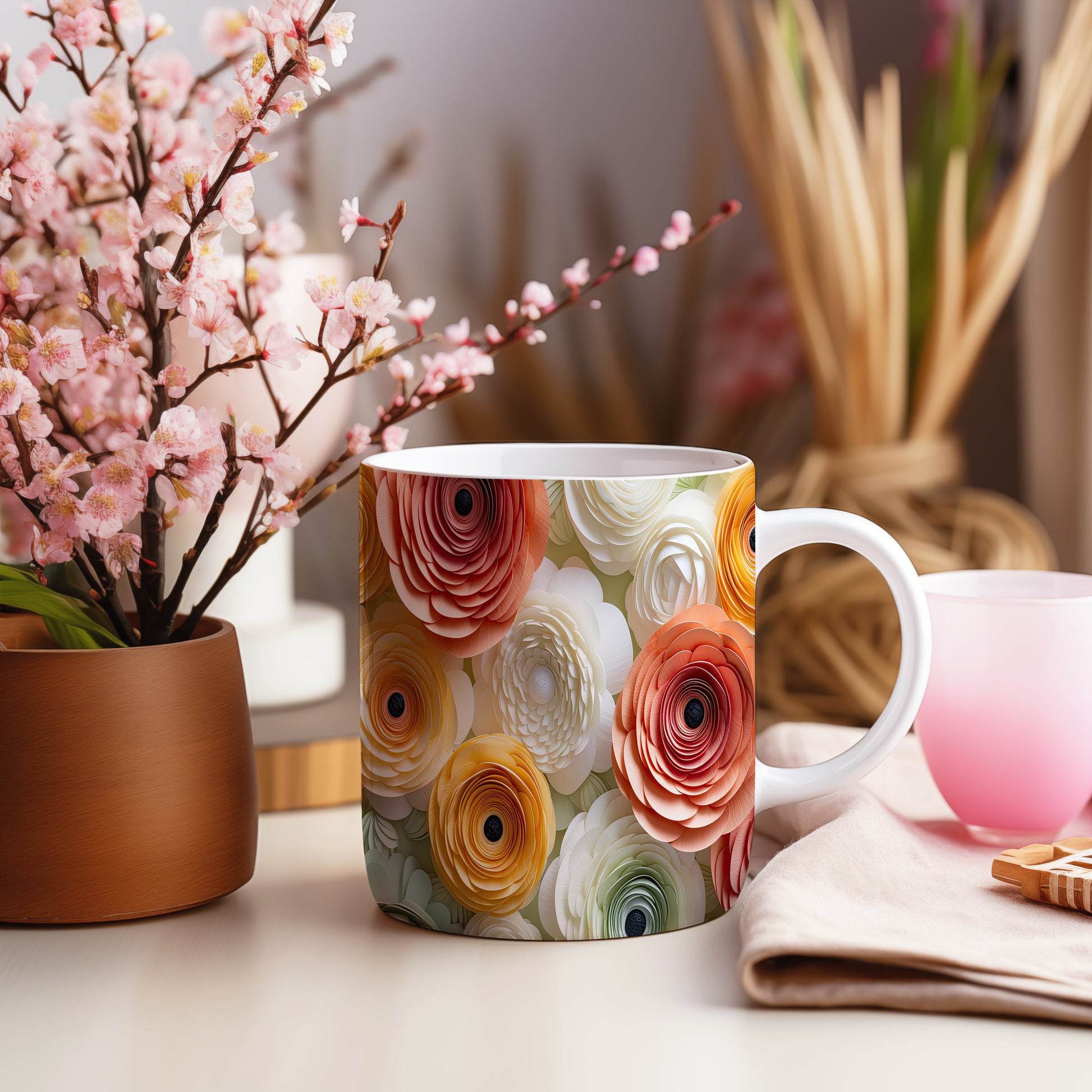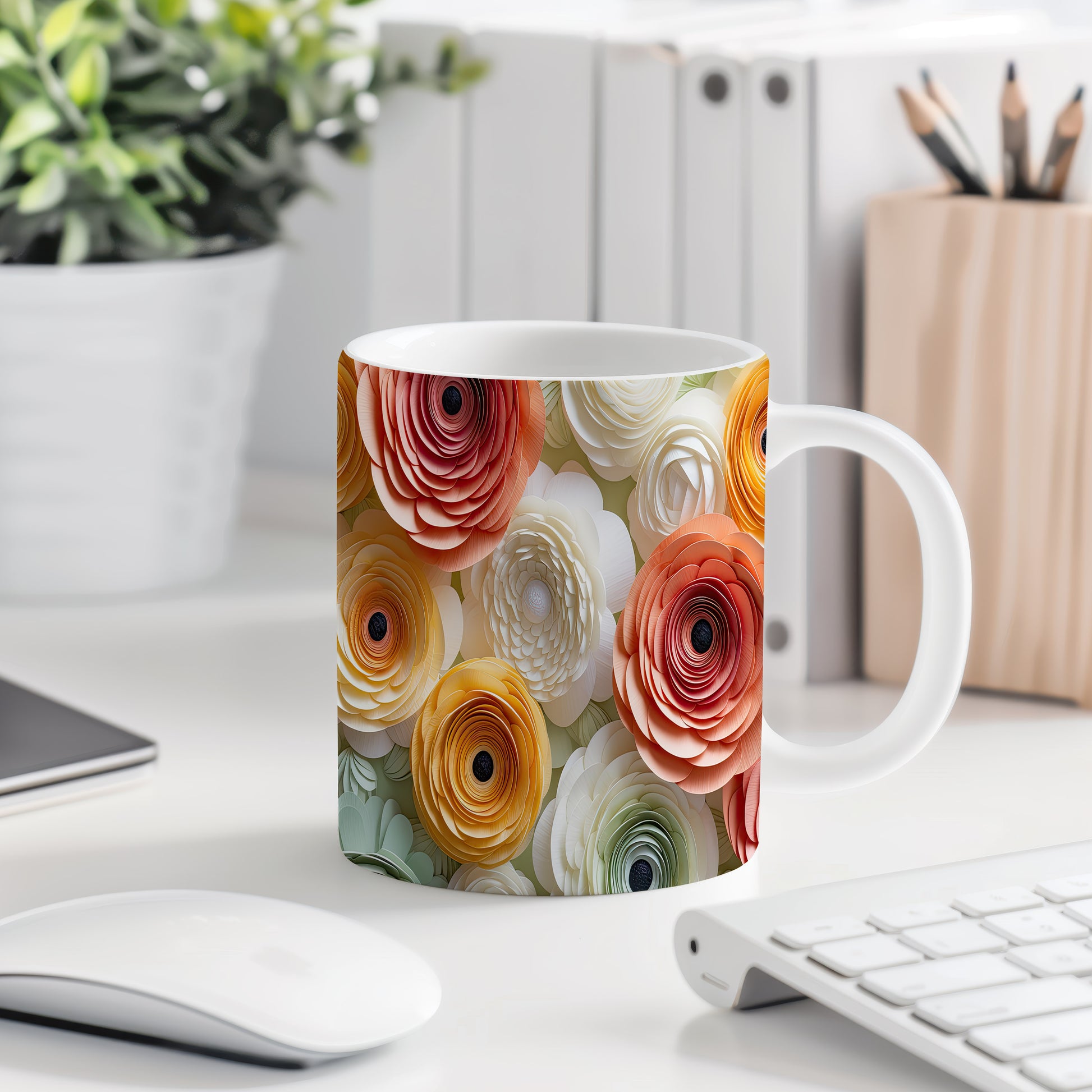 Hrnek s elegantními květinami v moderním stylu