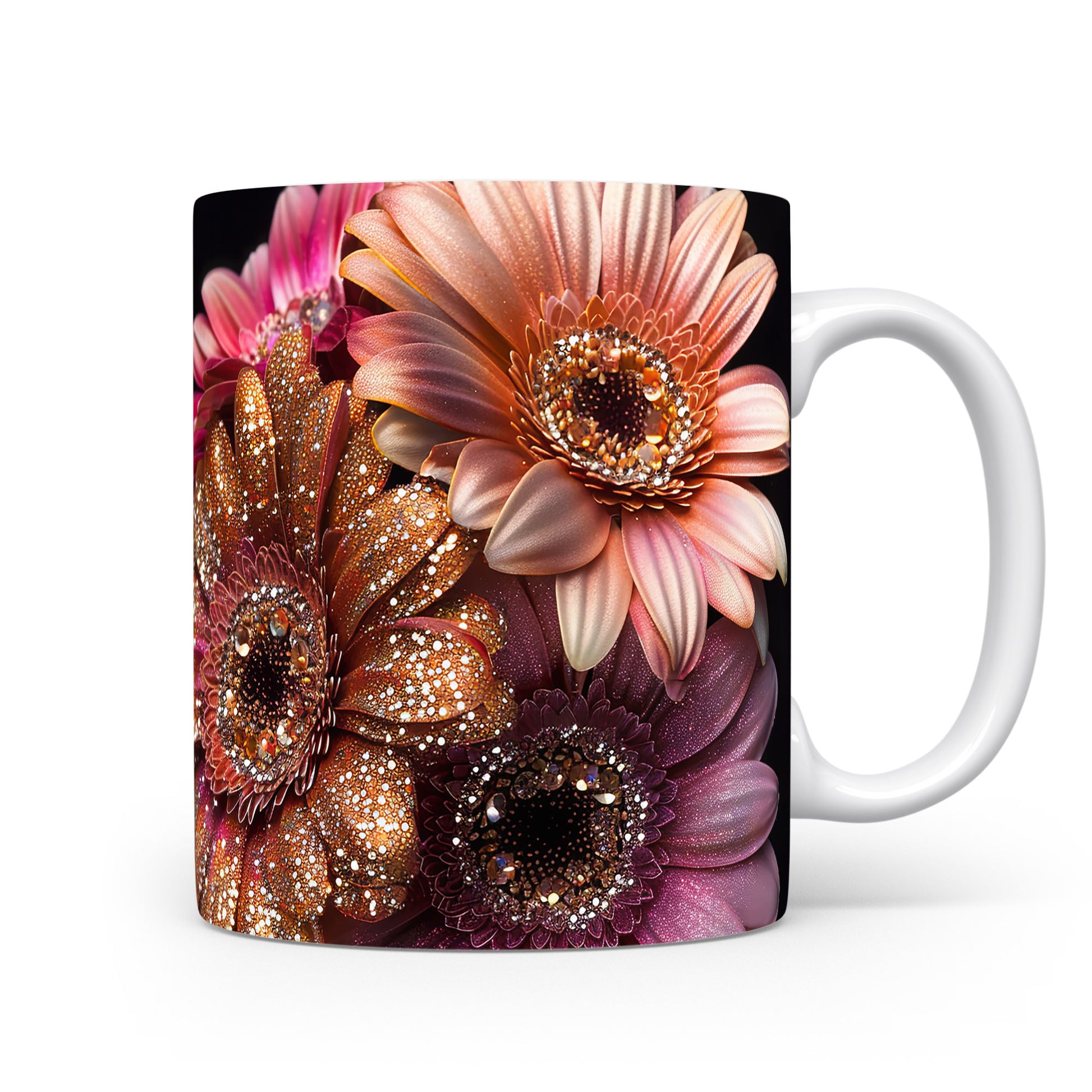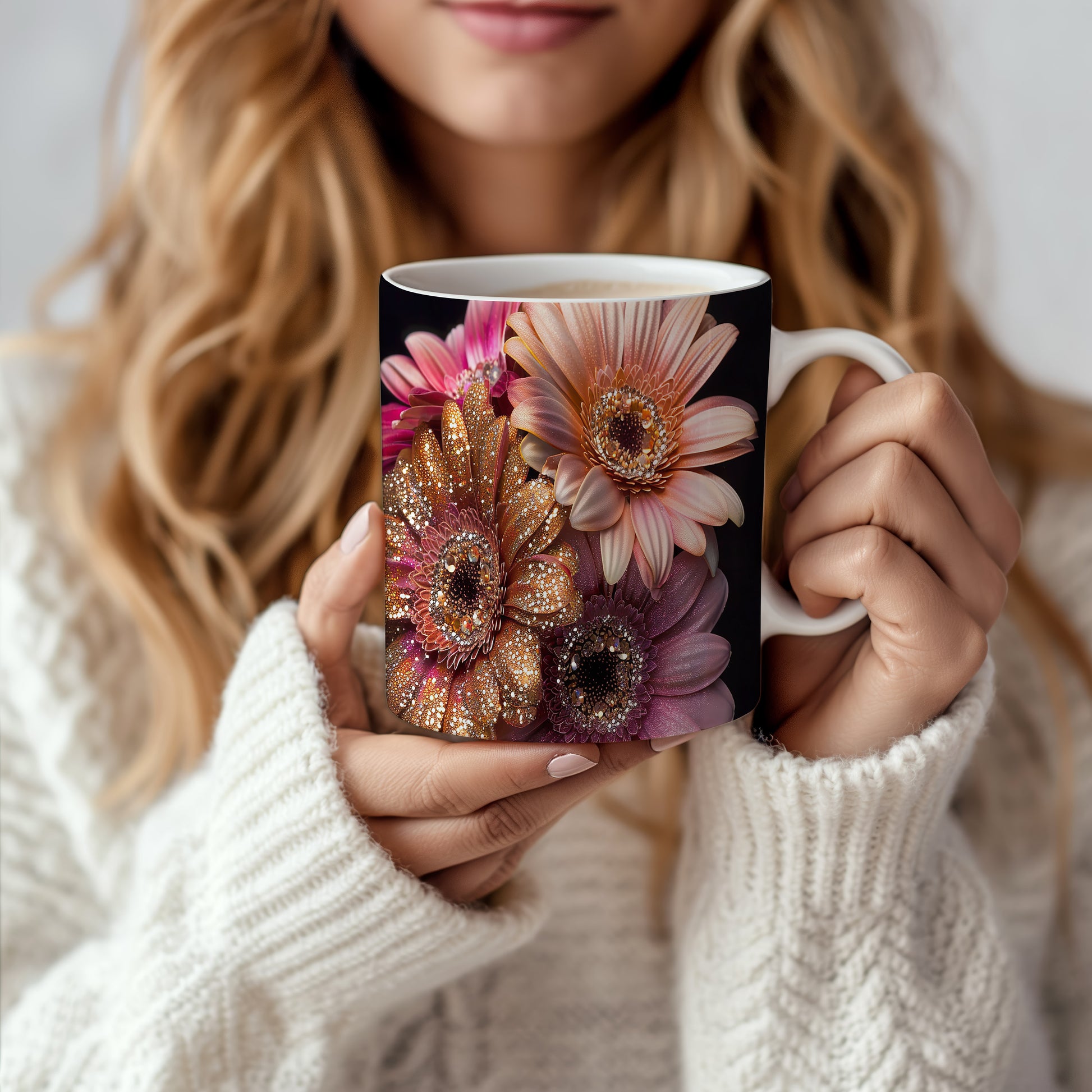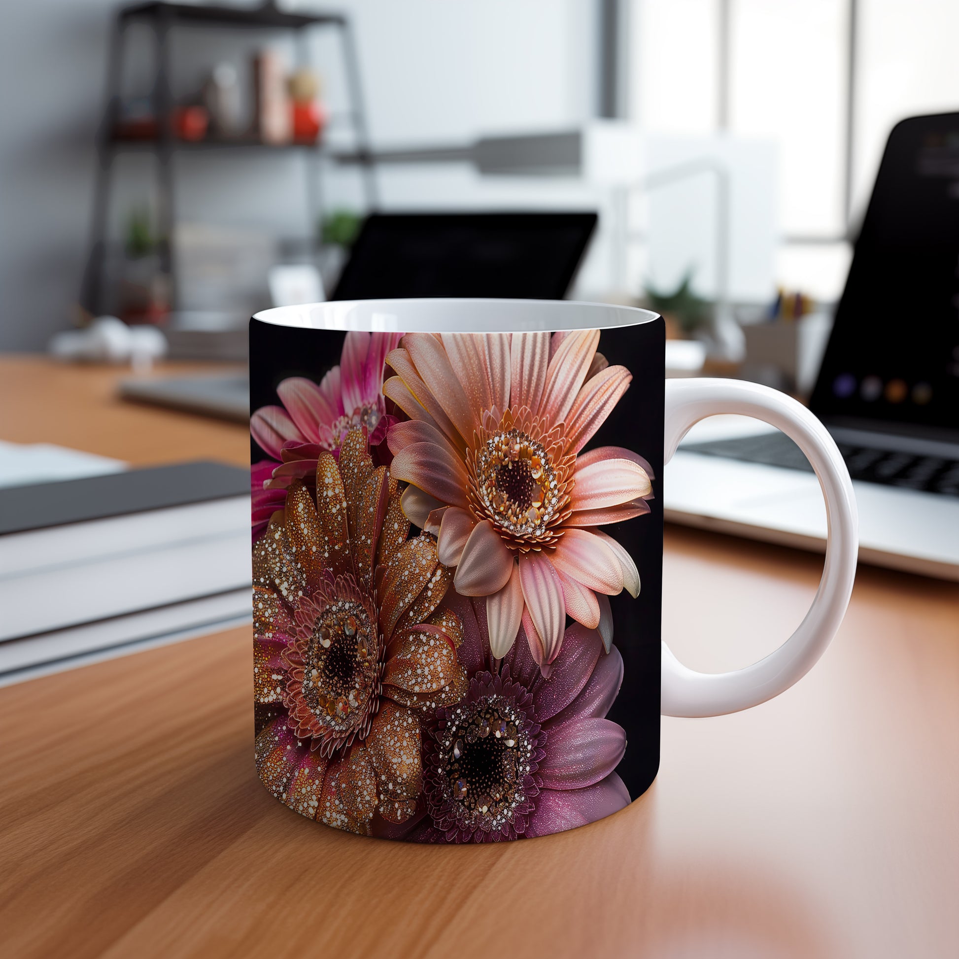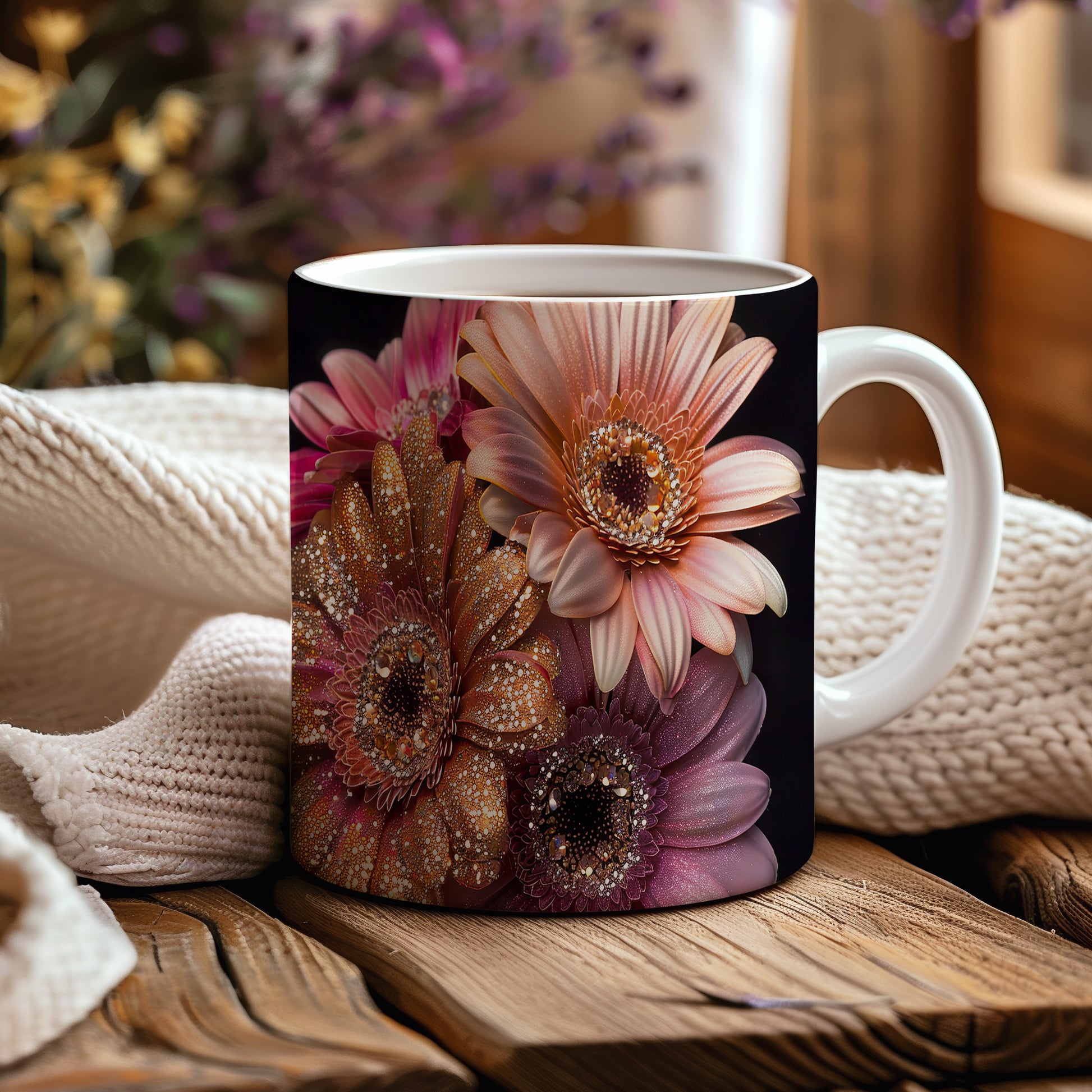 Hrnek s elegantními květinami v růžových a zlatých tónech