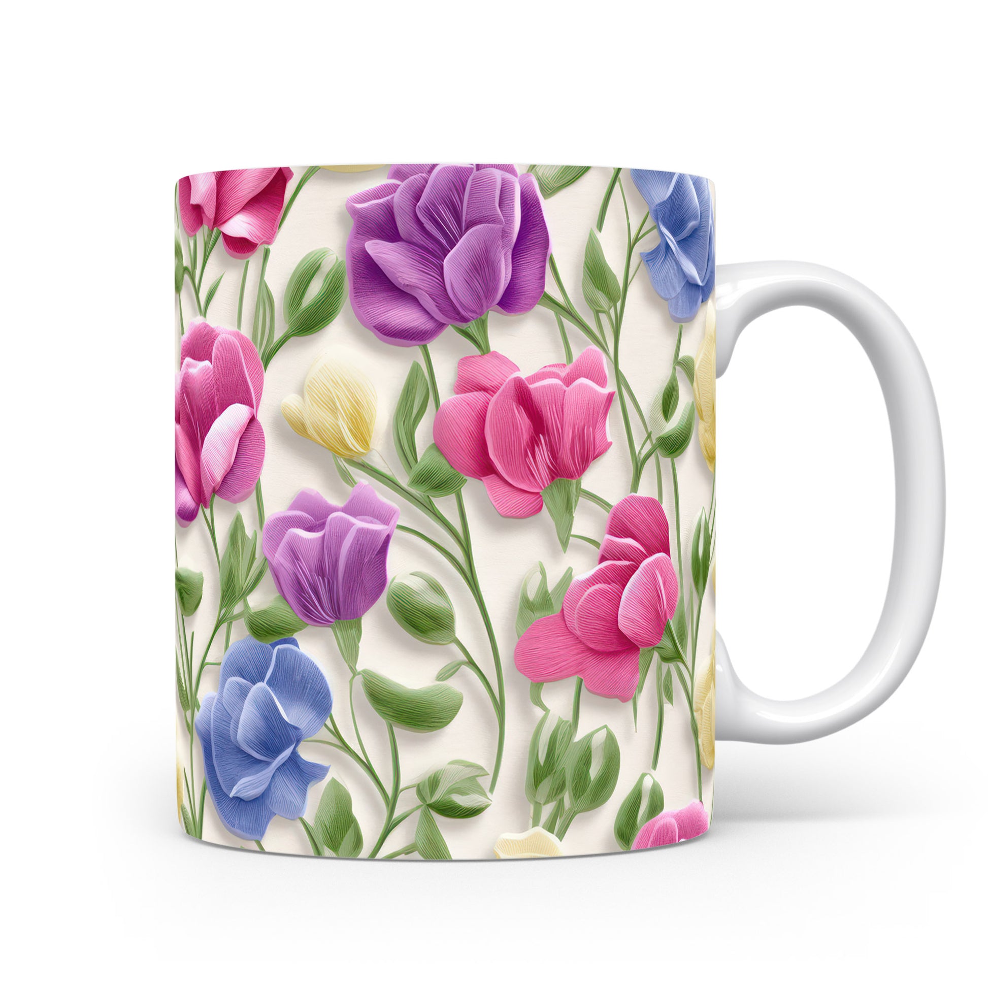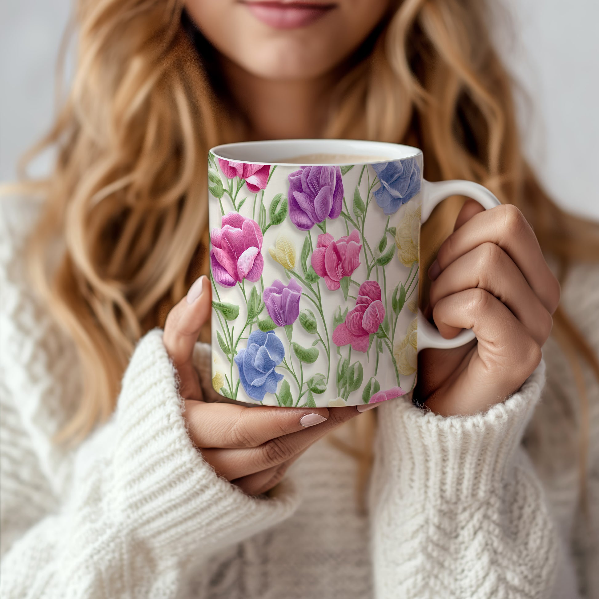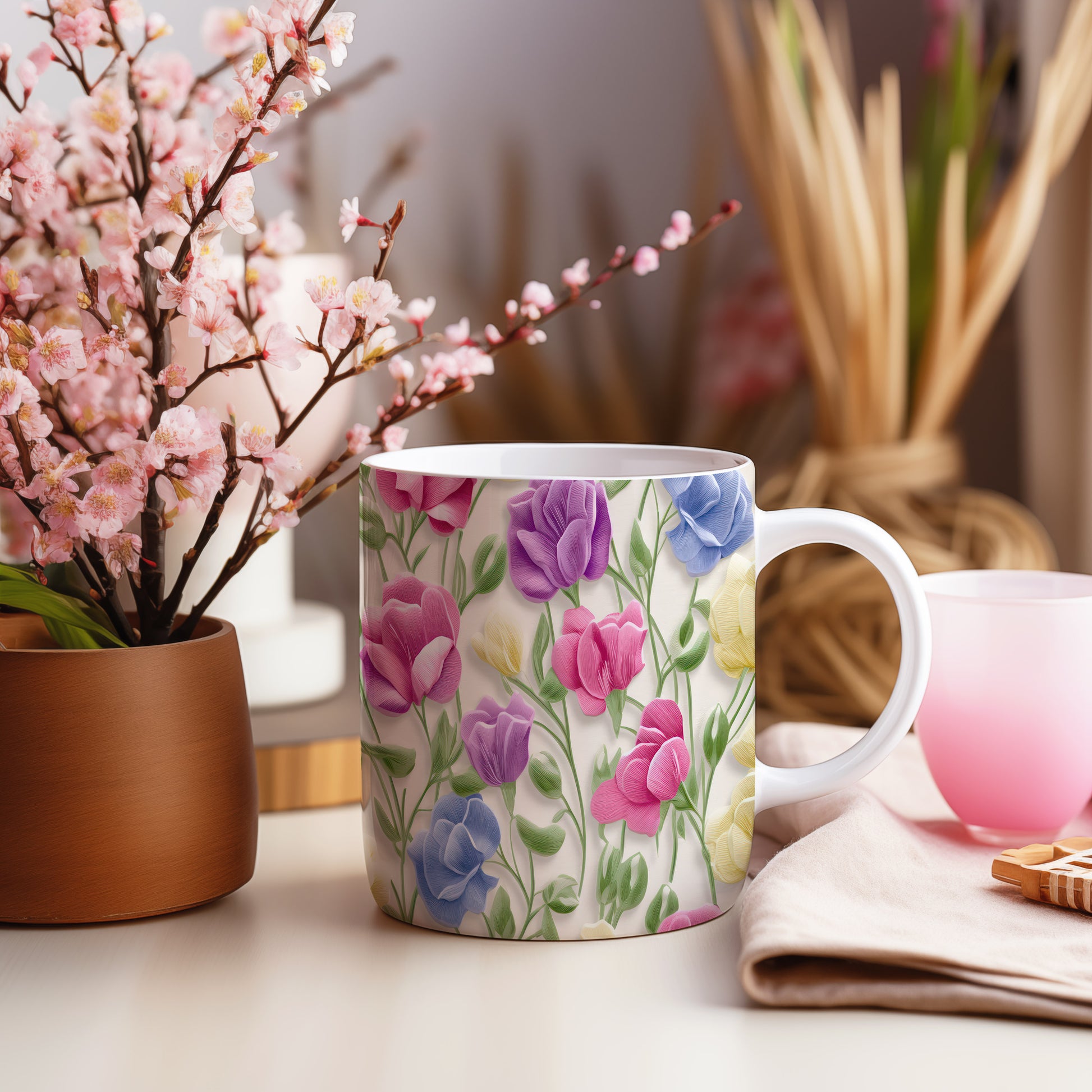 Hrnek s elegantními květinami v růžových tónech – 3D efektem