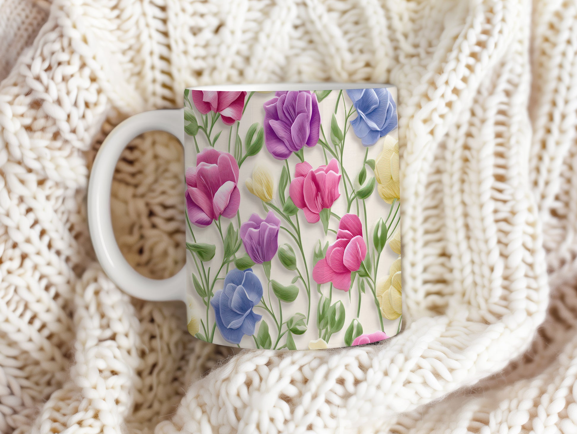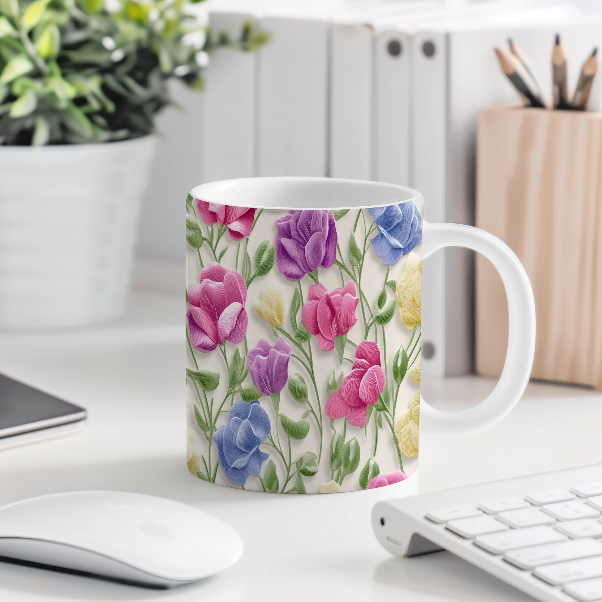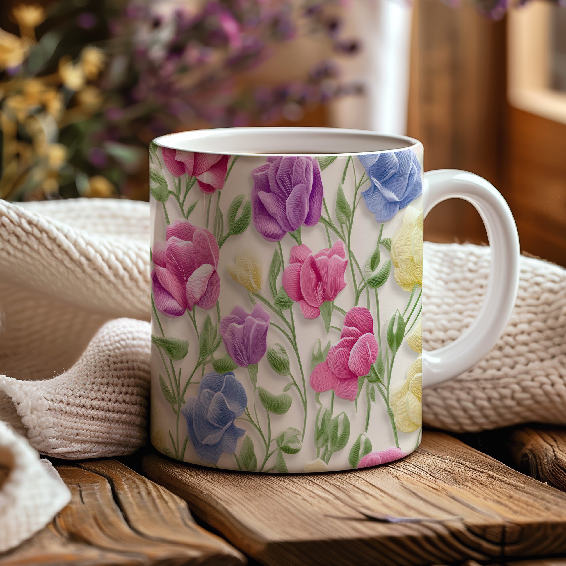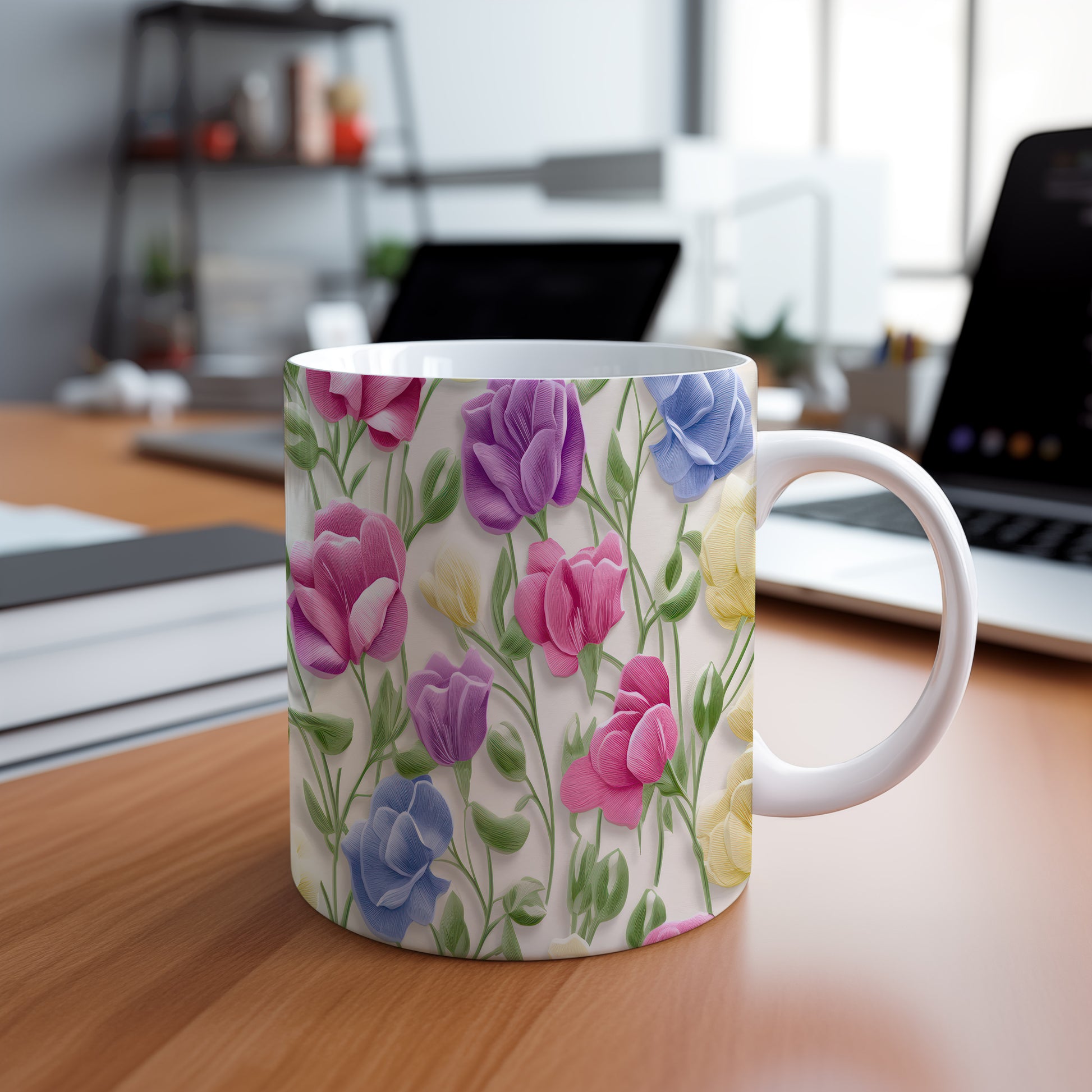 Hrnek s elegantními květinami v růžových tónech – 3D efektem
