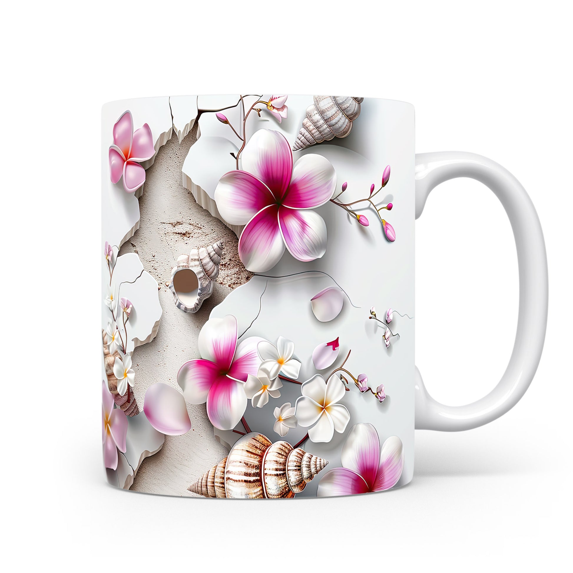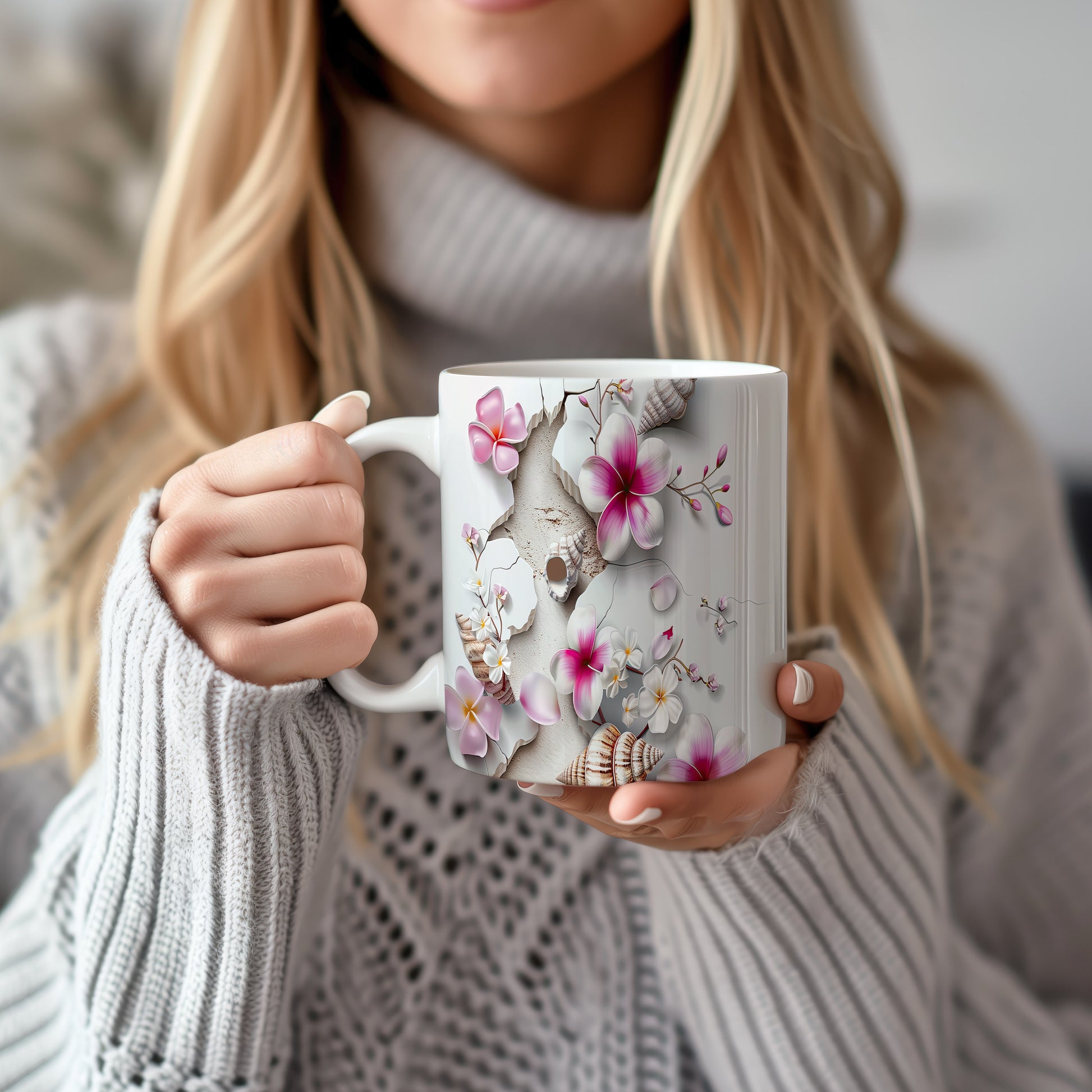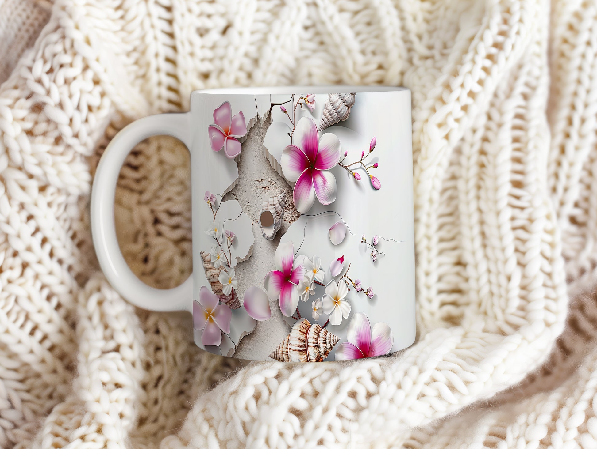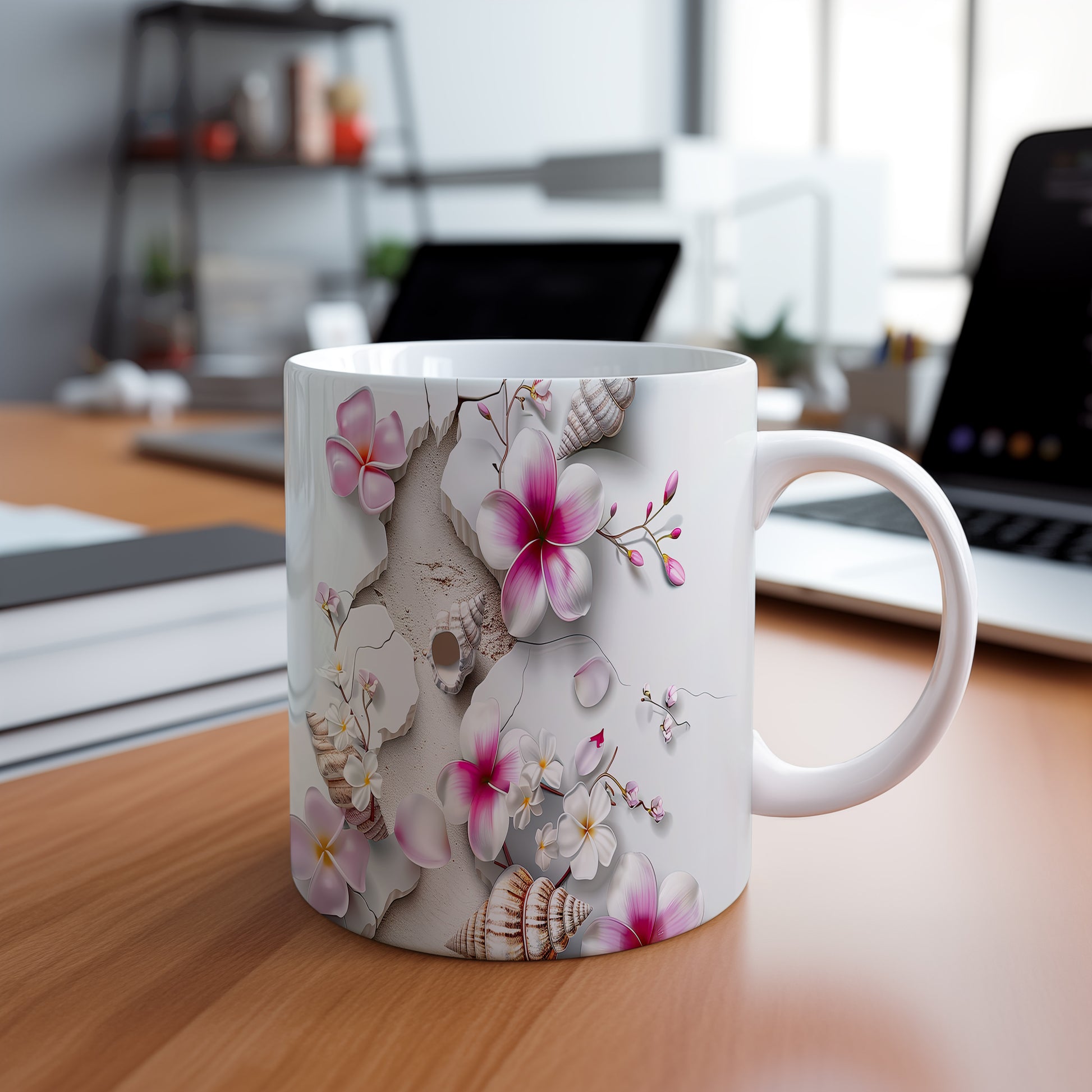 Hrnek s elegantními květinami v růžových tónech – digitální ilustrací