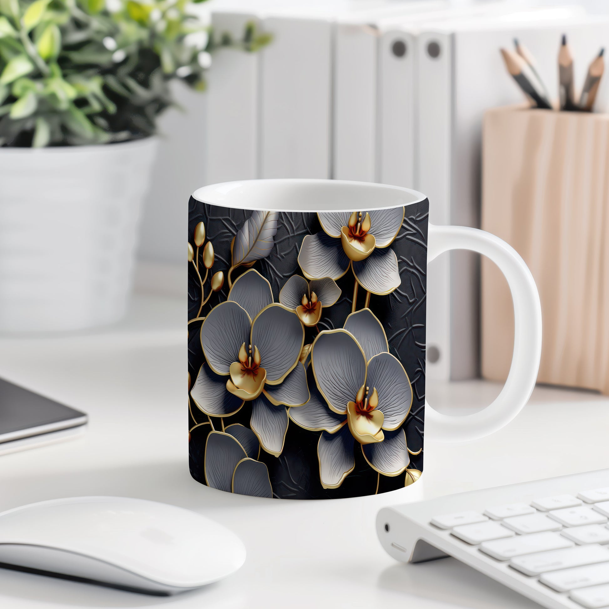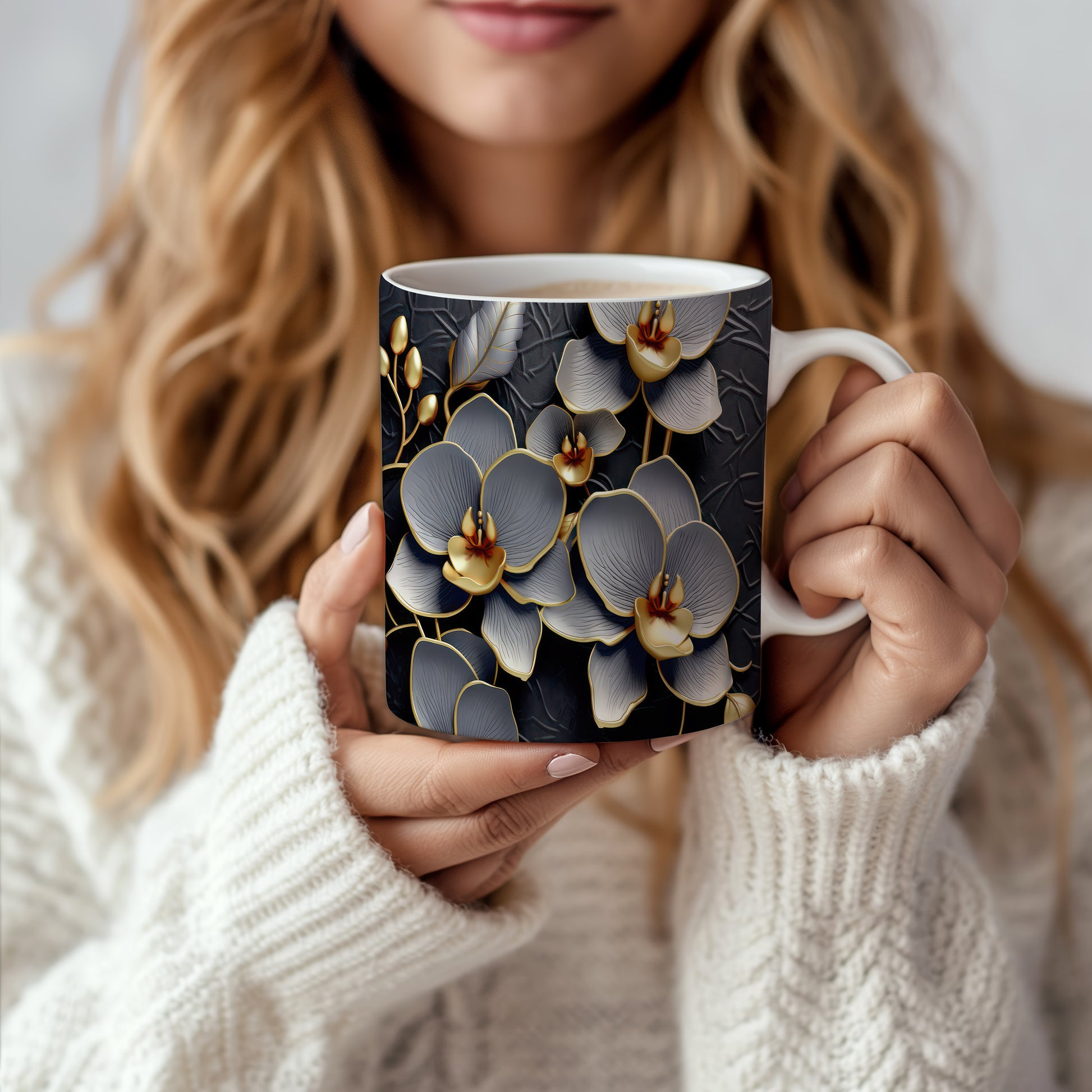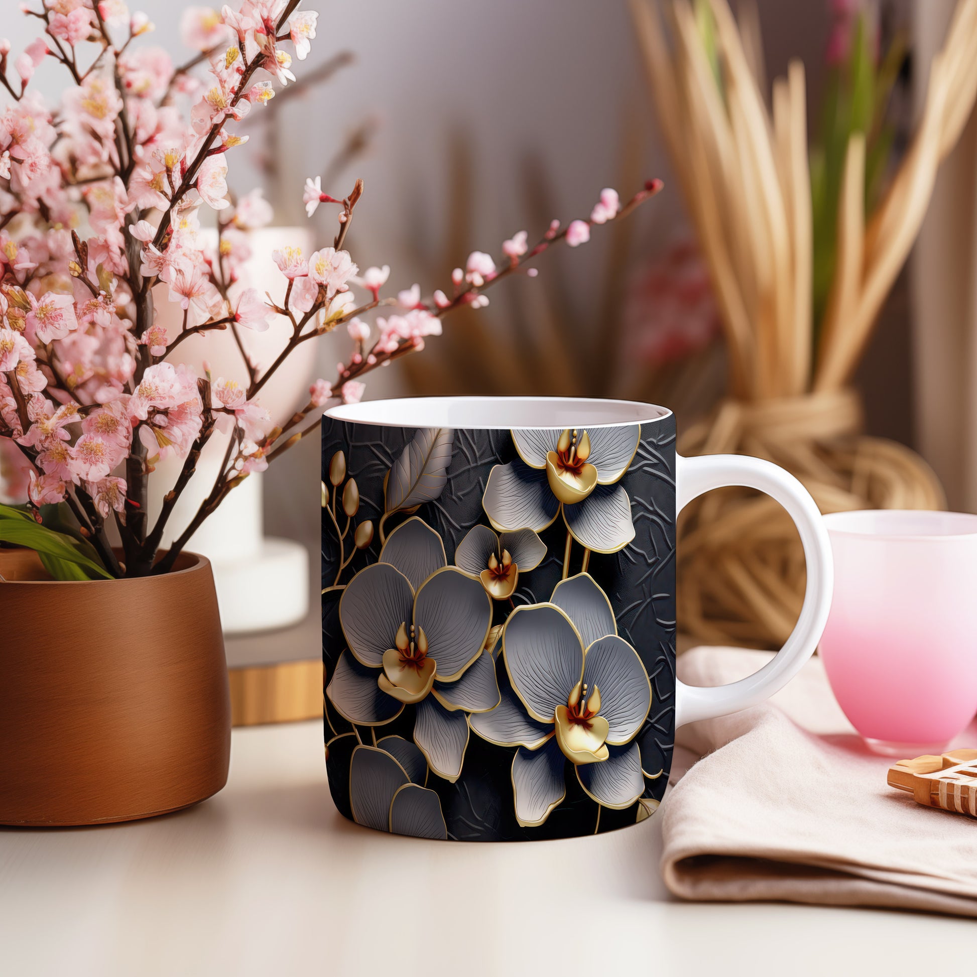 Tento keramický hrnek zdobí motiv elegantních orchidejí na černém pozadí. Je ideální pro každodenní užití a skvělým dárkem pro milovníky květin. Materiál: keramika. Objem: 330 ml. Vhodné do myčky i mikrovlnky. Díky svému stylovému designu přinese do vašeho pití špetku elegance.