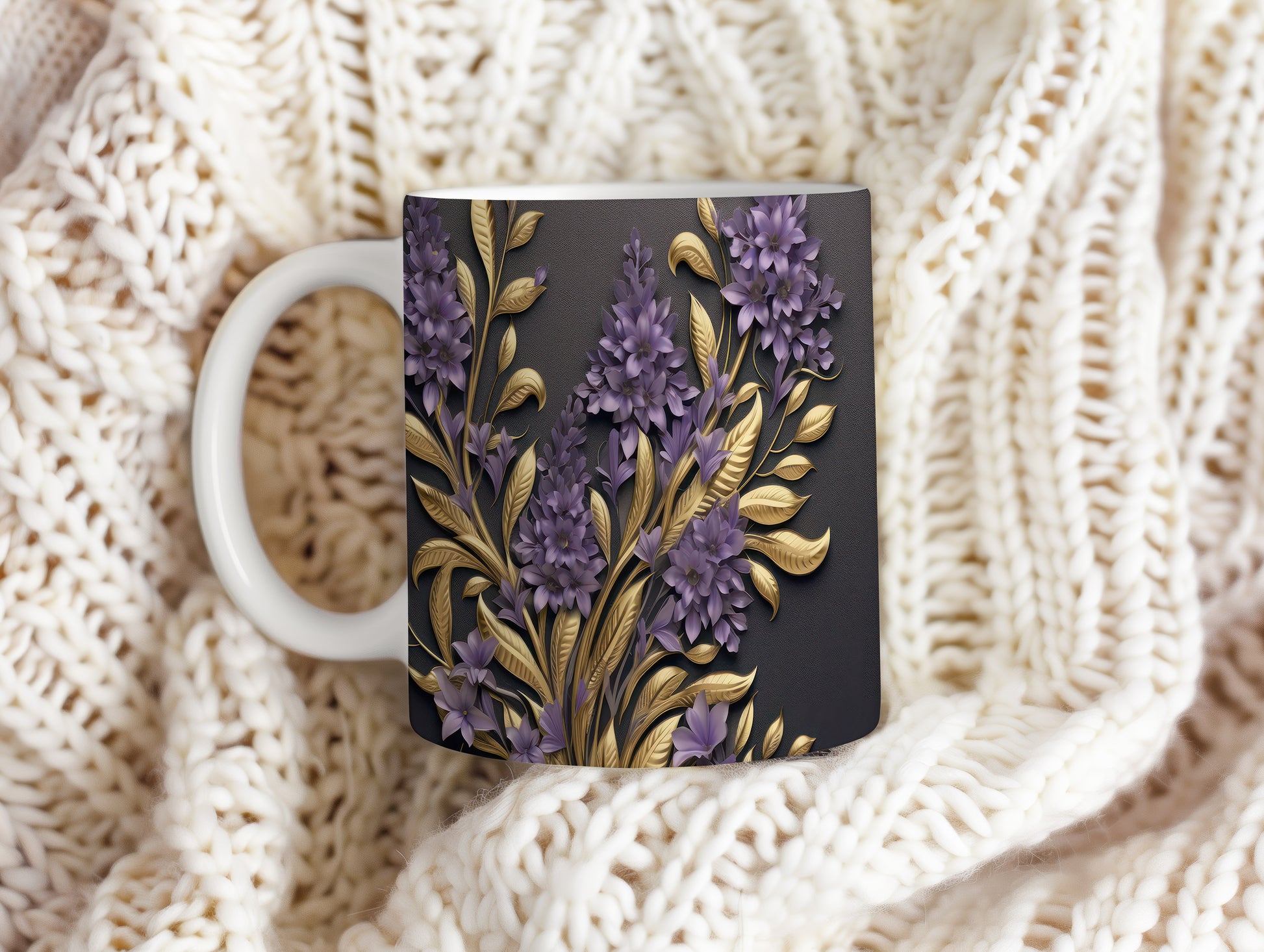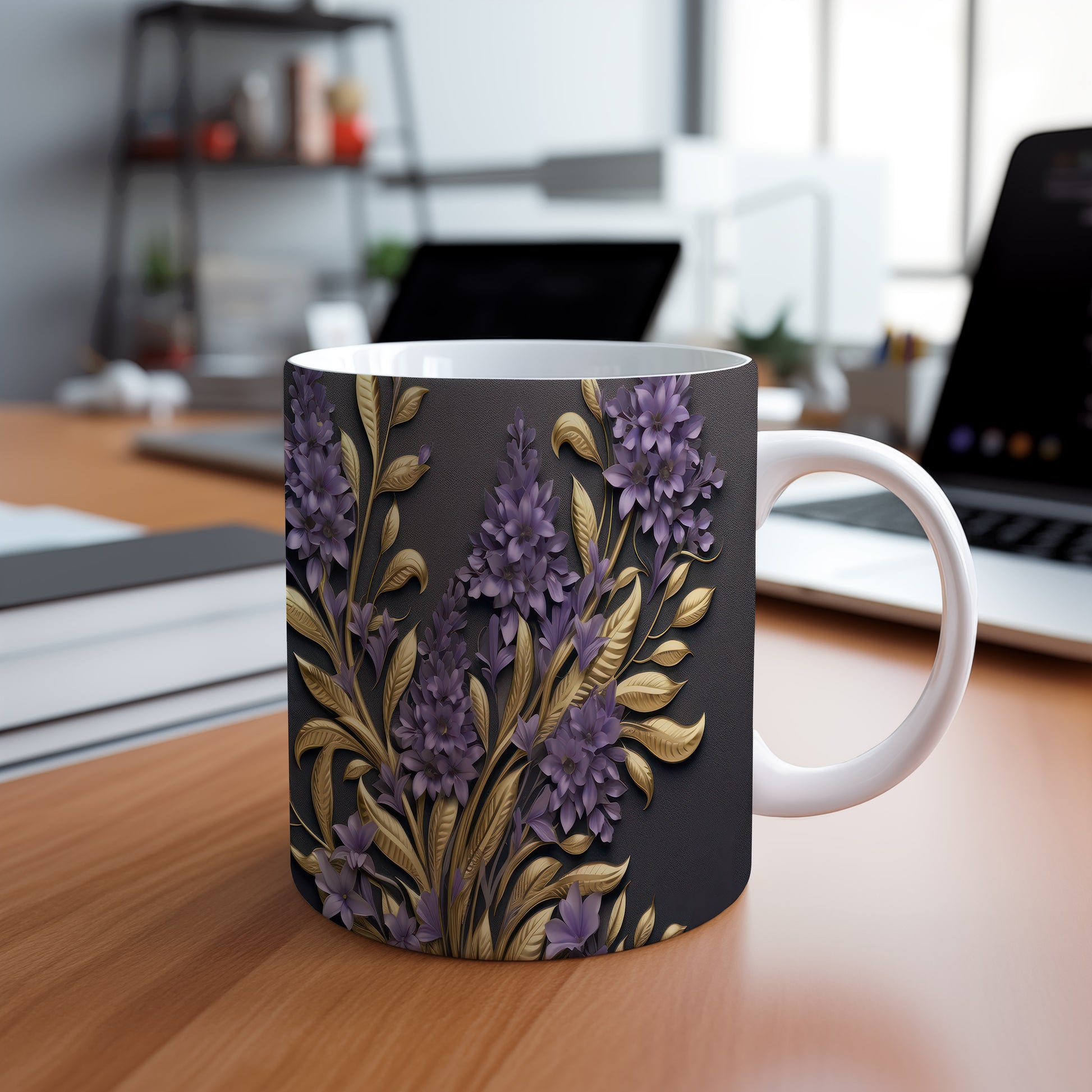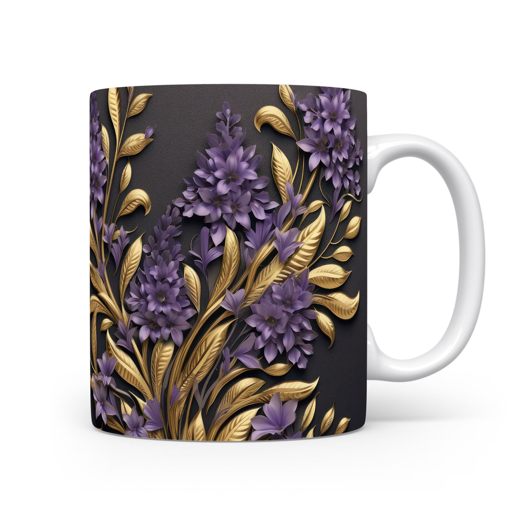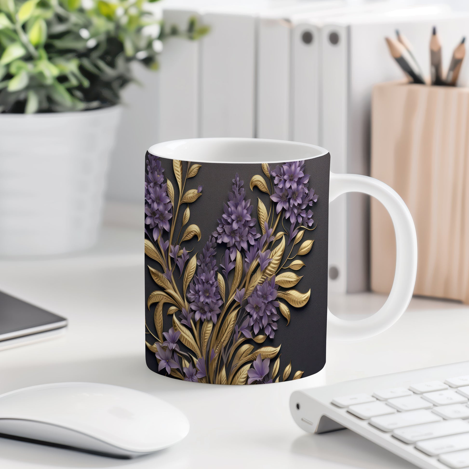 Tento elegantní hrnek s fialovými květinami a zlatými listy je skvělým doplňkem pro milovníky přírody a krásného designu. Je ideální jako dárek pro přátele nebo rodinu, kteří ocení stylové nádobí. Materiál: keramika. Objem: 330 ml. Vhodné do myčky i mikrovlnky. Díky svému jedinečnému vzhledu přináší do každodenního pití radost a pohodu.