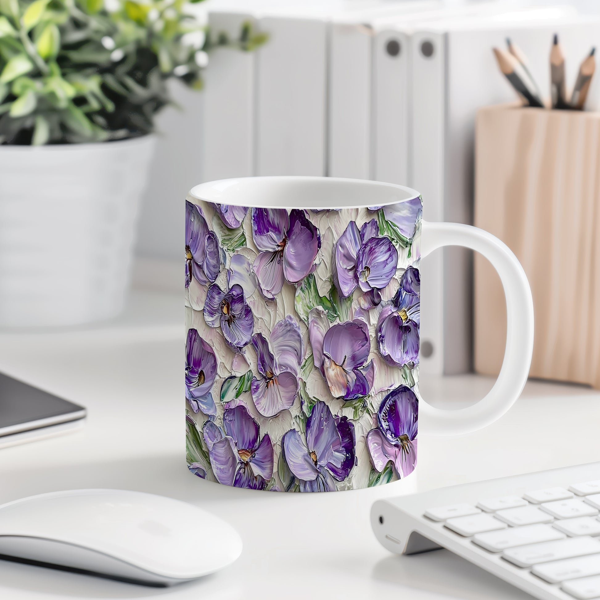 Hrnek s fialovými květinami v různých odstínech je elegantním kouskem pro každého milovníka přírody. Tento hrnek je ideálním dárkem pro ženy, které ocení krásu květin. Materiál: keramika. Objem: 330 ml. Vhodné do myčky i mikrovlnky. Díky svému designu přináší do každodenního pití radost a pohodu.