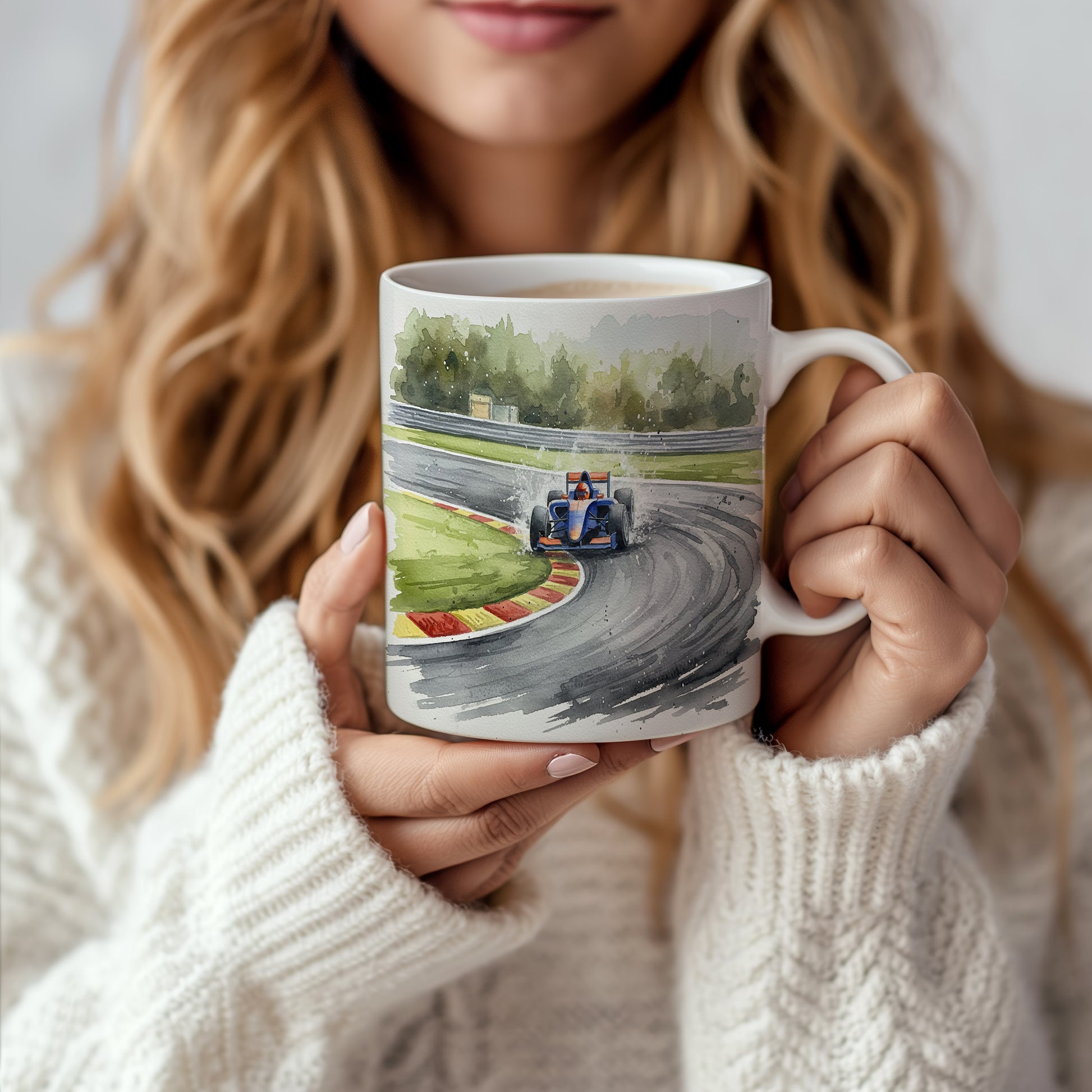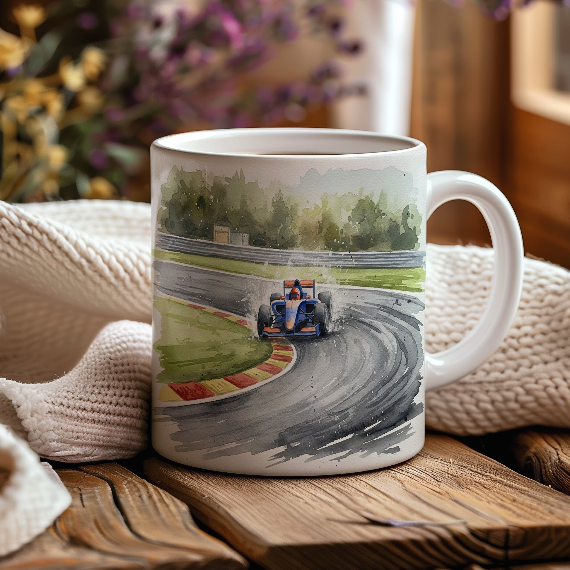 Uchvátí vás dynamický akvarel formule svištící po závodní trati. Ideální pro milovníky rychlých kol. Hrnek 330 ml – vhodný do myčky i mikrovlnky.