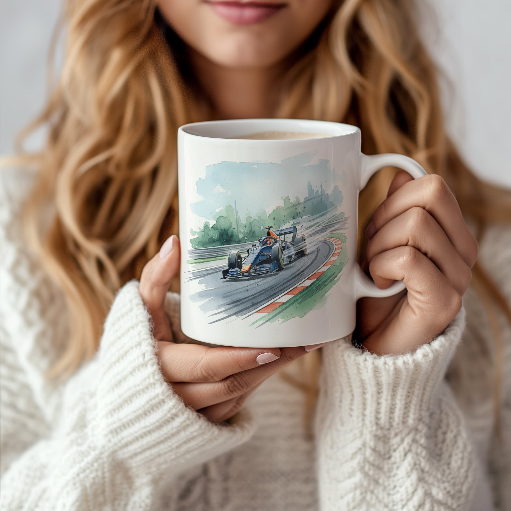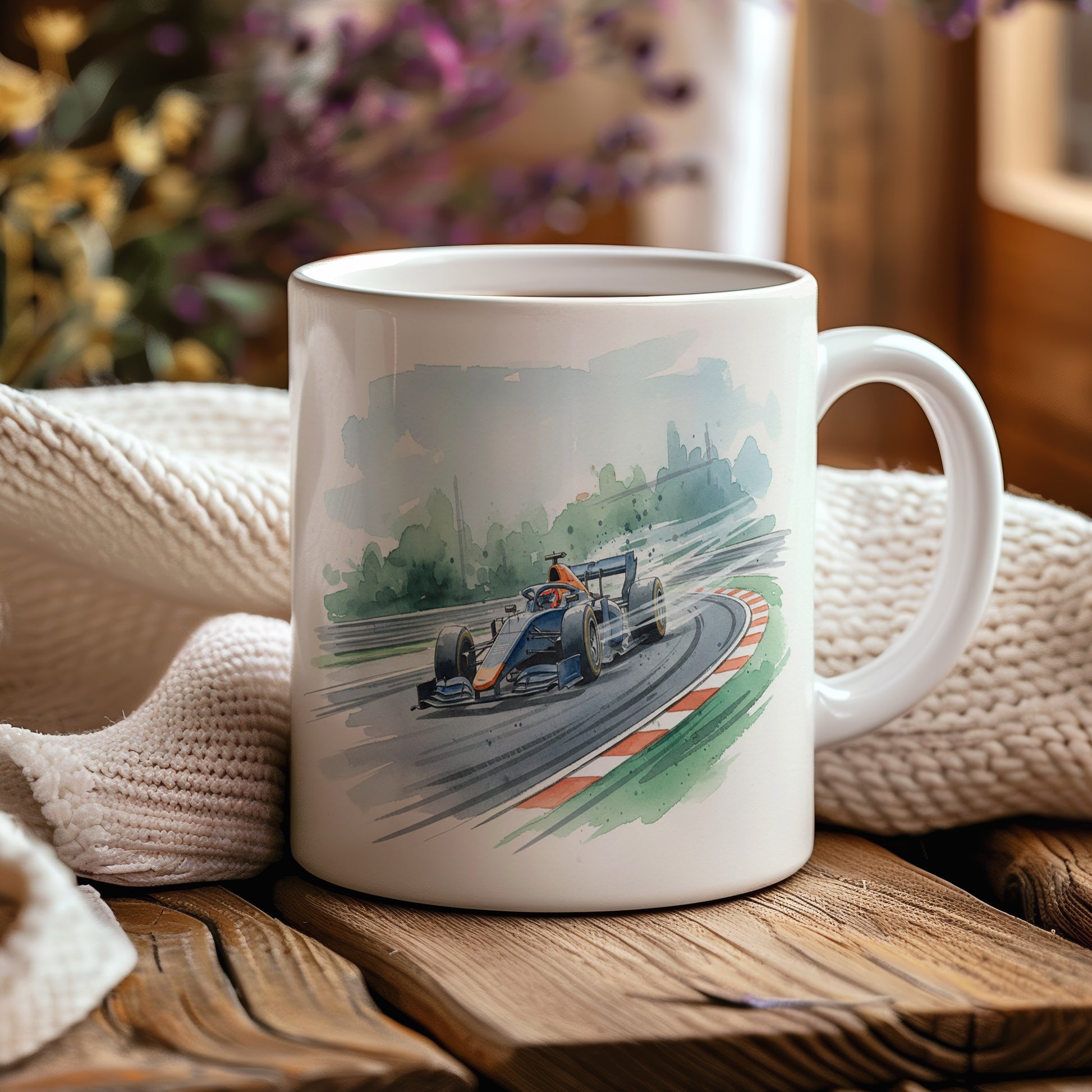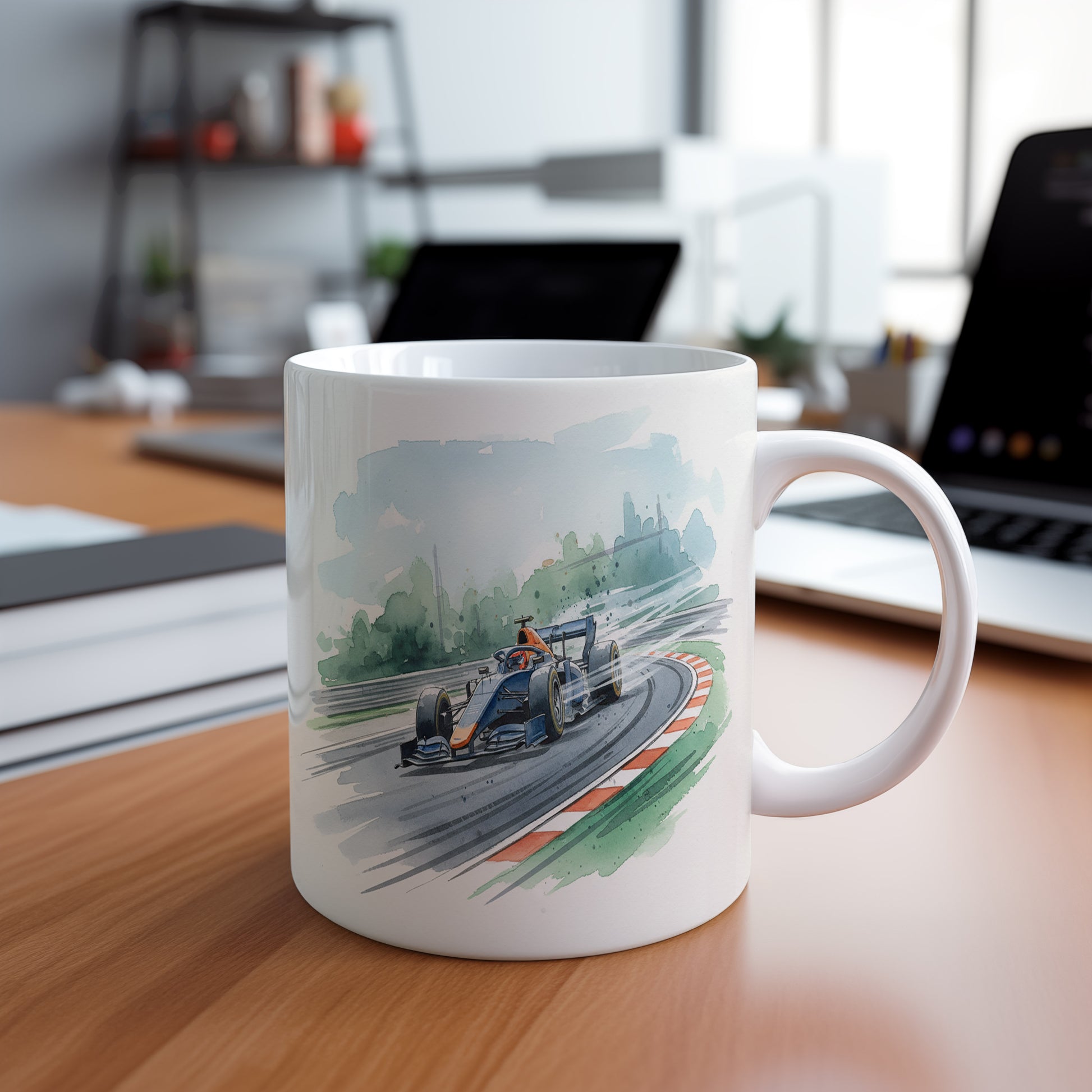 Uchvátí vás akvarelový motiv formule na závodní dráze, plný dynamiky a rychlosti. Hrnek 330 ml – vhodný do myčky i mikrovlnky.
