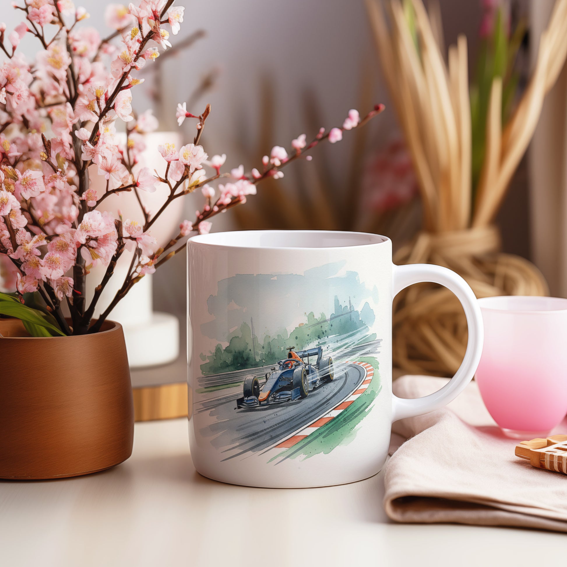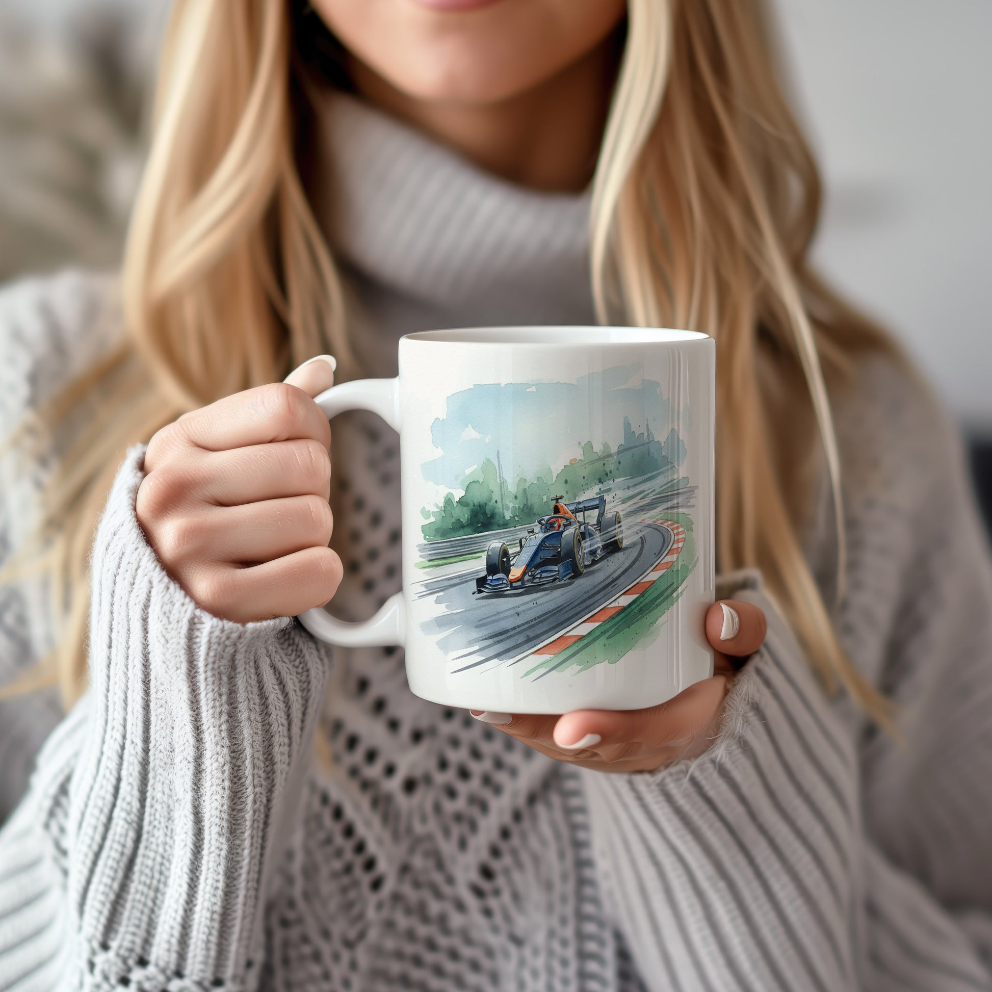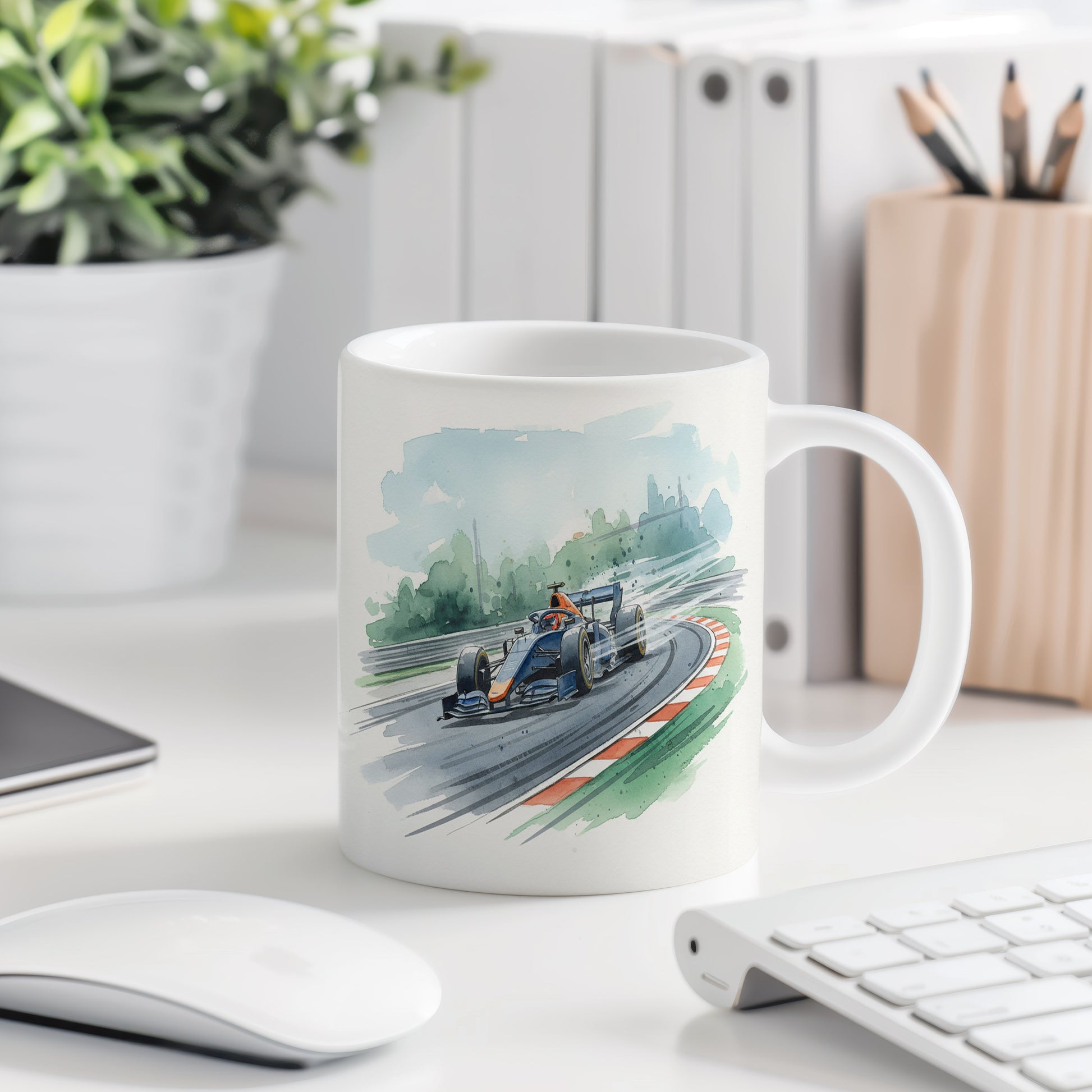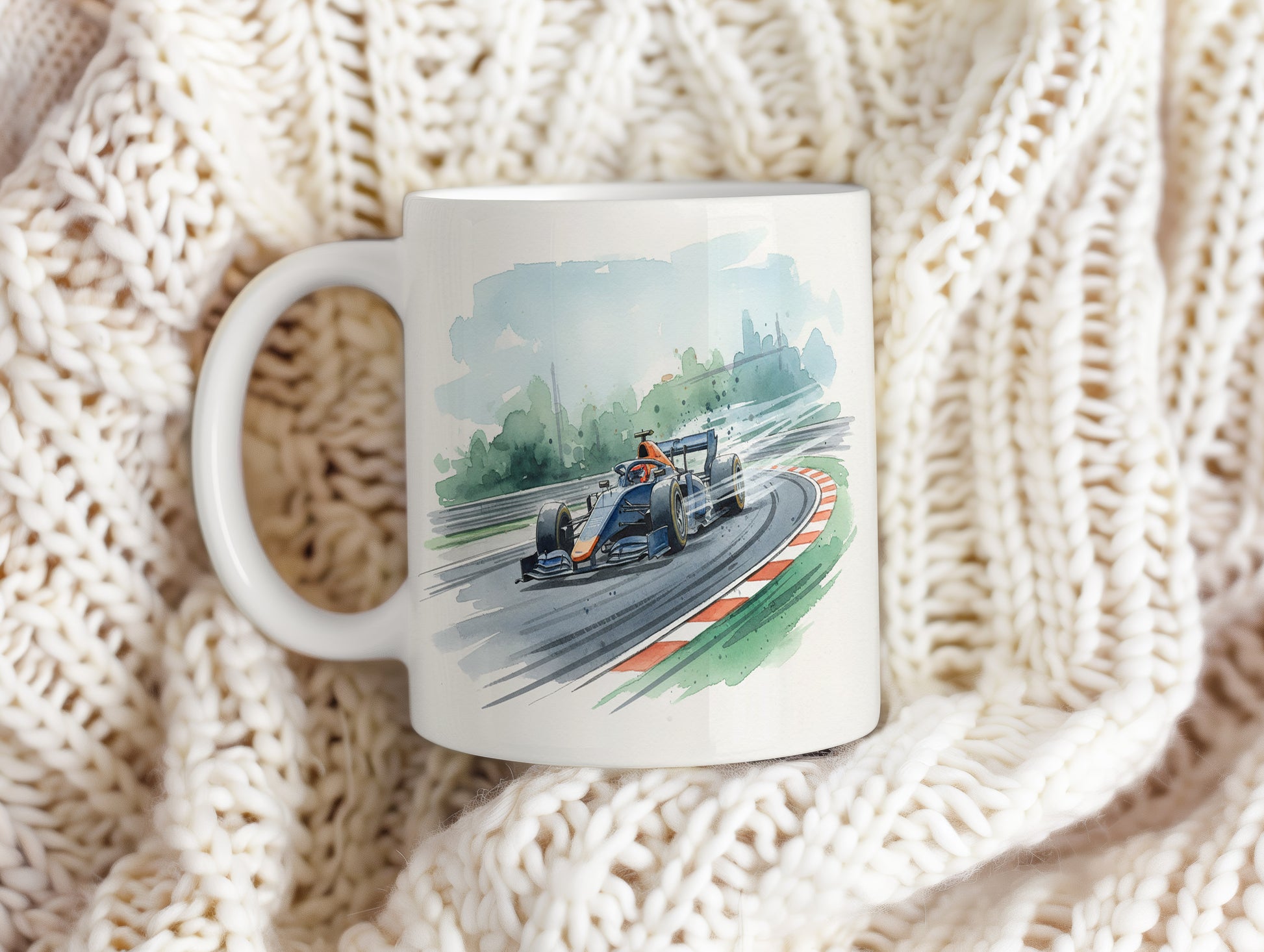 Uchvátí vás akvarelový motiv formule na závodní dráze, plný dynamiky a rychlosti. Hrnek 330 ml – vhodný do myčky i mikrovlnky.
