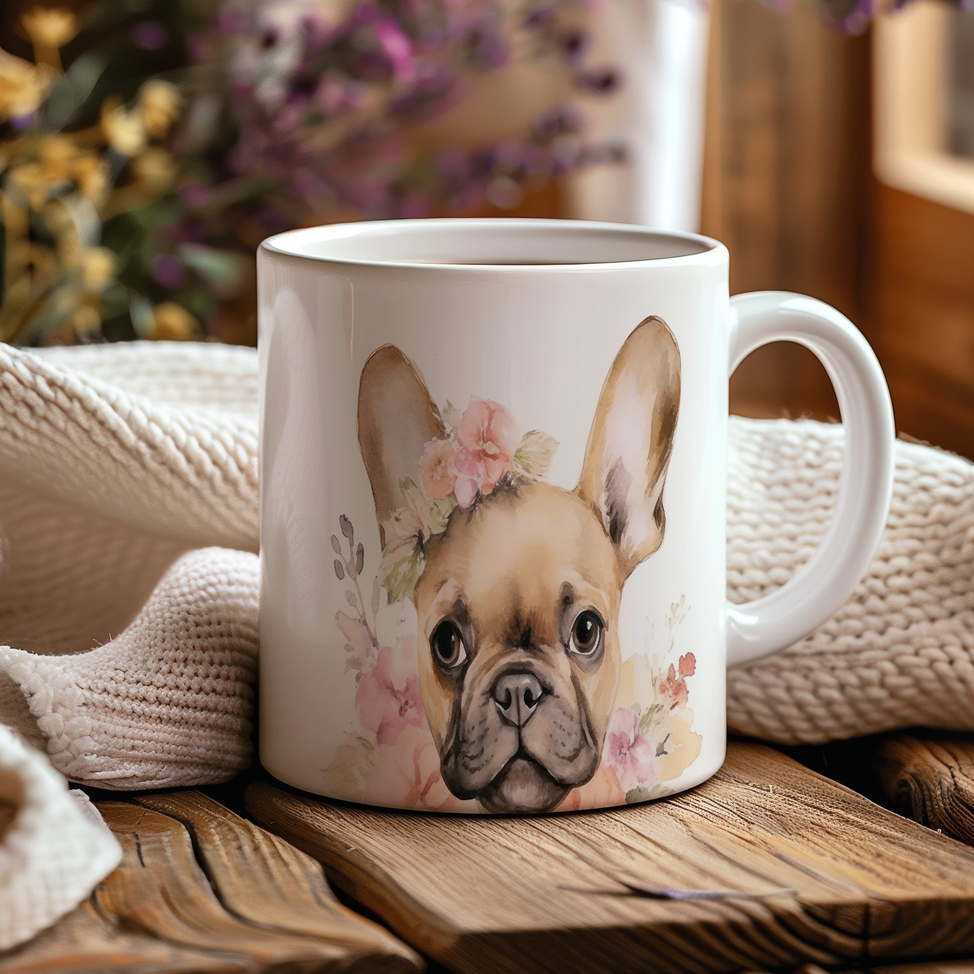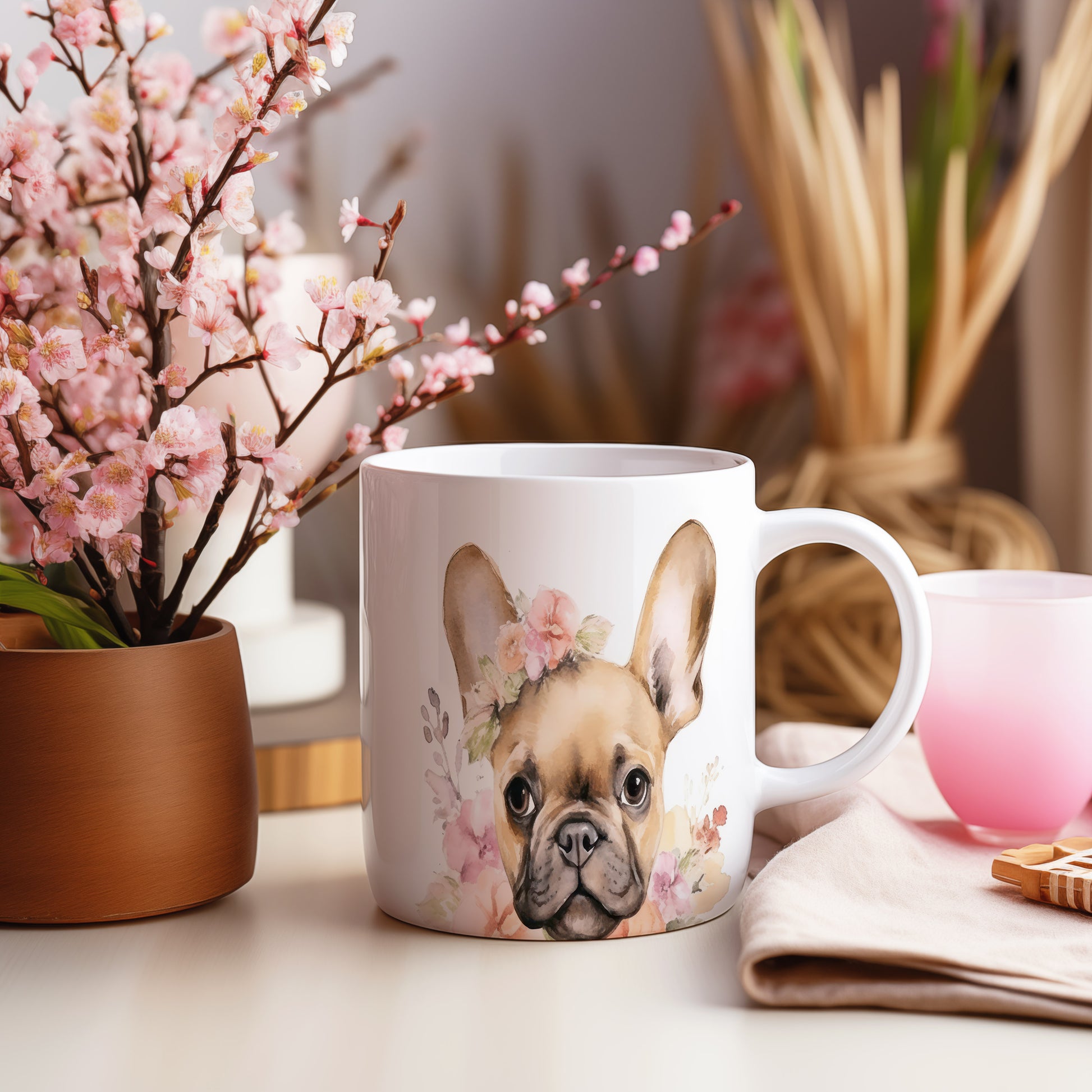 Hrnek s motivem francouzského buldočka a květin je skvělou volbou pro milovníky psů a přírody. Tento hrnek potěší každého, kdo ocení originální design a hledá ideální dárek pro své blízké. Materiál: keramika. Objem: 330 ml. Vhodné do myčky i mikrovlnky. Používáním tohoto hrnku si užijete nejen kávu nebo čaj, ale také radost z jeho jedinečného vzhledu.