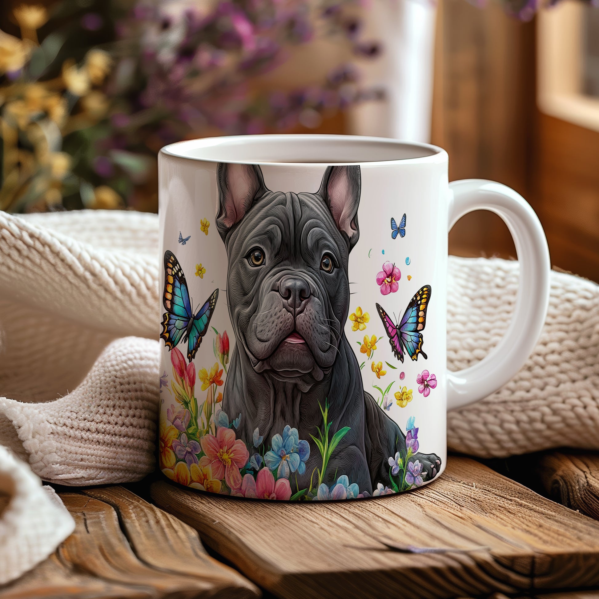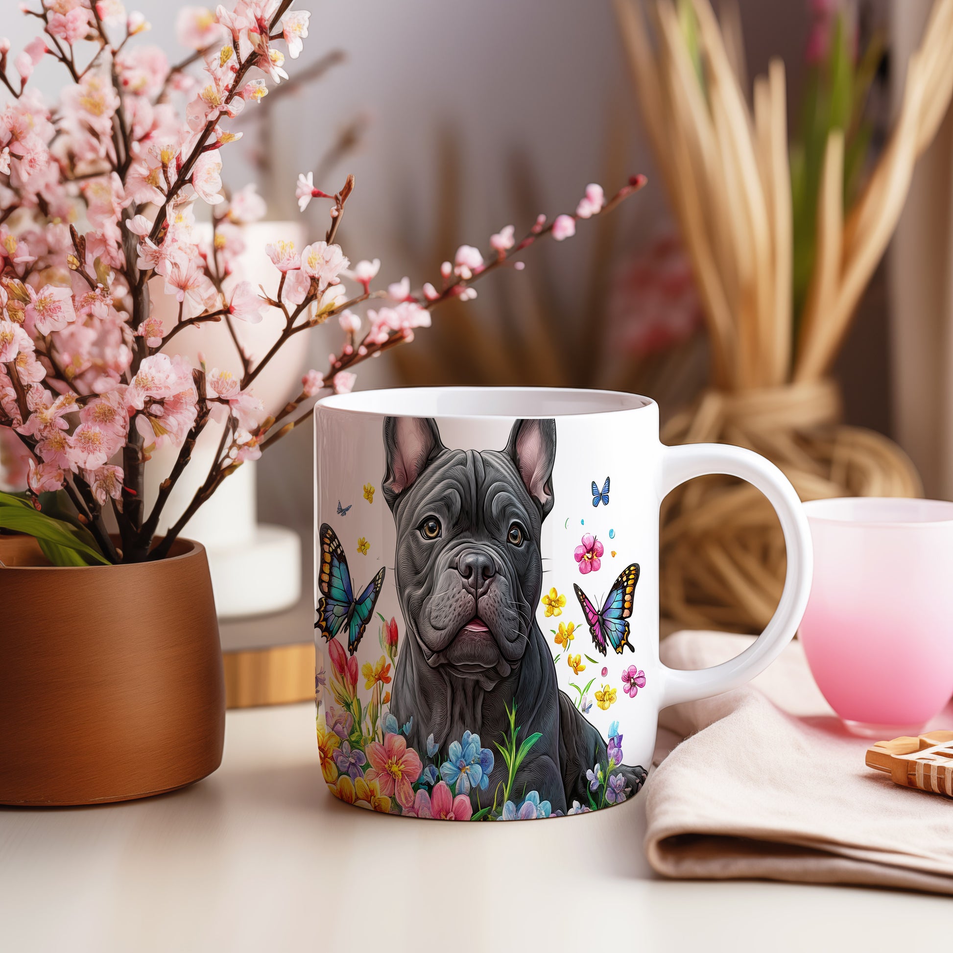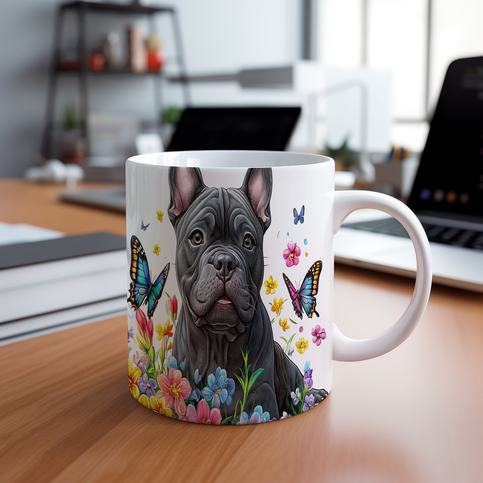 Hrnek s realistickým motivem černého psa obklopeného květinami a motýly. Tento stylový kousek potěší každého milovníka psů a skvěle se hodí jako dárek pro přátele či rodinu. Materiál: keramika. Objem: 330 ml. Vhodné do myčky i mikrovlnky. Používáním tohoto hrnku si užijete nejen krásný design, ale i praktické využití.