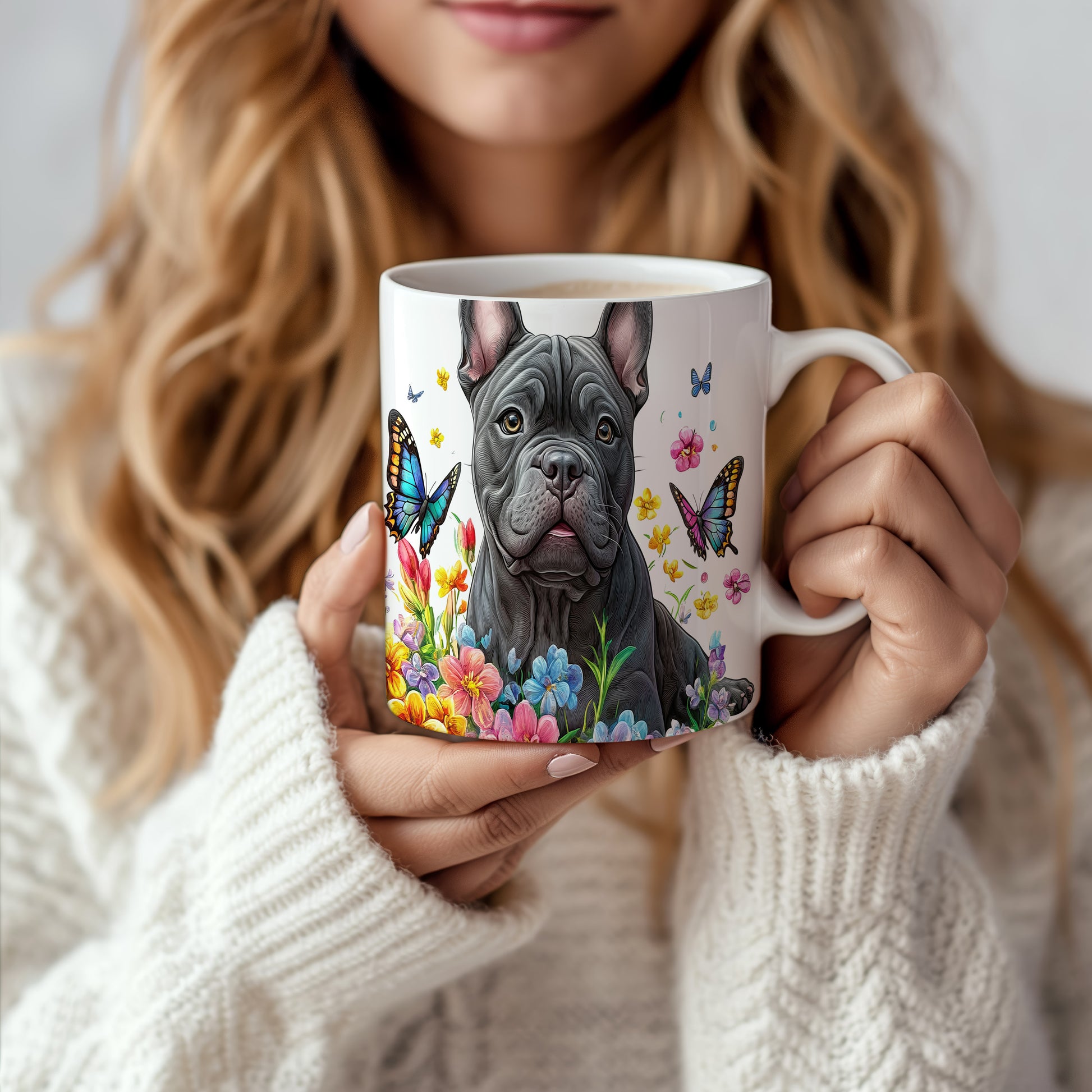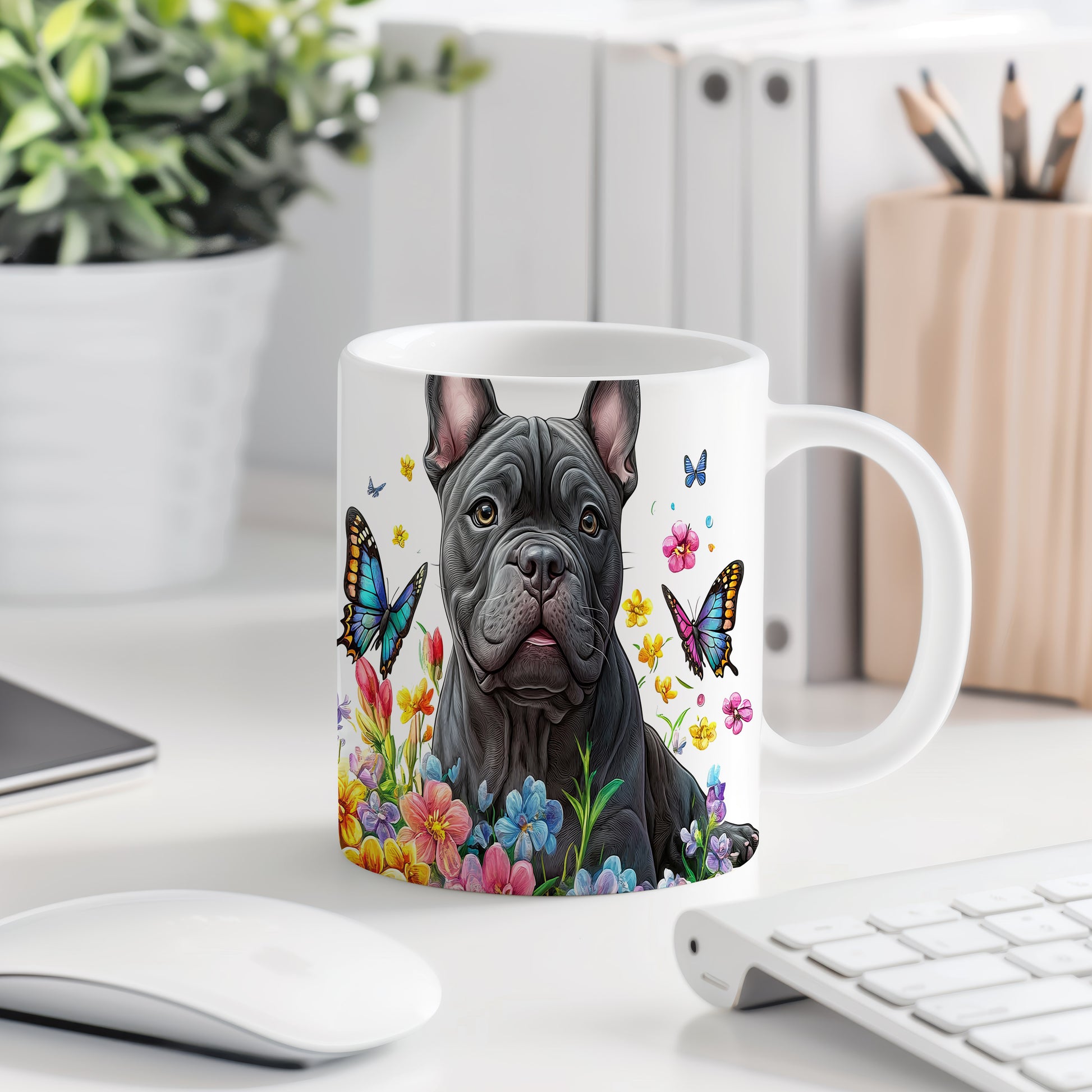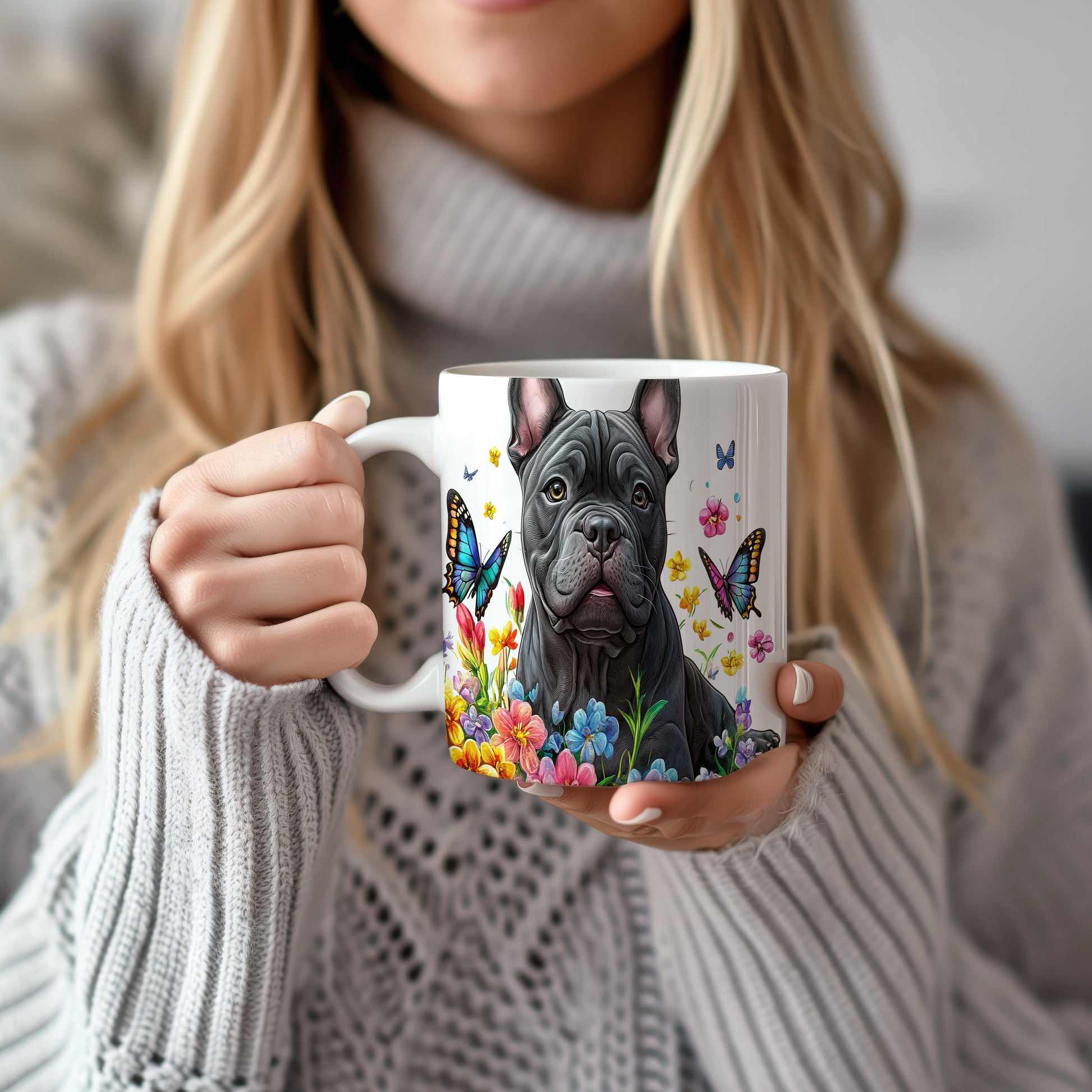 Hrnek s realistickým motivem černého psa obklopeného květinami a motýly. Tento stylový kousek potěší každého milovníka psů a skvěle se hodí jako dárek pro přátele či rodinu. Materiál: keramika. Objem: 330 ml. Vhodné do myčky i mikrovlnky. Používáním tohoto hrnku si užijete nejen krásný design, ale i praktické využití.